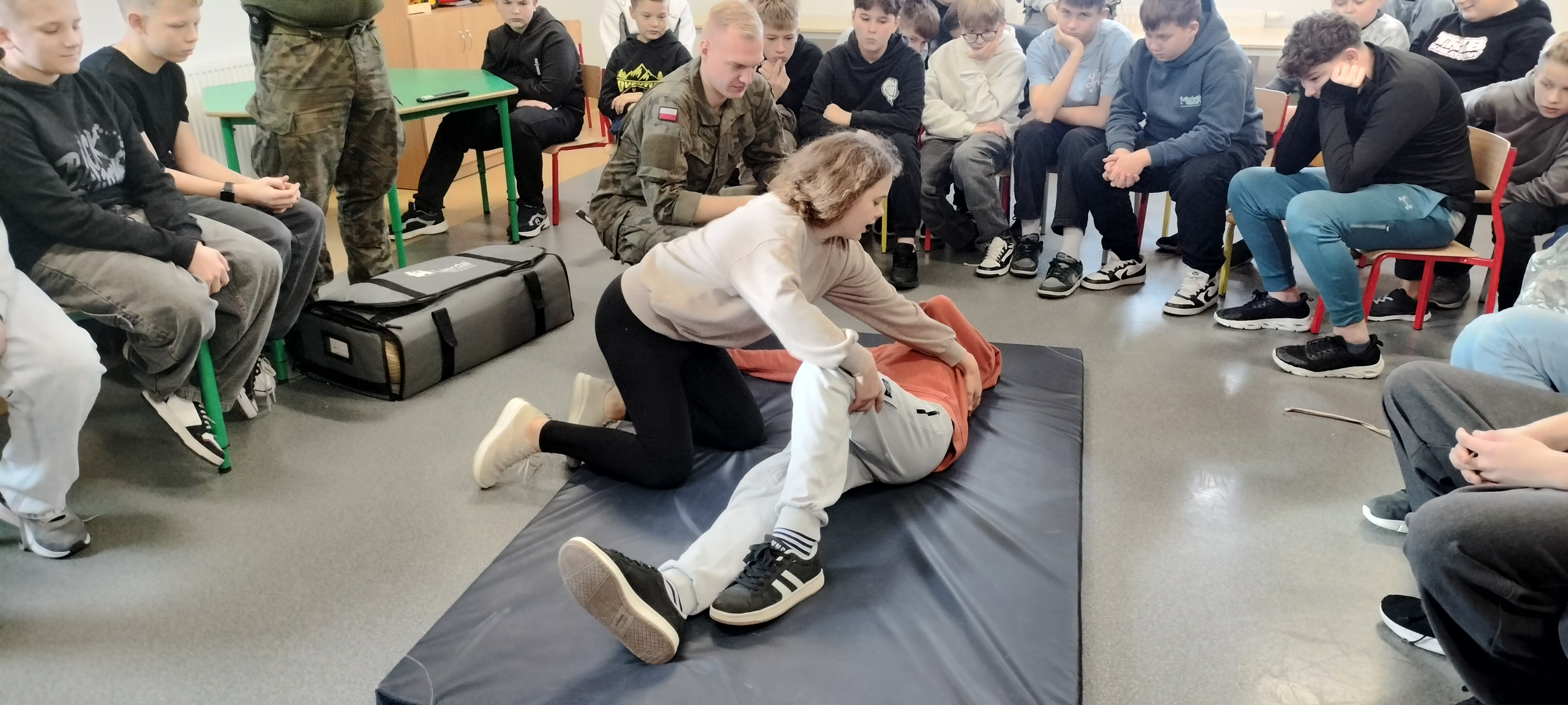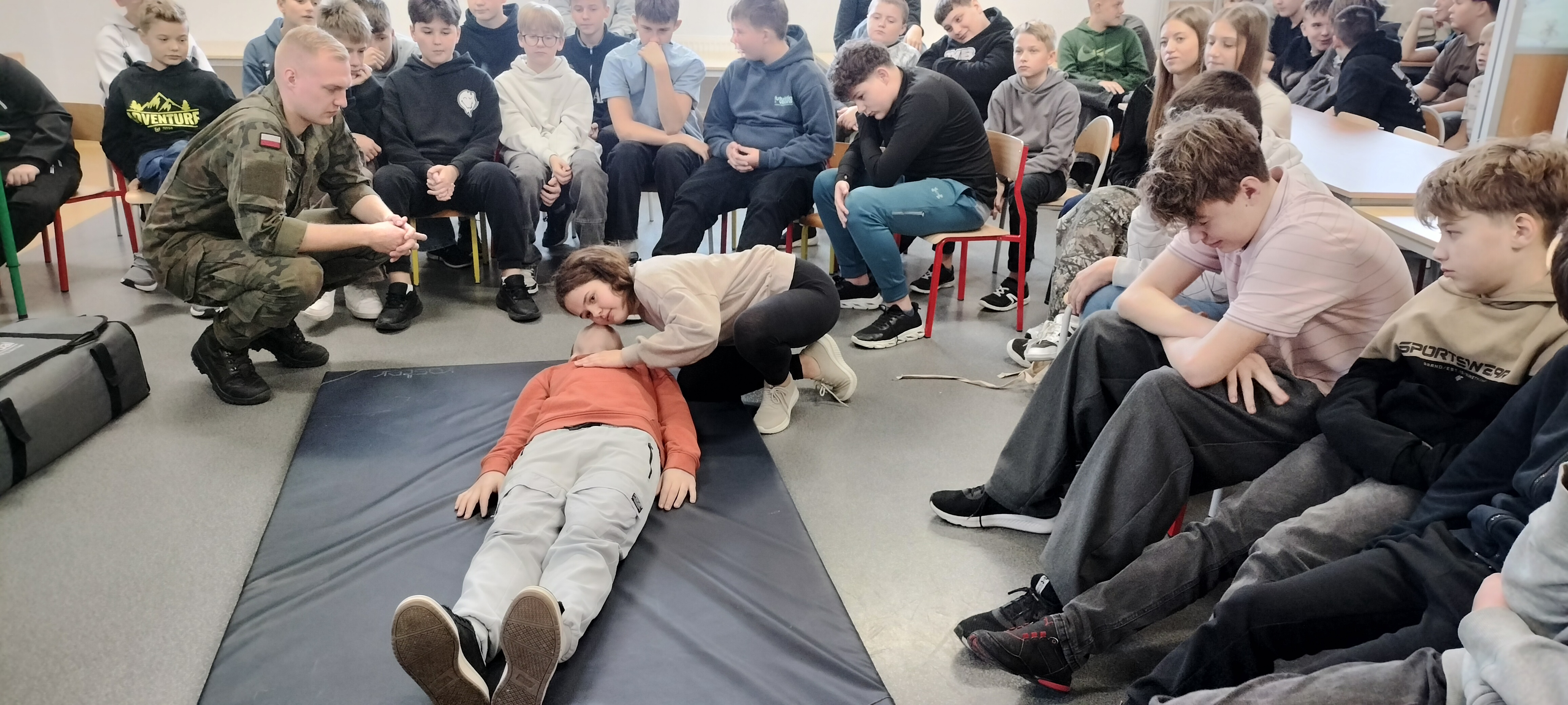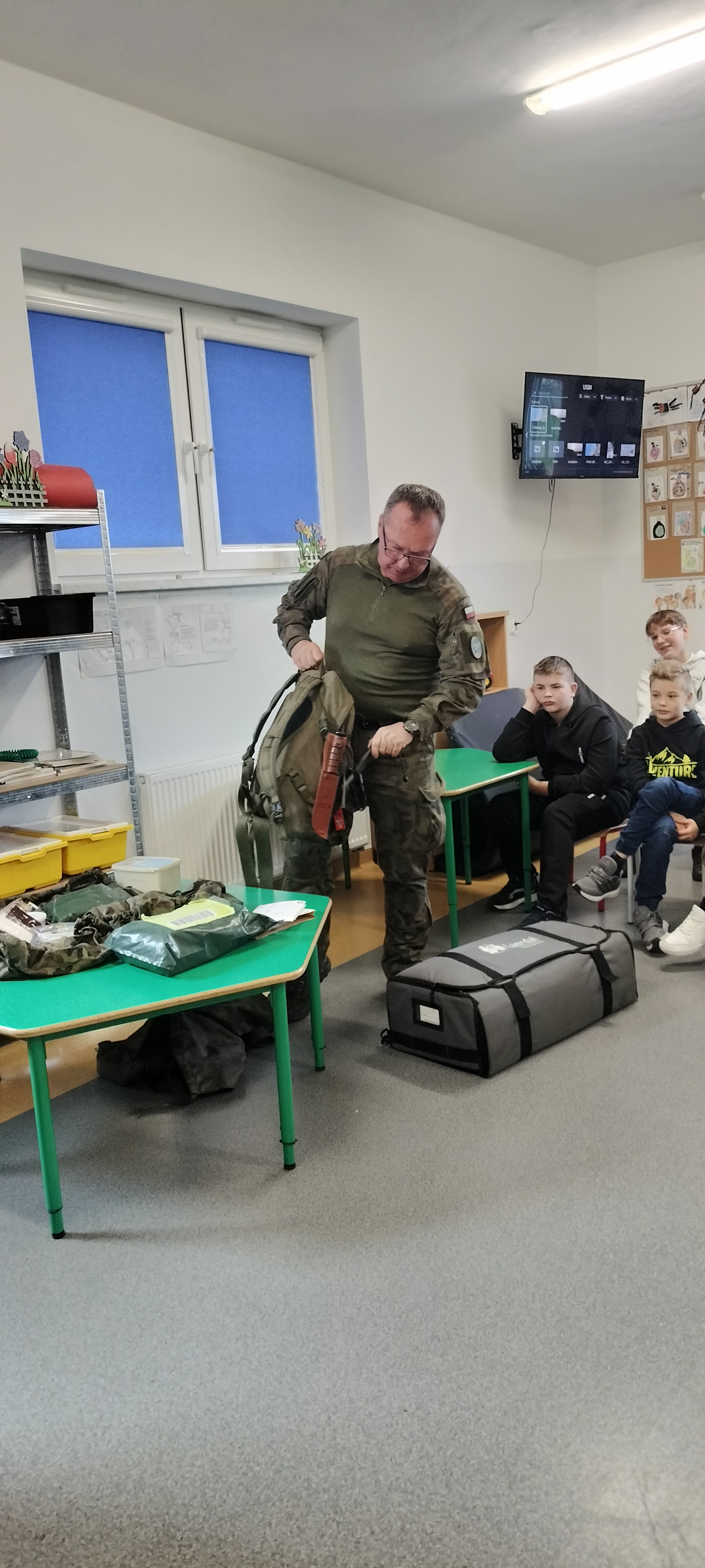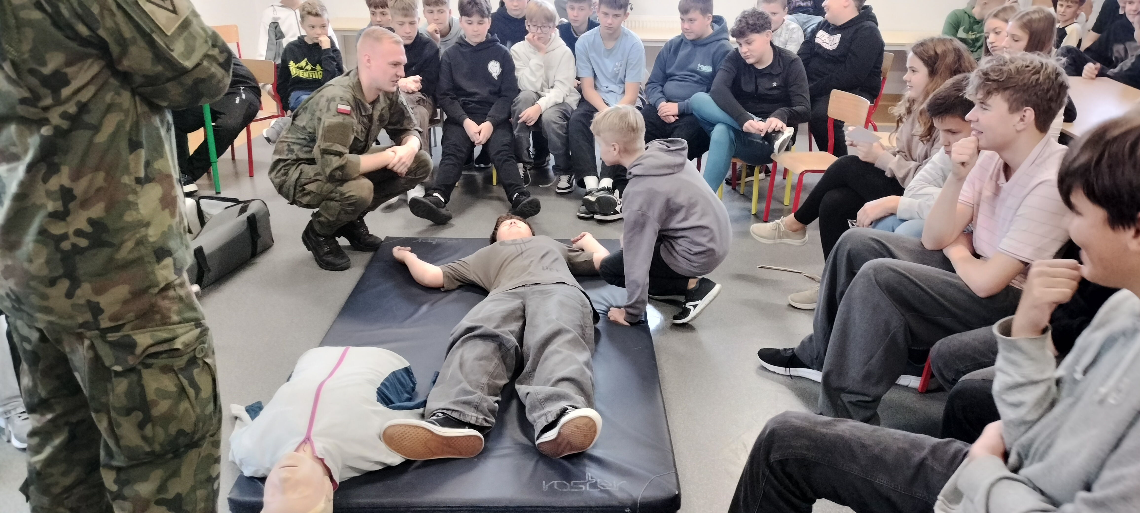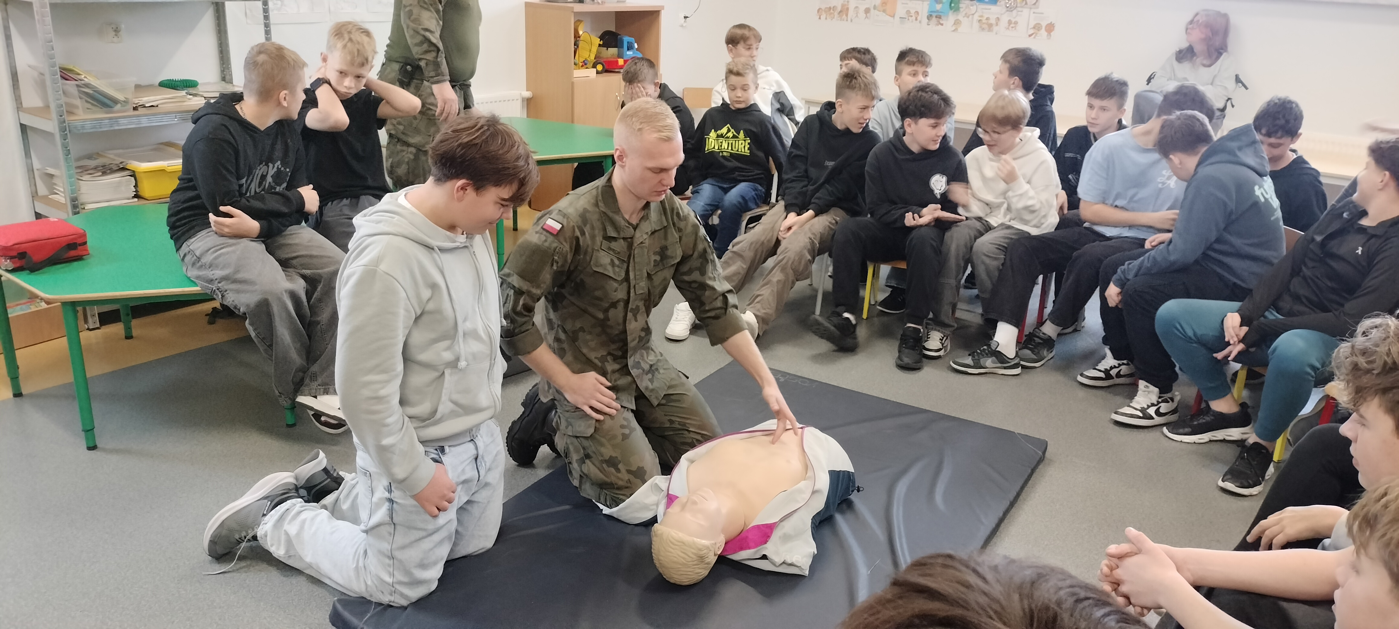 W dniu 17 listopada 2025 r. W ramach rządowej akcji "Edukacja z wojskiem" odbyło się spotkanie z klasami VI, VII i VIII. Warsztaty miały na celu podniesienie świadomości dzieci i młodzieży w obszarze bezpieczeństwa i obronności. Goście w ciekawy i przystępny sposób opowiedzieli o zasadach alarmowania, udzielania pierwszej pomocy, ewakuacji, schronieniu, zagrożeniu informacyjnym i cyberzagrożeniach.