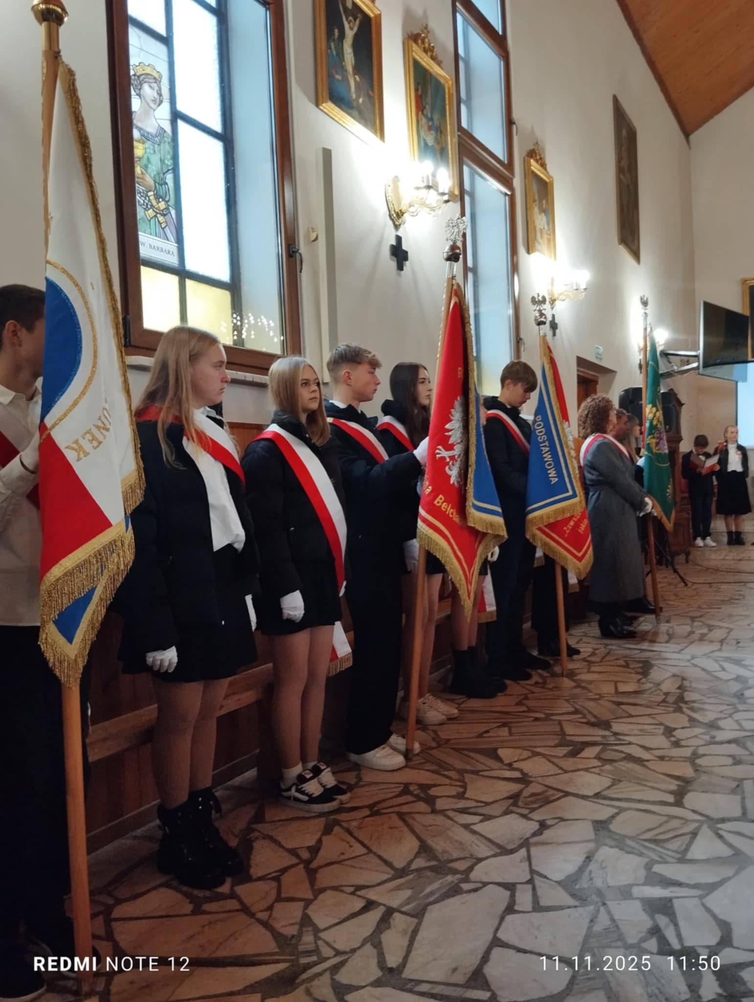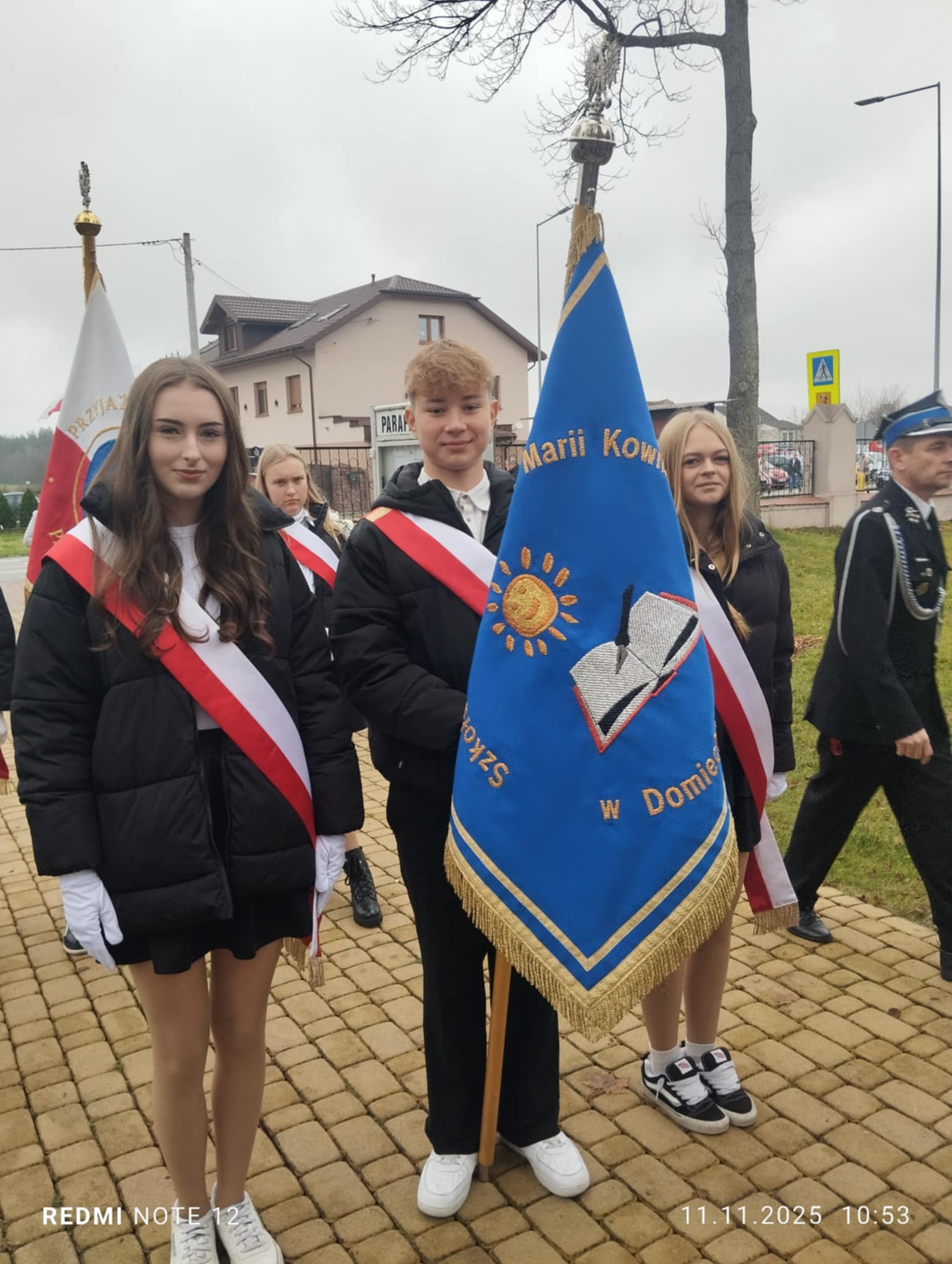 11 listopada obchodzimy Narodowe Święto Niepodległości - jedno z najważniejszych świąt w historii naszego kraju. Z tej okazji uczniowie z klasy 8a i 8b naszej szkoły : Lena Szewczyk, Julia Maksalon i Wiktor Lipiński reprezentujący poczet sztandarowy, wzięli udział w uroczystych gminnych obchodach Święta Niepodległości w Łękawie. Uczestniczyli we Mszy Świętej w intencji Ojczyzny oraz przedstawieniu patriotycznym upamiętniającym wydarzenia z 1918 roku, kiedy Polska po 123 latach niewoli odzyskała wolność i powróciła na mapę Europy. Swoją postawą, zaangażowaniem i godnym zachowaniem uczcili pamięć tych , którzy walczyli o niepodległość Polski, reprezentując całą naszą społeczność szkolną.
