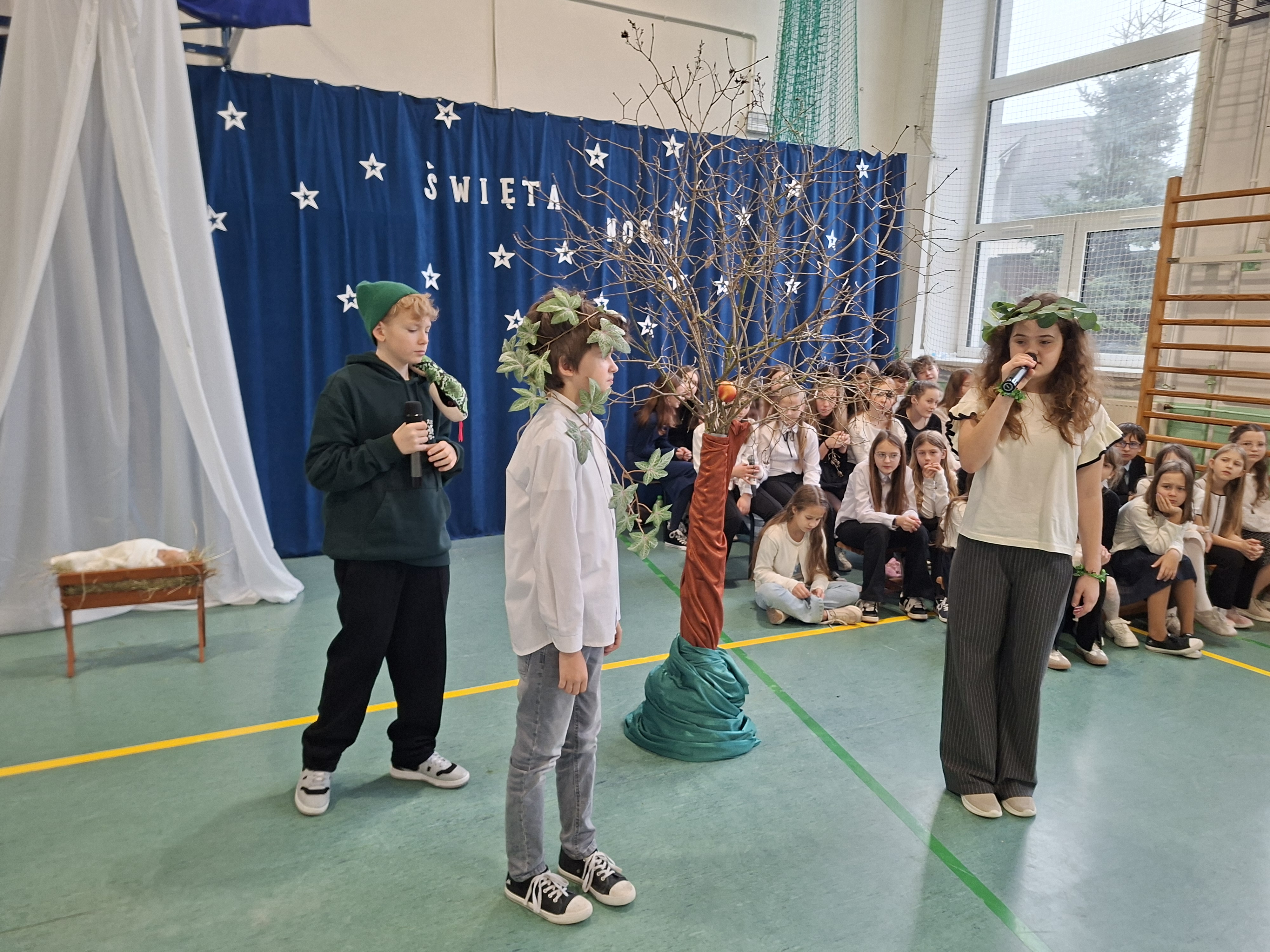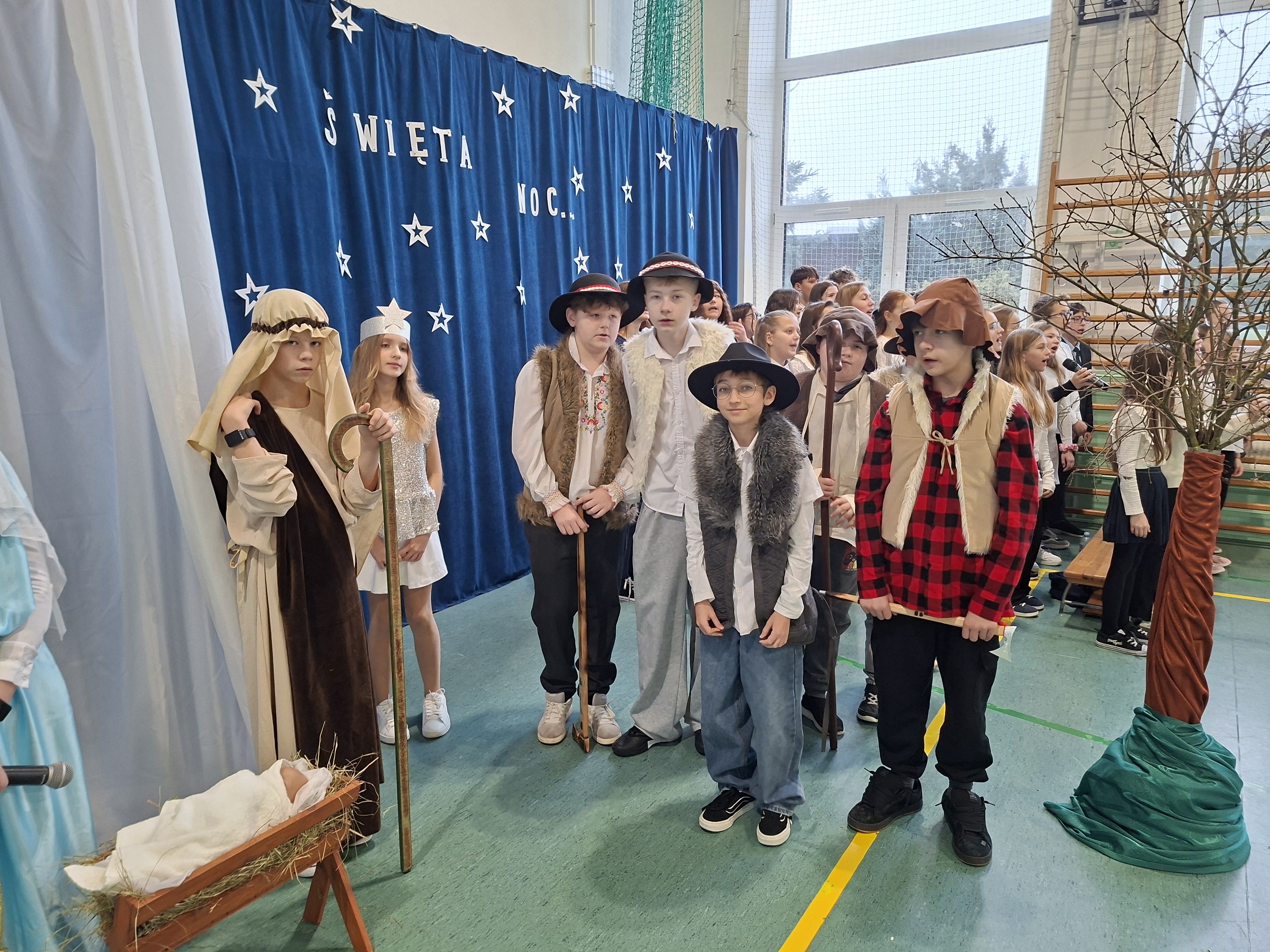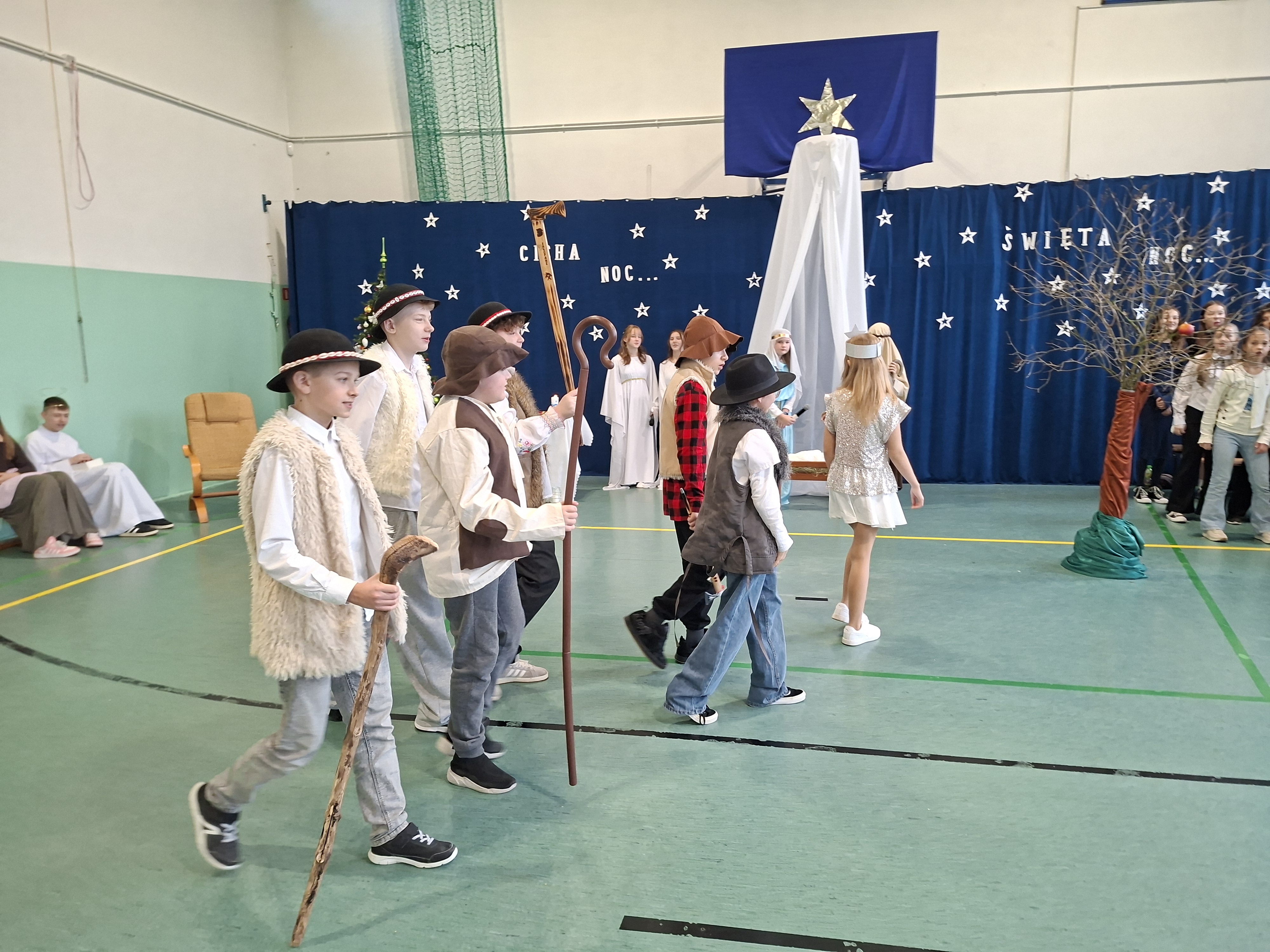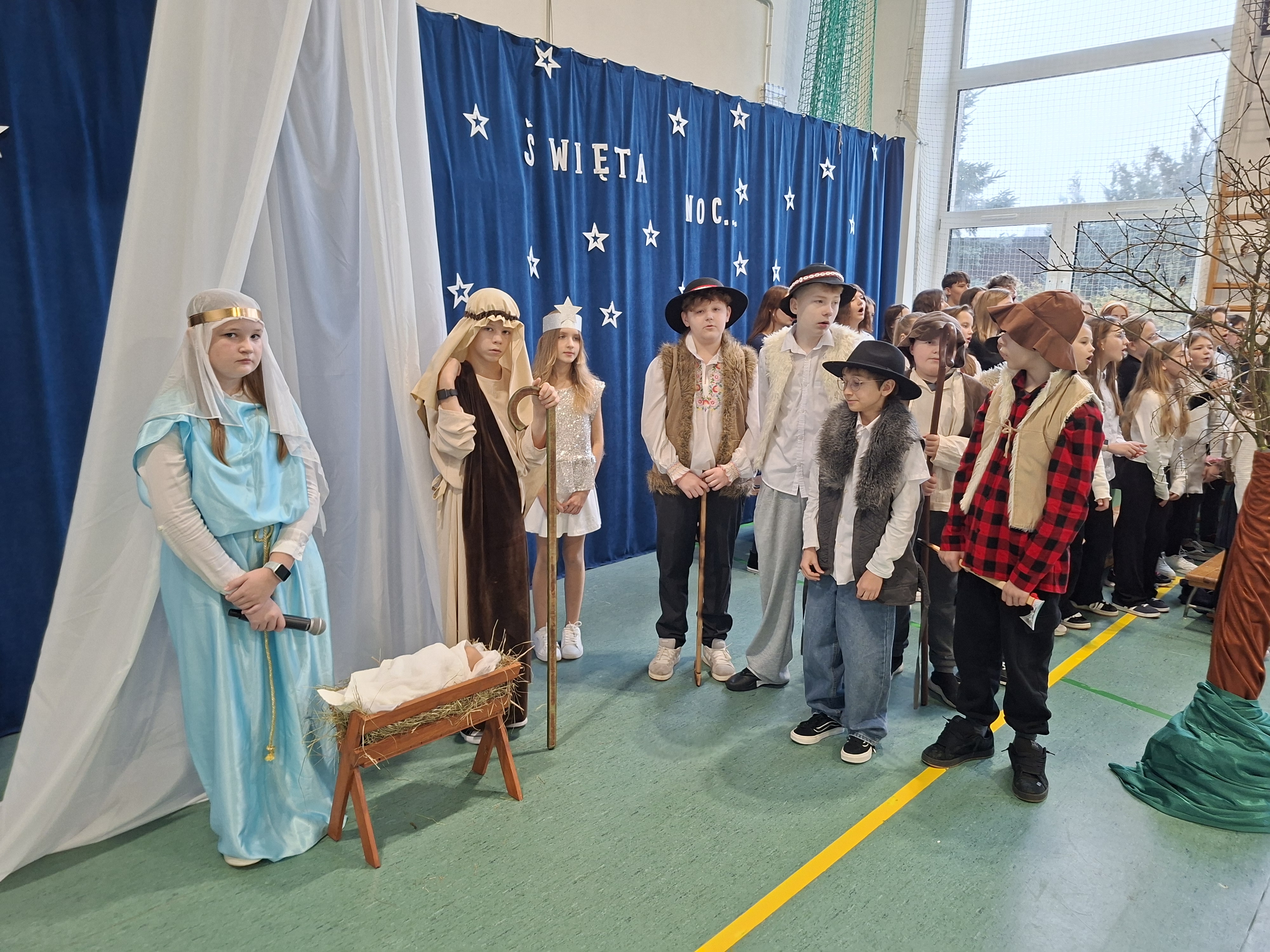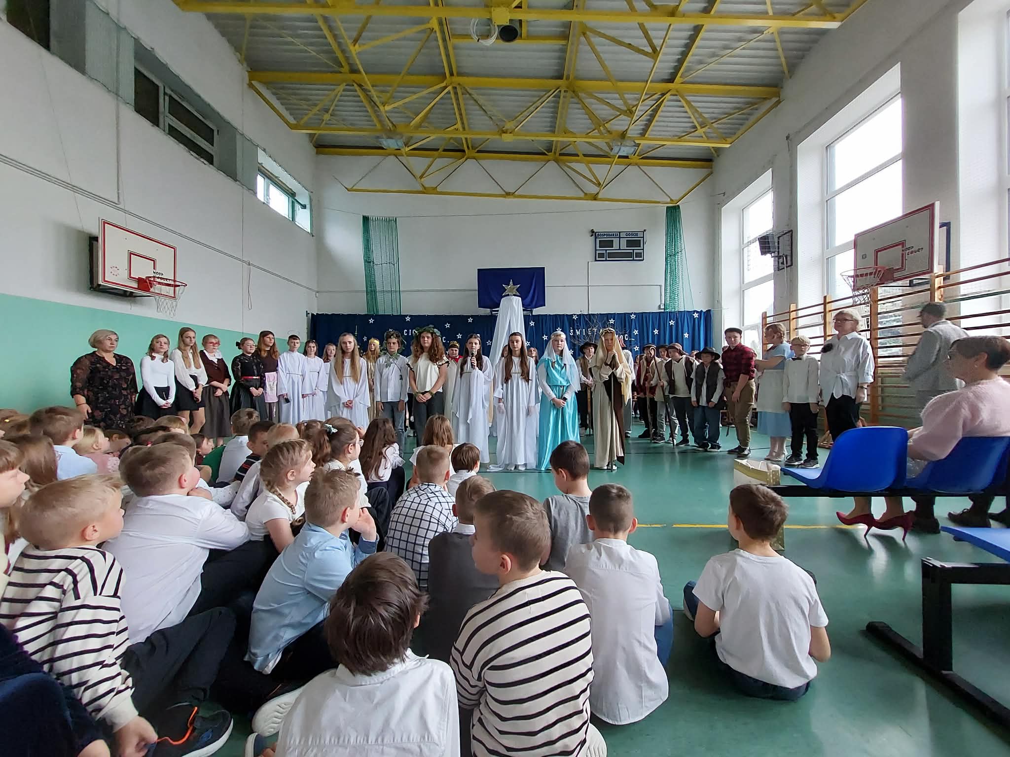18 grudnia 2025 r. cała społeczność szkolna zebrała się na sali gimnastycznej, by uczestniczyć w szkolnych jasełkach. Czas Bożego Narodzenia to chwila, kiedy wszyscy stają się dla siebie bardziej życzliwi, milsi i odkładają na bok wszelkie spory i waśnie. Uczniowie klas szóstych w specjalnie przygotowanych strojach oraz pięknej scenografii, przedstawili sceny narodzin Chrystusa oraz towarzyszące temu wydarzenia. Jasełka wprowadziły wszystkich w świąteczny nastrój, a młodzi aktorzy swym pięknym występem podbili serca publiczności. Śpiew kolęd w wykonaniu szkolnego chóru pod kierunkiem pana Kamila Kołatka przypomniał o tym, że Święta Bożego Narodzenia są już bardzo blisko. Na koniec świąteczne życzenia złożyła Pani Dyrektor Aleksandra Fornalik oraz zaproszeni goście: Pan Konrad Koc-Wójt Gminy Bełchatów, ks. Krzysztof Petruk i Pani Małgorzata Dobrowolska-Urbaniak, Przewodnicząca Rady Rodziców.
