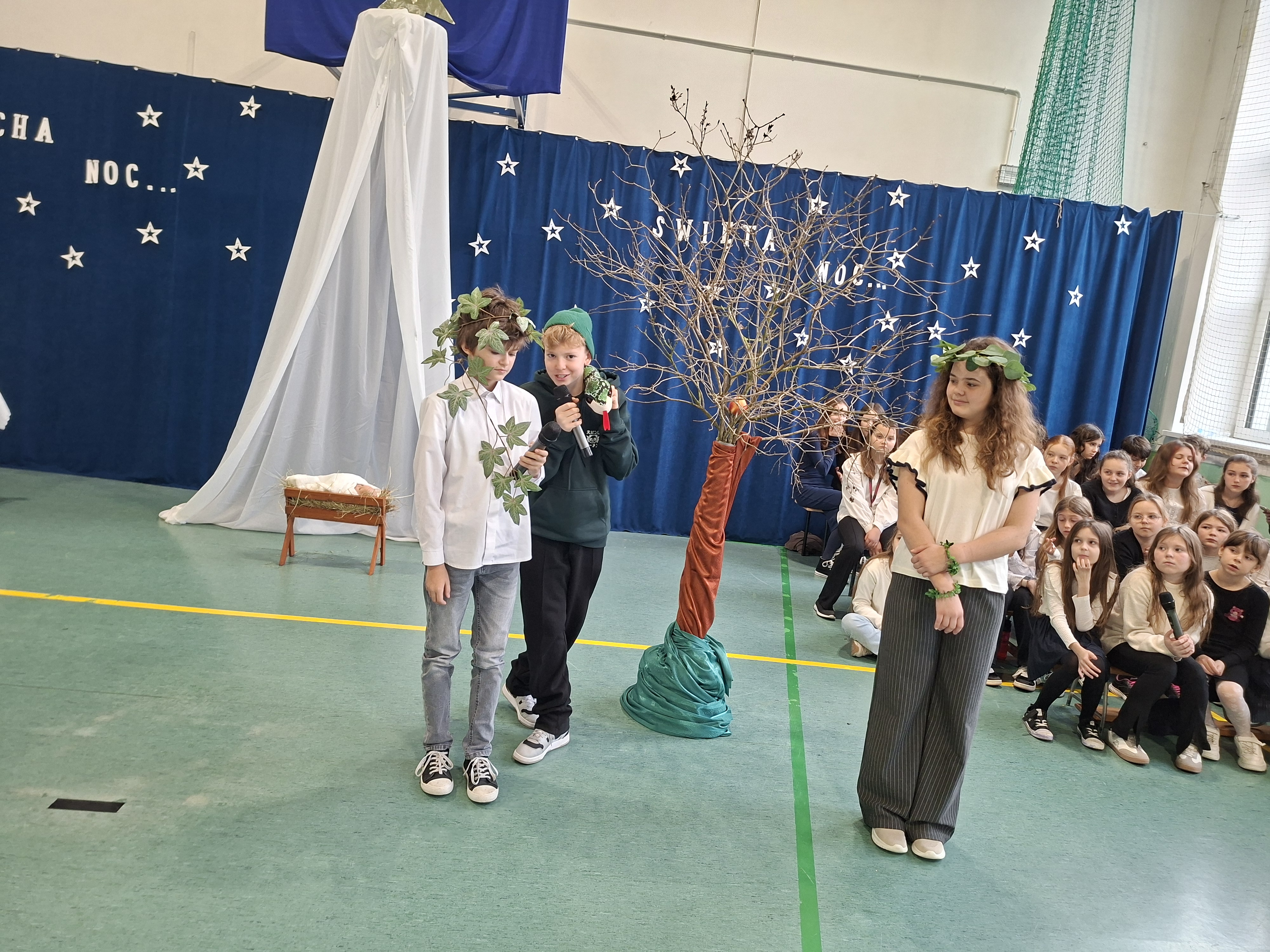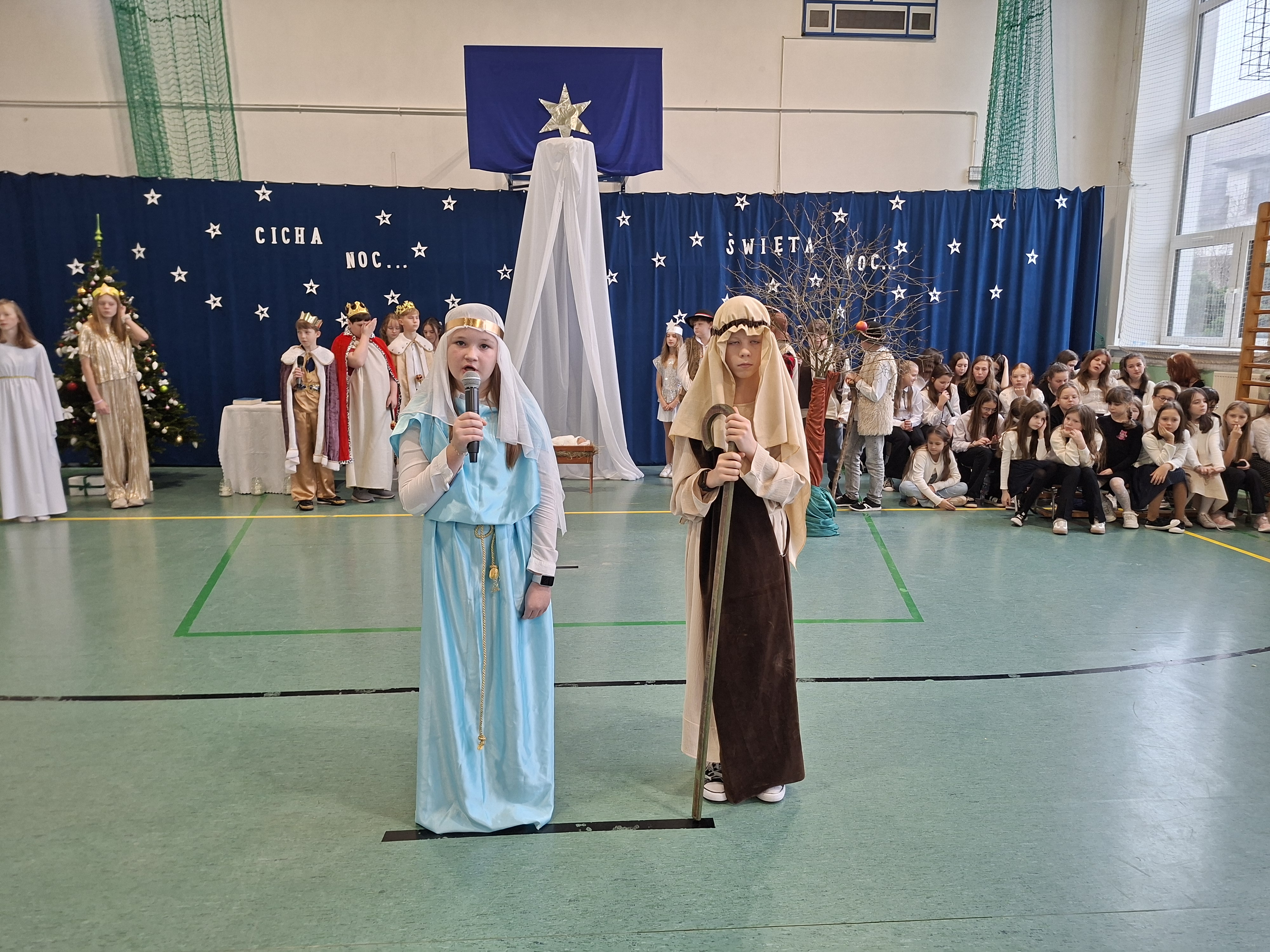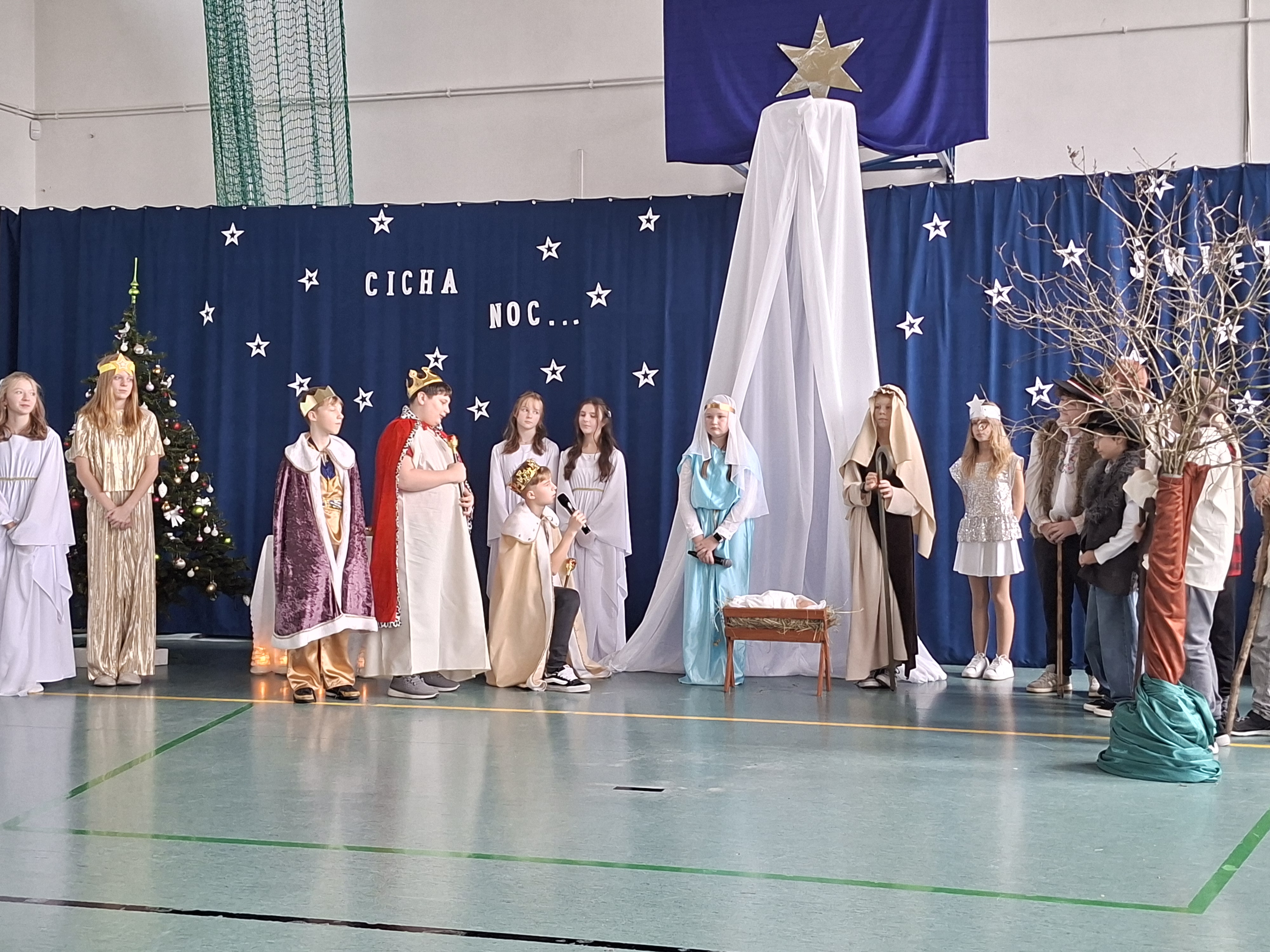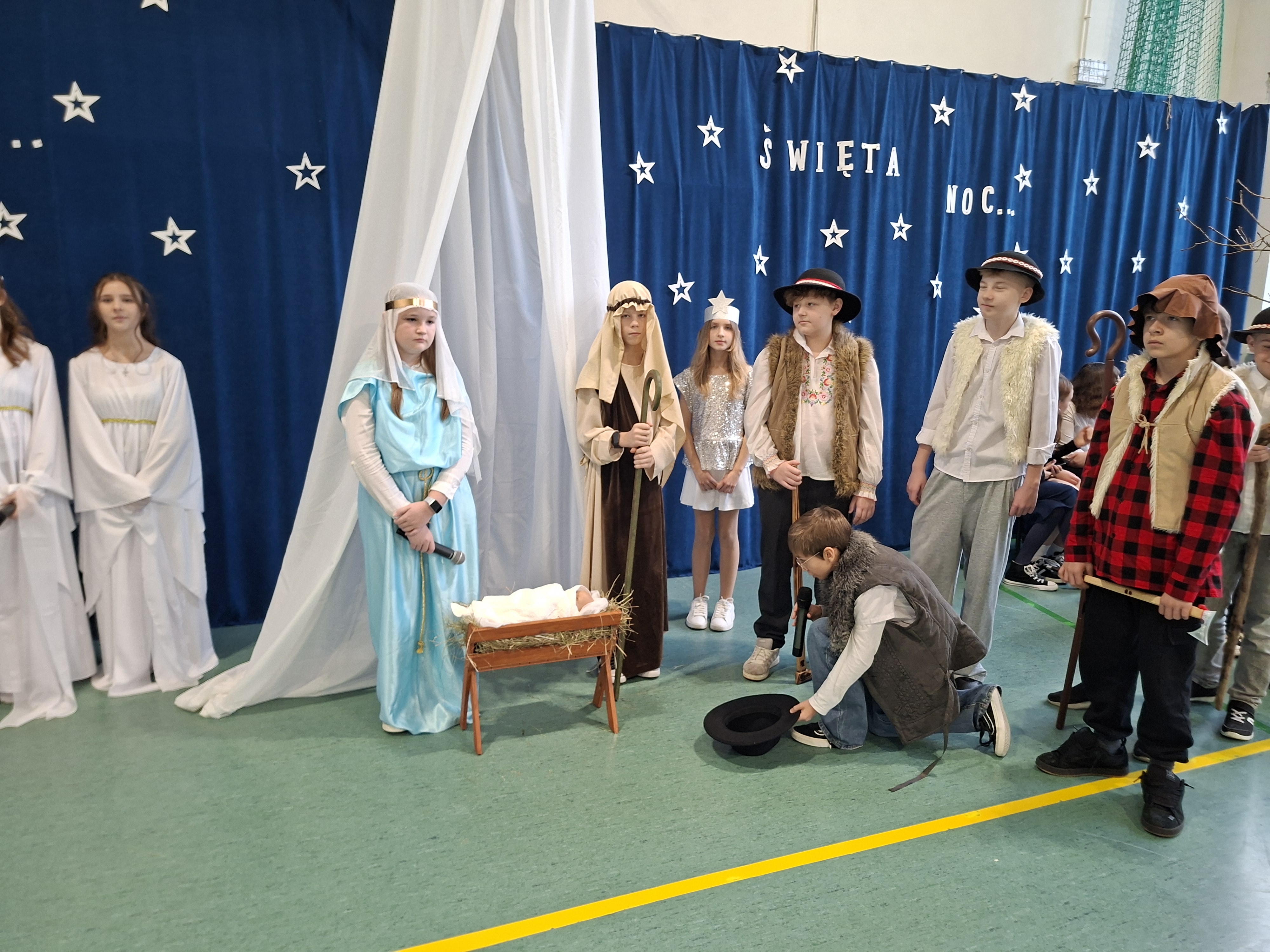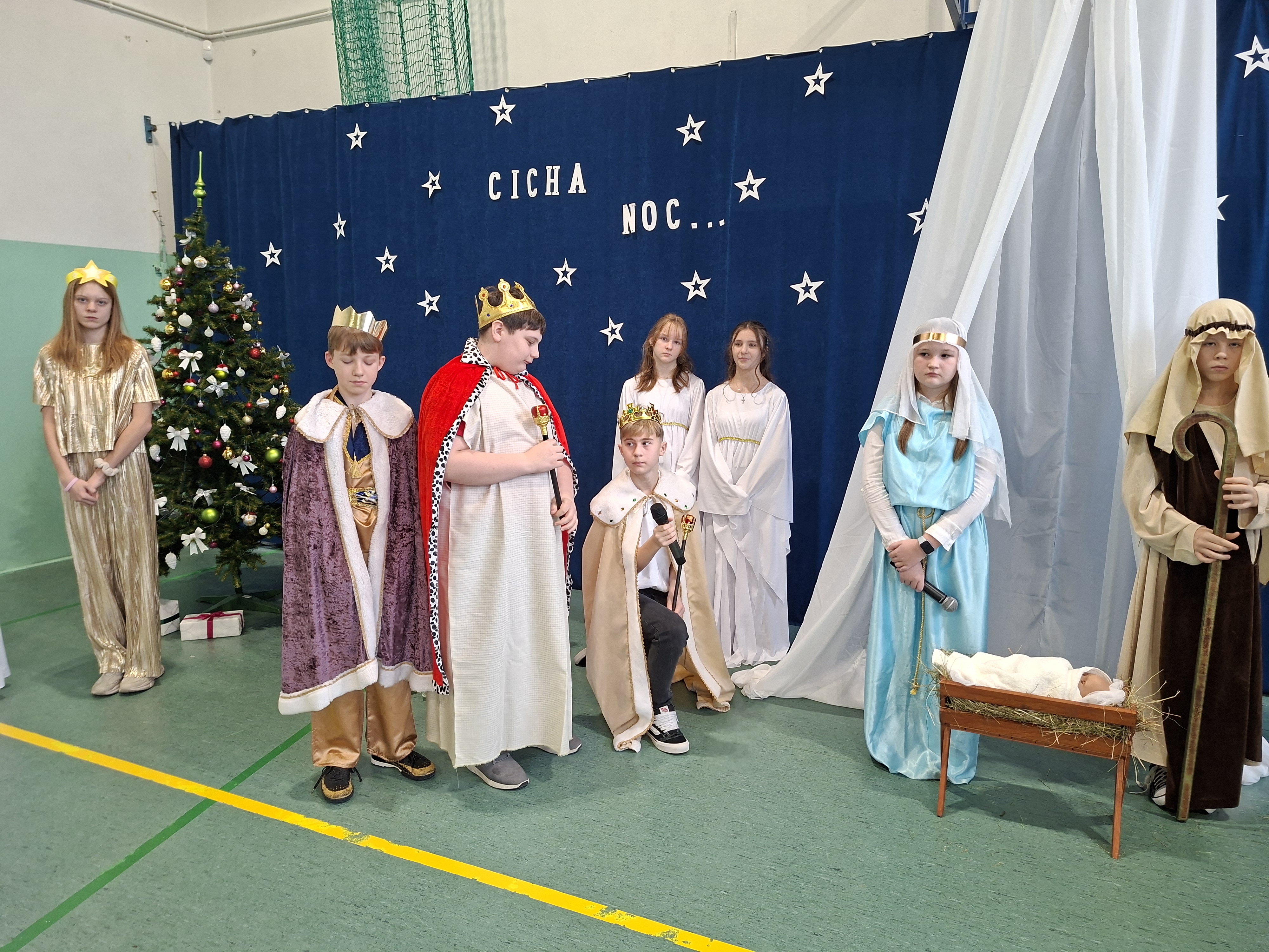 18 grudnia 2025 r. cała społeczność szkolna zebrała się na sali gimnastycznej, by uczestniczyć w szkolnych jasełkach. Czas Bożego Narodzenia to chwila, kiedy wszyscy stają się dla siebie bardziej życzliwi, milsi i odkładają na bok wszelkie spory i waśnie. Uczniowie klas szóstych w specjalnie przygotowanych strojach oraz pięknej scenografii, przedstawili sceny narodzin Chrystusa oraz towarzyszące temu wydarzenia. Jasełka wprowadziły wszystkich w świąteczny nastrój, a młodzi aktorzy swym pięknym występem podbili serca publiczności. Śpiew kolęd w wykonaniu szkolnego chóru pod kierunkiem pana Kamila Kołatka przypomniał o tym, że Święta Bożego Narodzenia są już bardzo blisko. Na koniec świąteczne życzenia złożyła Pani Dyrektor Aleksandra Fornalik oraz zaproszeni goście: Pan Konrad Koc-Wójt Gminy Bełchatów, ks. Krzysztof Petruk i Pani Małgorzata Dobrowolska-Urbaniak, Przewodnicząca Rady Rodziców.