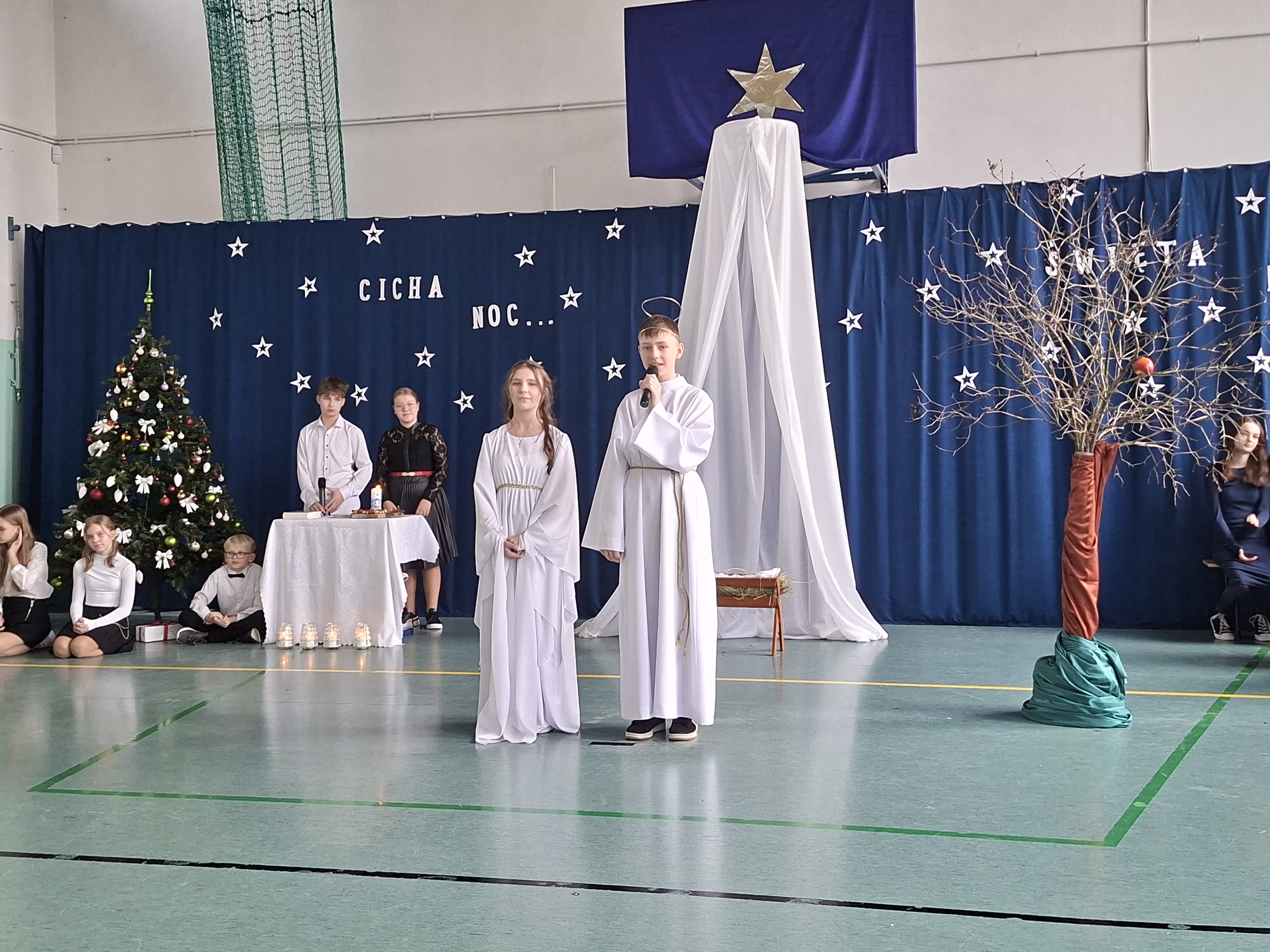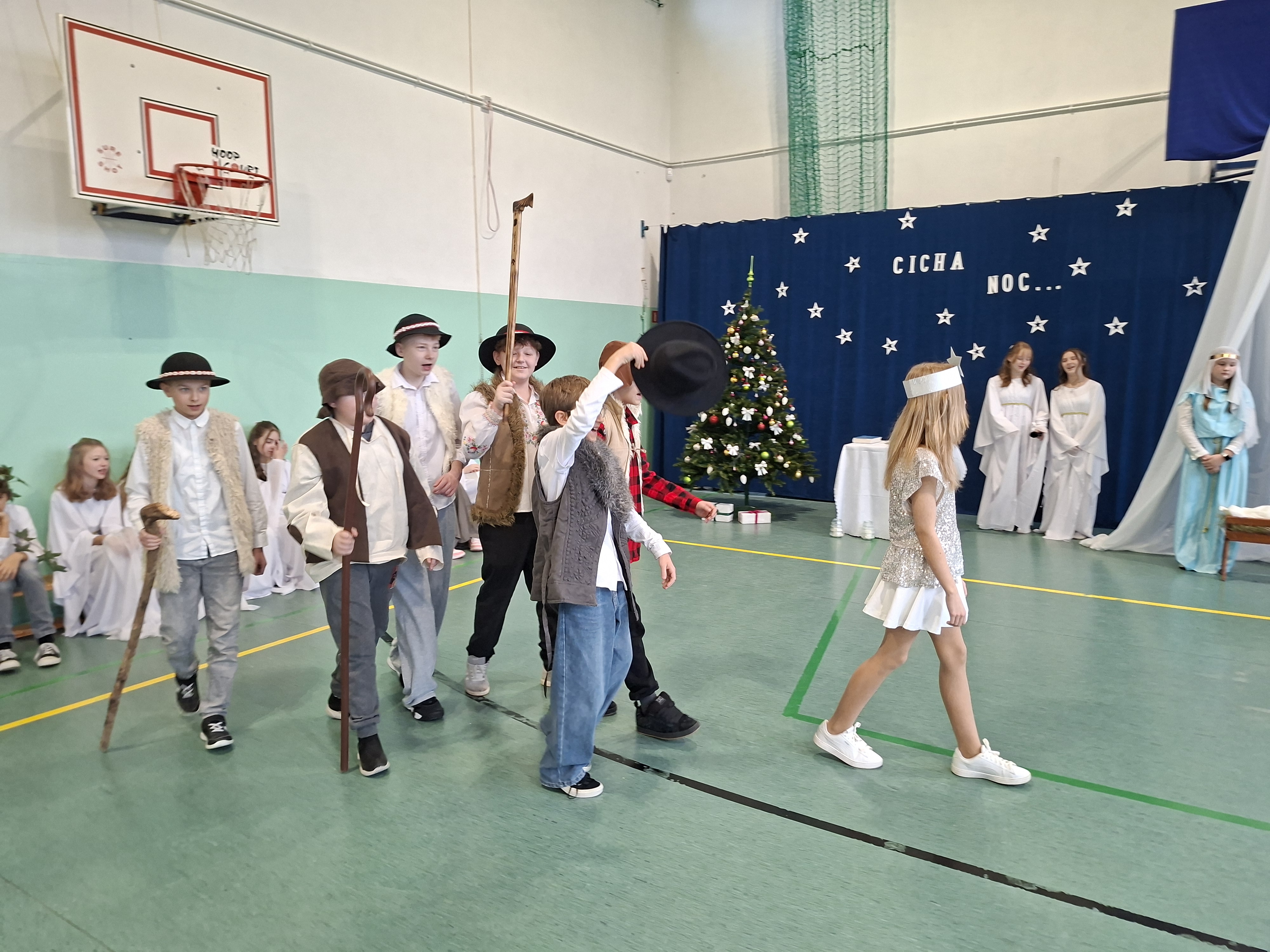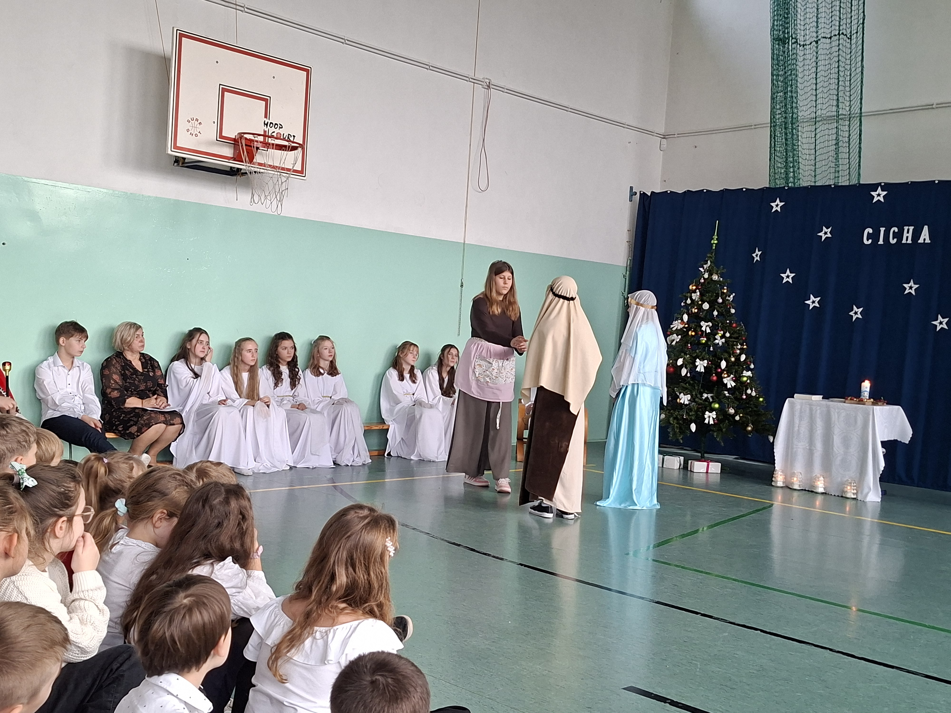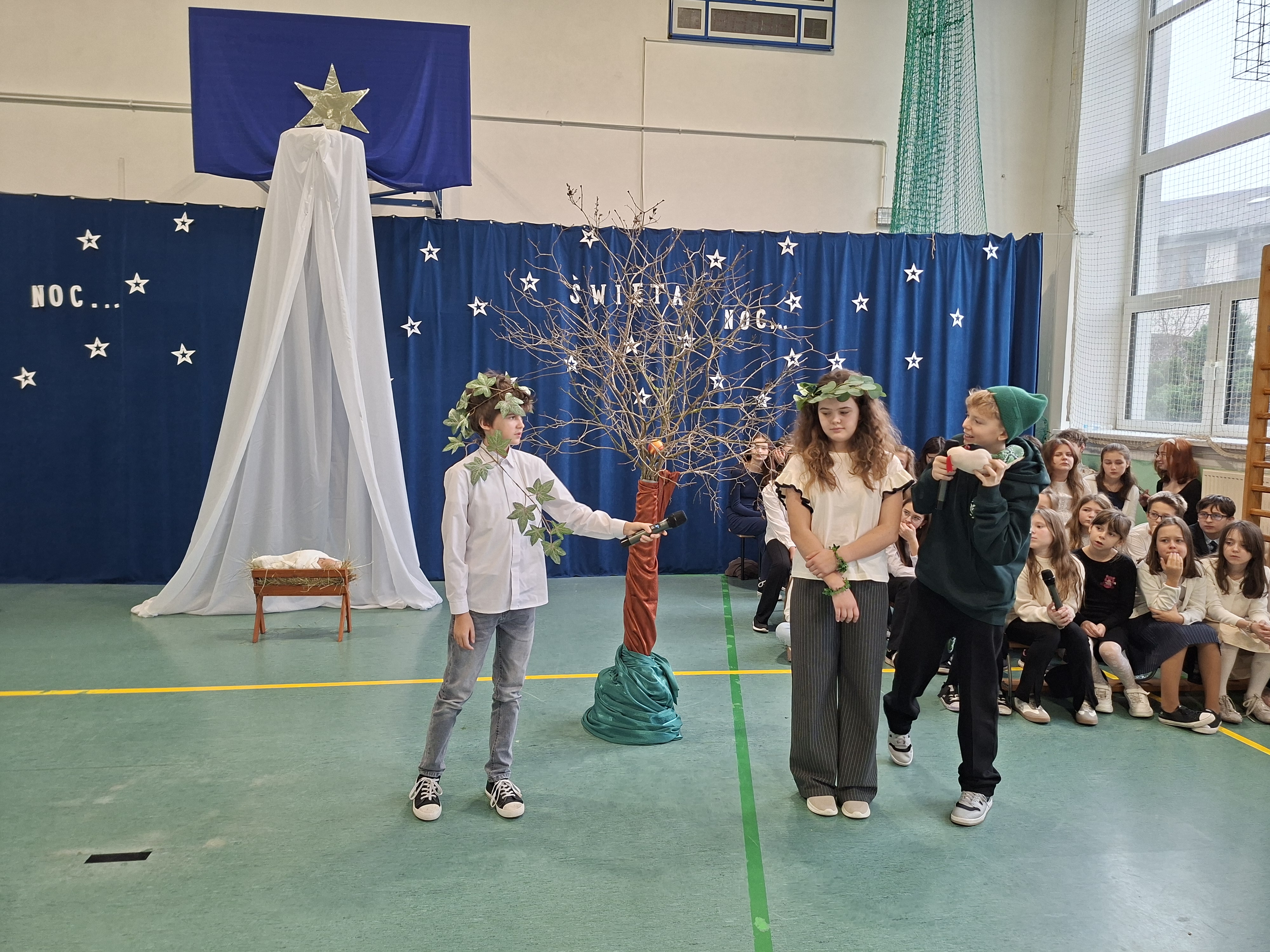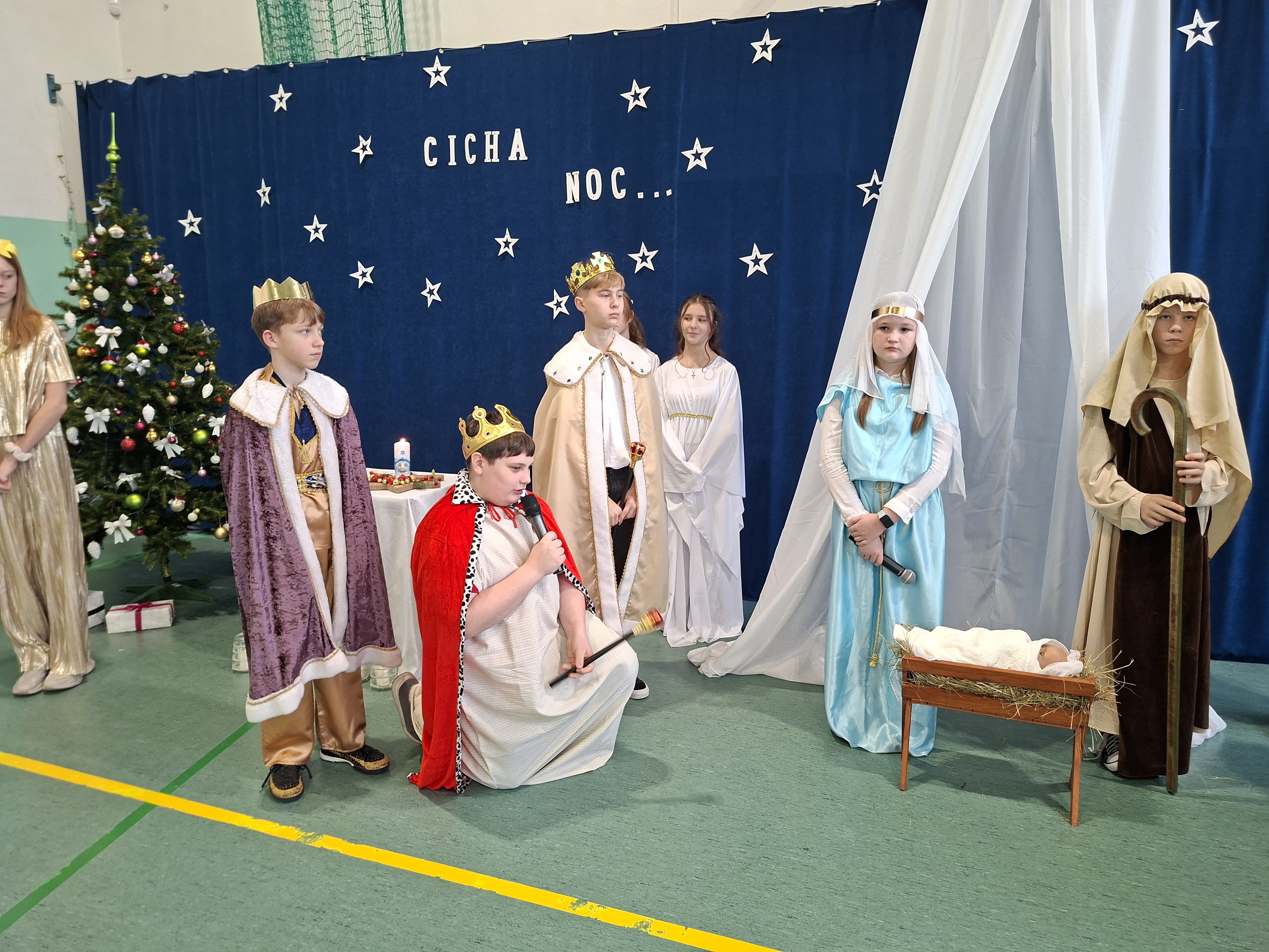 18 grudnia 2025 r. cała społeczność szkolna zebrała się na sali gimnastycznej, by uczestniczyć w szkolnych jasełkach. Czas Bożego Narodzenia to chwila, kiedy wszyscy stają się dla siebie bardziej życzliwi, milsi i odkładają na bok wszelkie spory i waśnie. Uczniowie klas szóstych w specjalnie przygotowanych strojach oraz pięknej scenografii, przedstawili sceny narodzin Chrystusa oraz towarzyszące temu wydarzenia. Jasełka wprowadziły wszystkich w świąteczny nastrój, a młodzi aktorzy swym pięknym występem podbili serca publiczności. Śpiew kolęd w wykonaniu szkolnego chóru pod kierunkiem pana Kamila Kołatka przypomniał o tym, że Święta Bożego Narodzenia są już bardzo blisko. Na koniec świąteczne życzenia złożyła Pani Dyrektor Aleksandra Fornalik oraz zaproszeni goście: Pan Konrad Koc-Wójt Gminy Bełchatów, ks. Krzysztof Petruk i Pani Małgorzata Dobrowolska-Urbaniak, Przewodnicząca Rady Rodziców.
