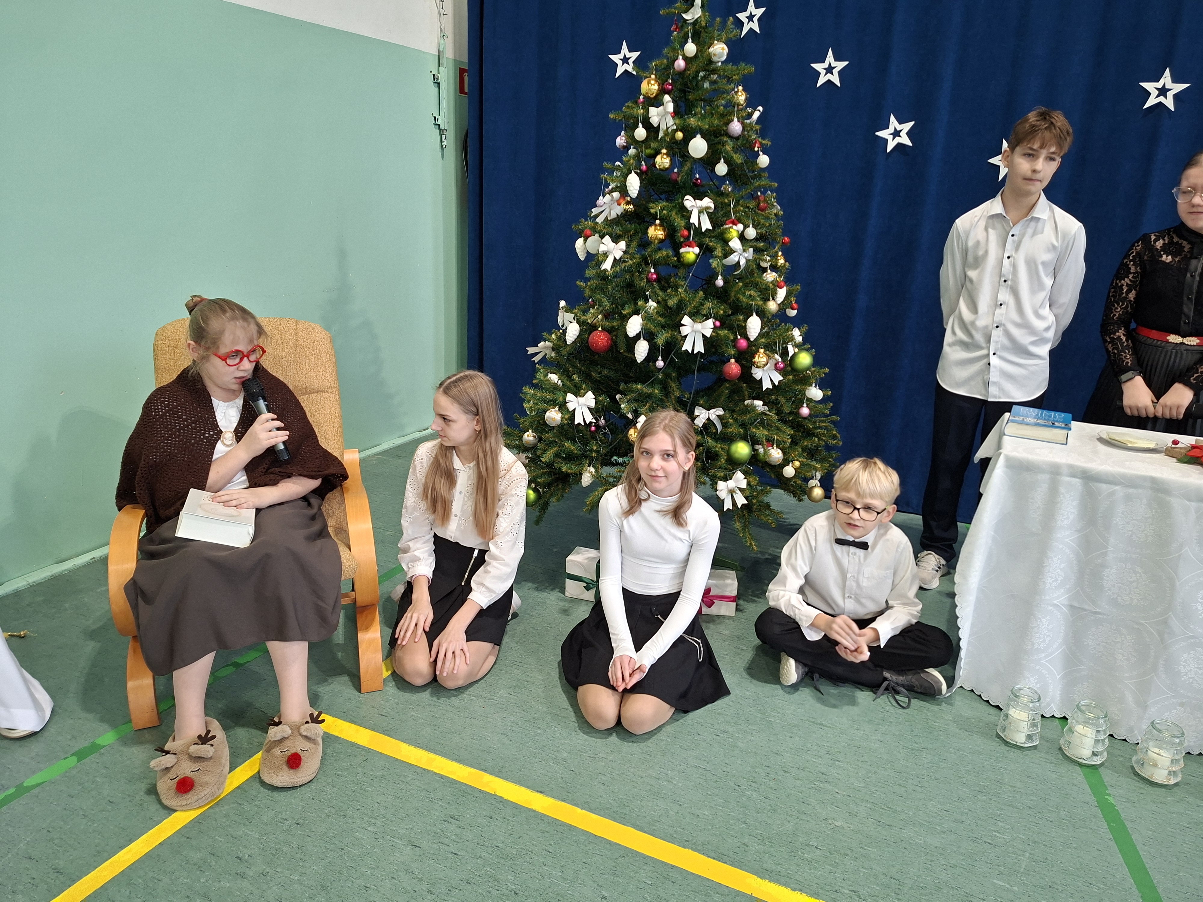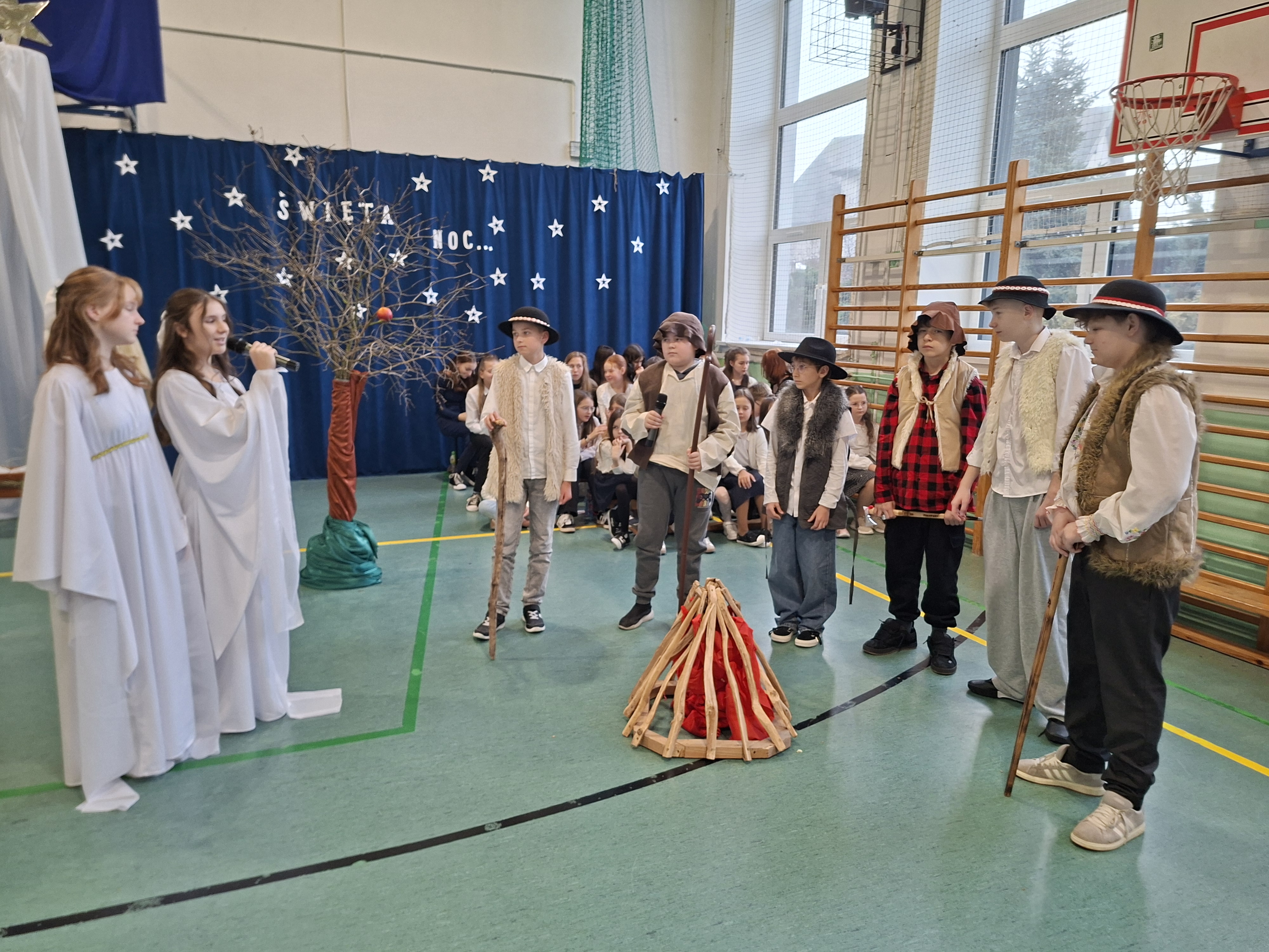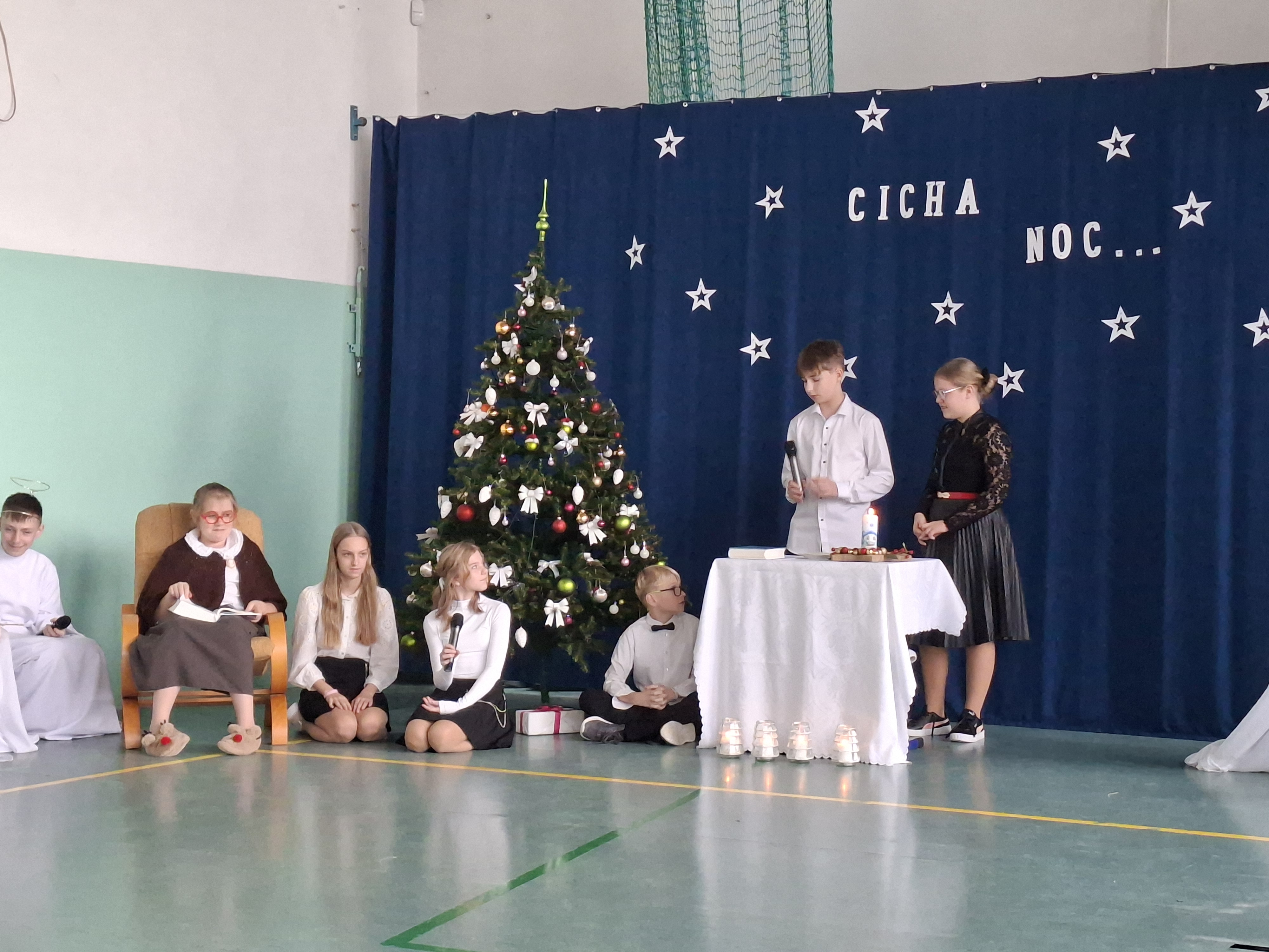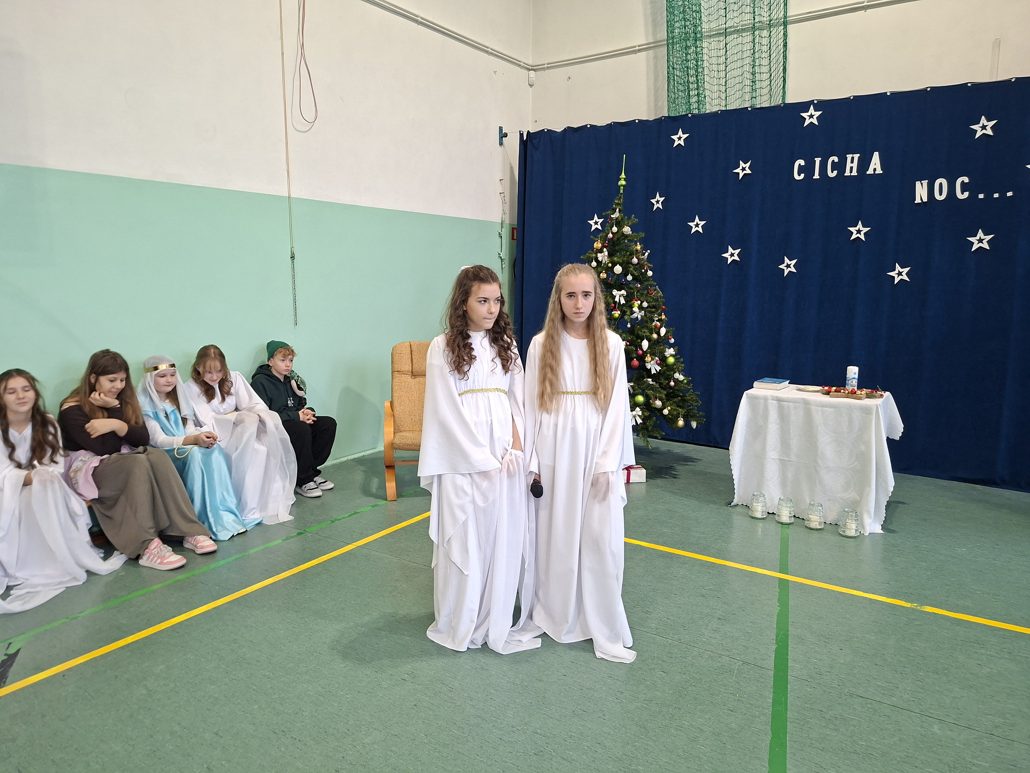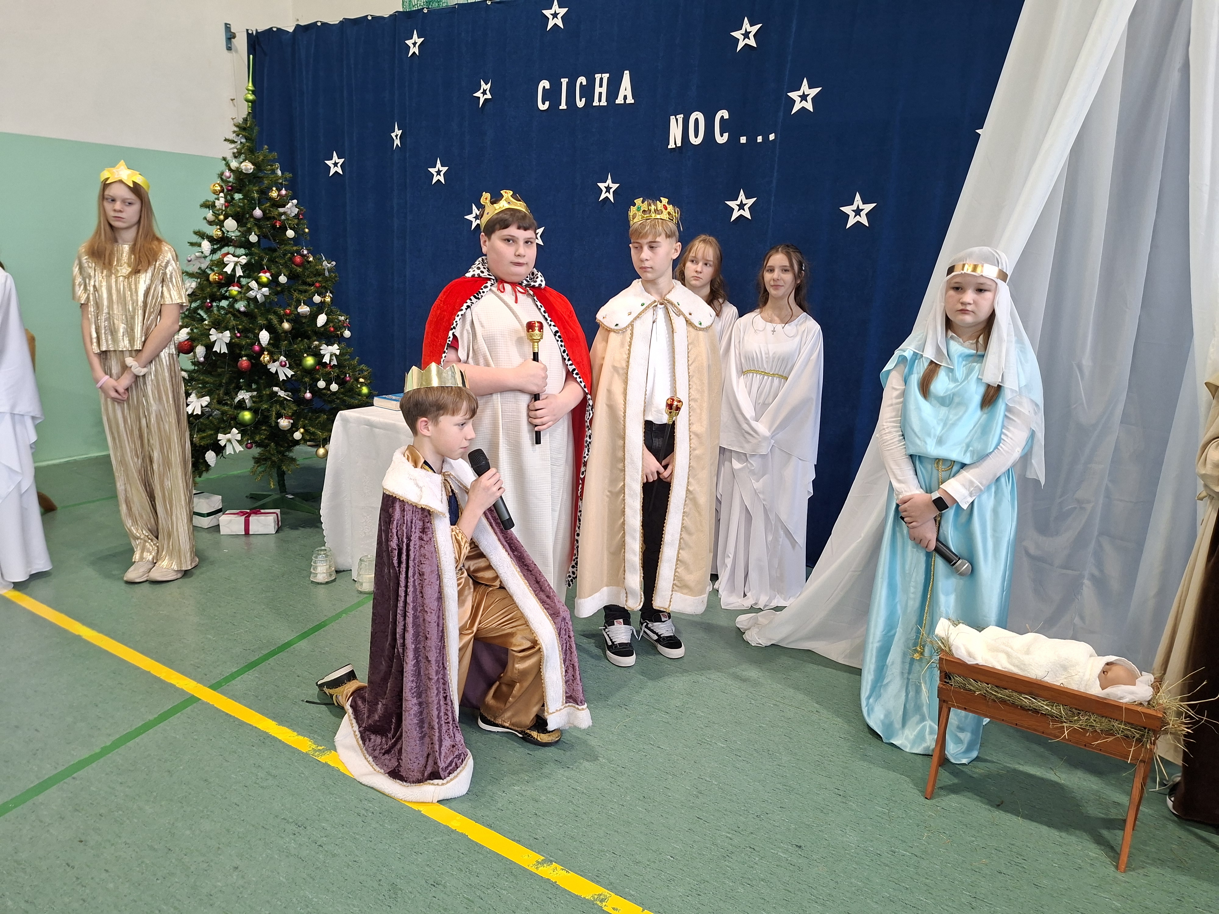 18 grudnia 2025 r. cała społeczność szkolna zebrała się na sali gimnastycznej, by uczestniczyć w szkolnych jasełkach. Czas Bożego Narodzenia to chwila, kiedy wszyscy stają się dla siebie bardziej życzliwi, milsi i odkładają na bok wszelkie spory i waśnie. Uczniowie klas szóstych w specjalnie przygotowanych strojach oraz pięknej scenografii, przedstawili sceny narodzin Chrystusa oraz towarzyszące temu wydarzenia. Jasełka wprowadziły wszystkich w świąteczny nastrój, a młodzi aktorzy swym pięknym występem podbili serca publiczności. Śpiew kolęd w wykonaniu szkolnego chóru pod kierunkiem pana Kamila Kołatka przypomniał o tym, że Święta Bożego Narodzenia są już bardzo blisko. Na koniec świąteczne życzenia złożyła Pani Dyrektor Aleksandra Fornalik oraz zaproszeni goście: Pan Konrad Koc-Wójt Gminy Bełchatów, ks. Krzysztof Petruk i Pani Małgorzata Dobrowolska-Urbaniak, Przewodnicząca Rady Rodziców.