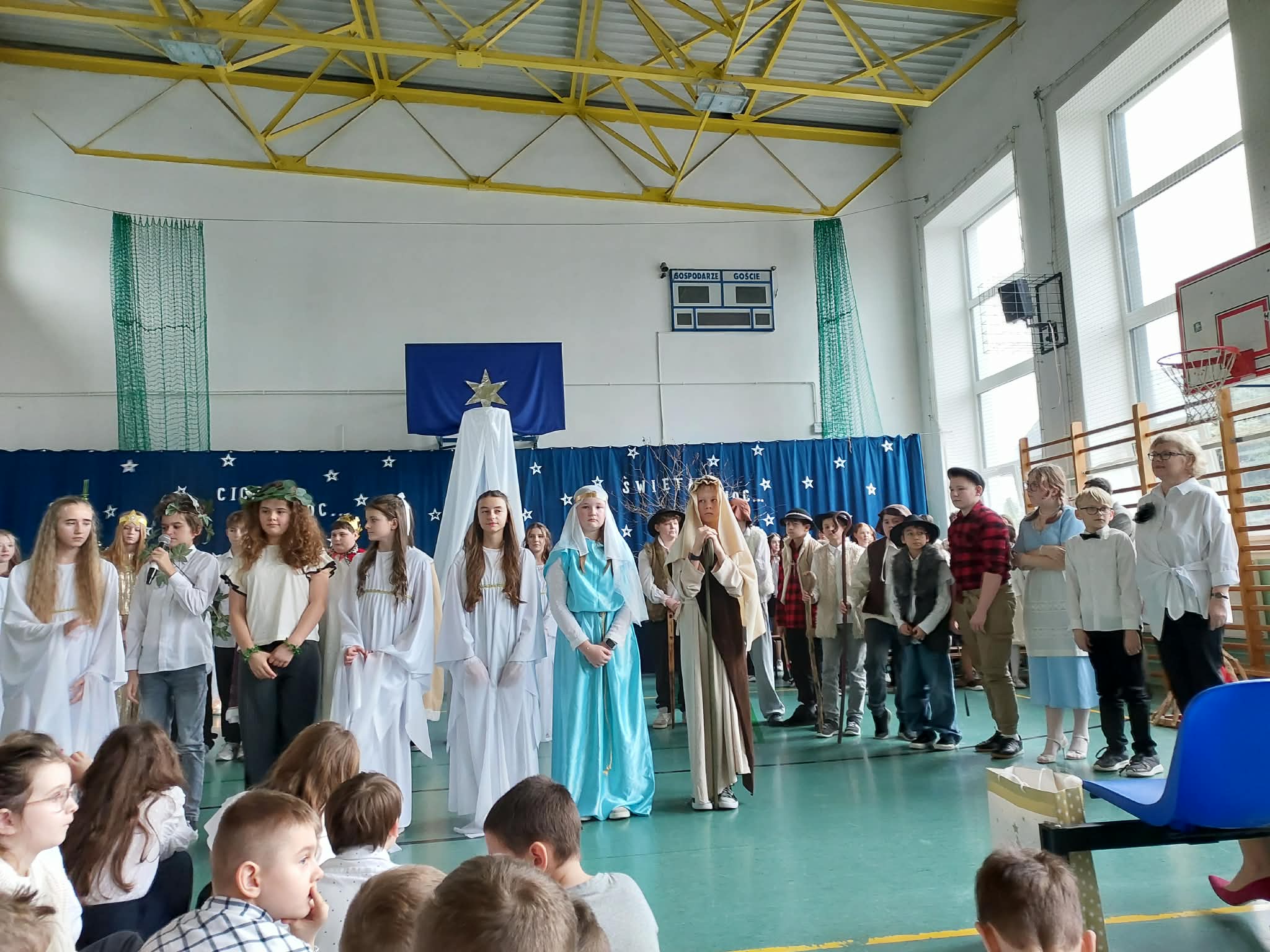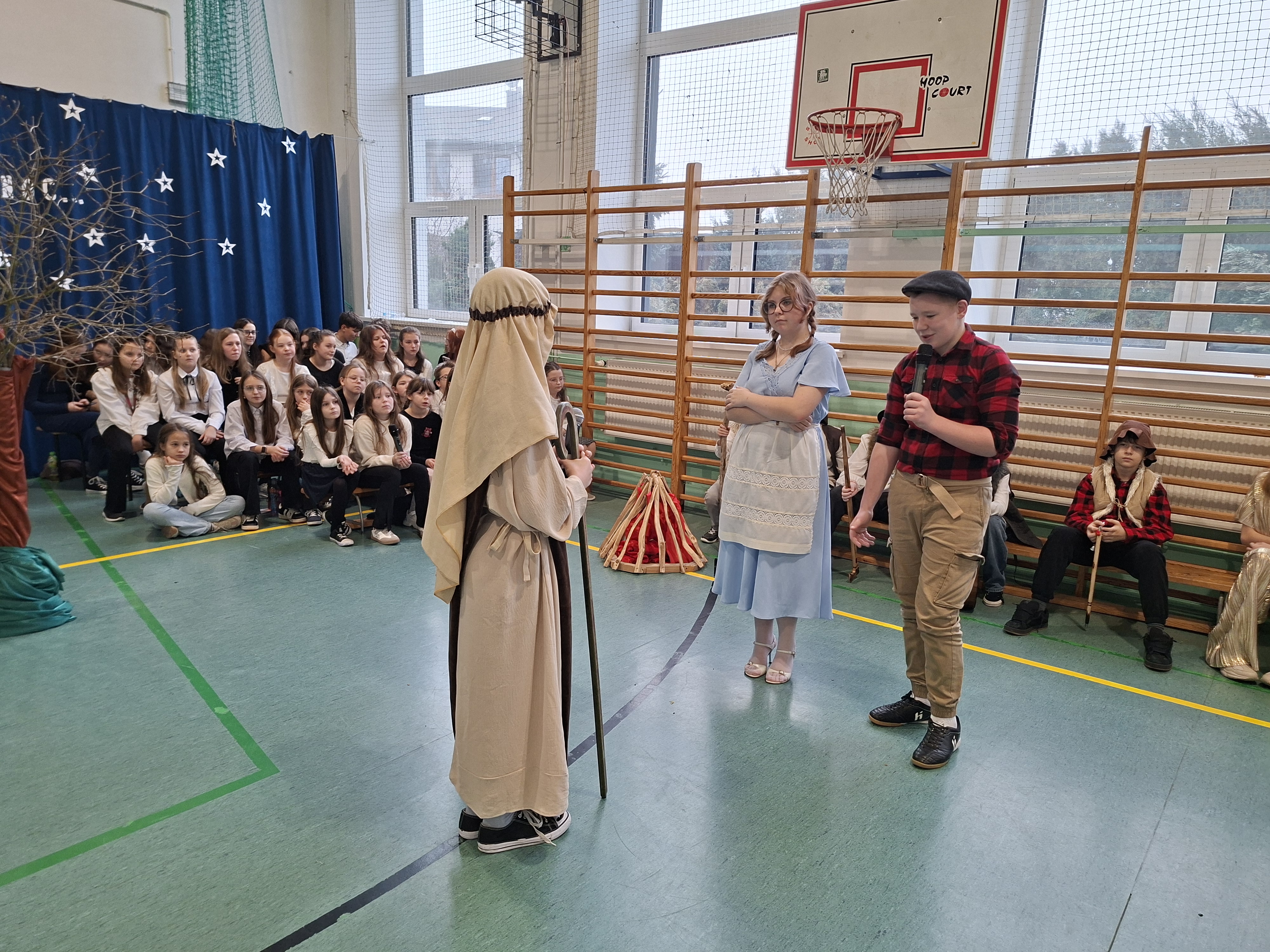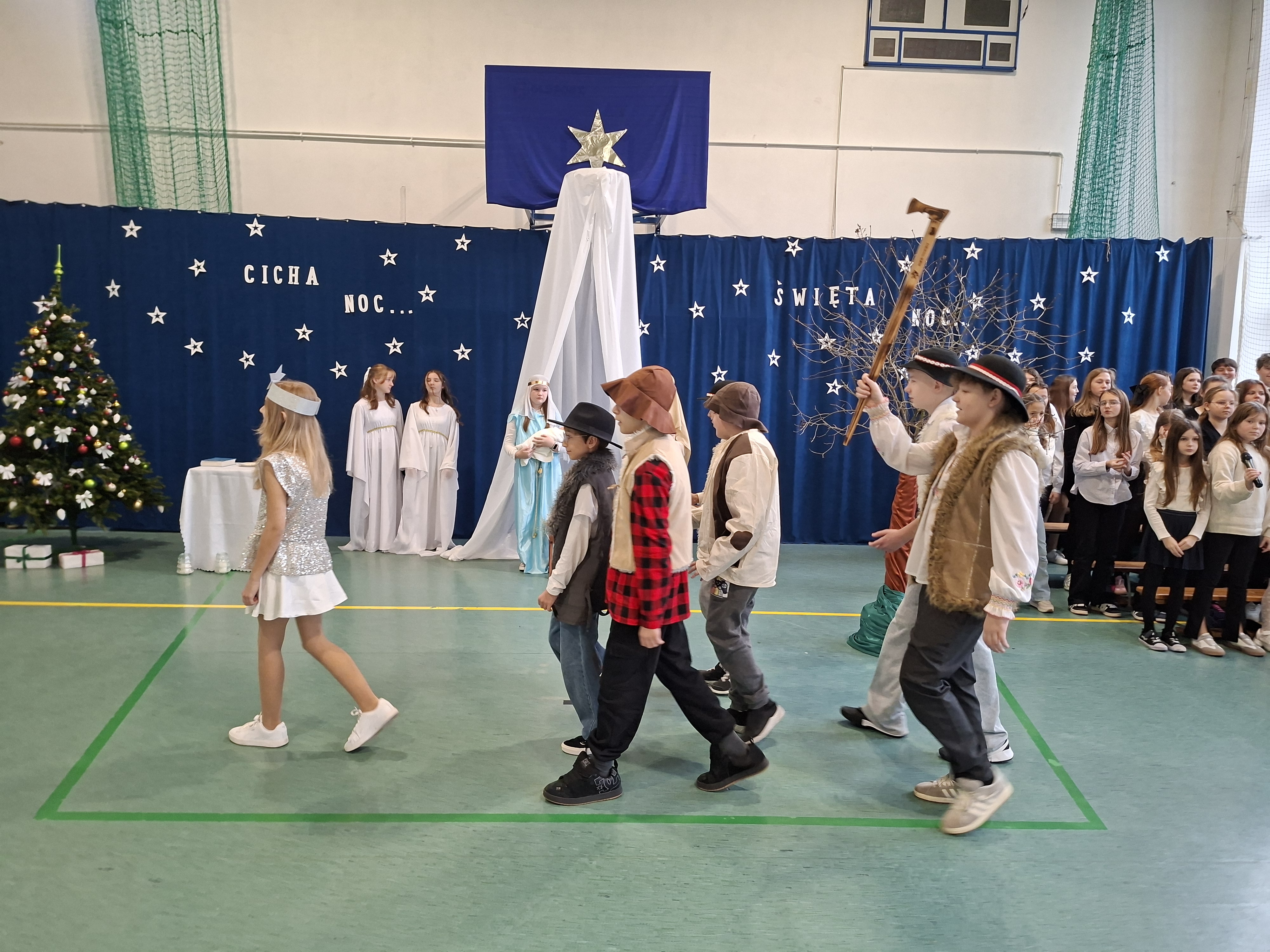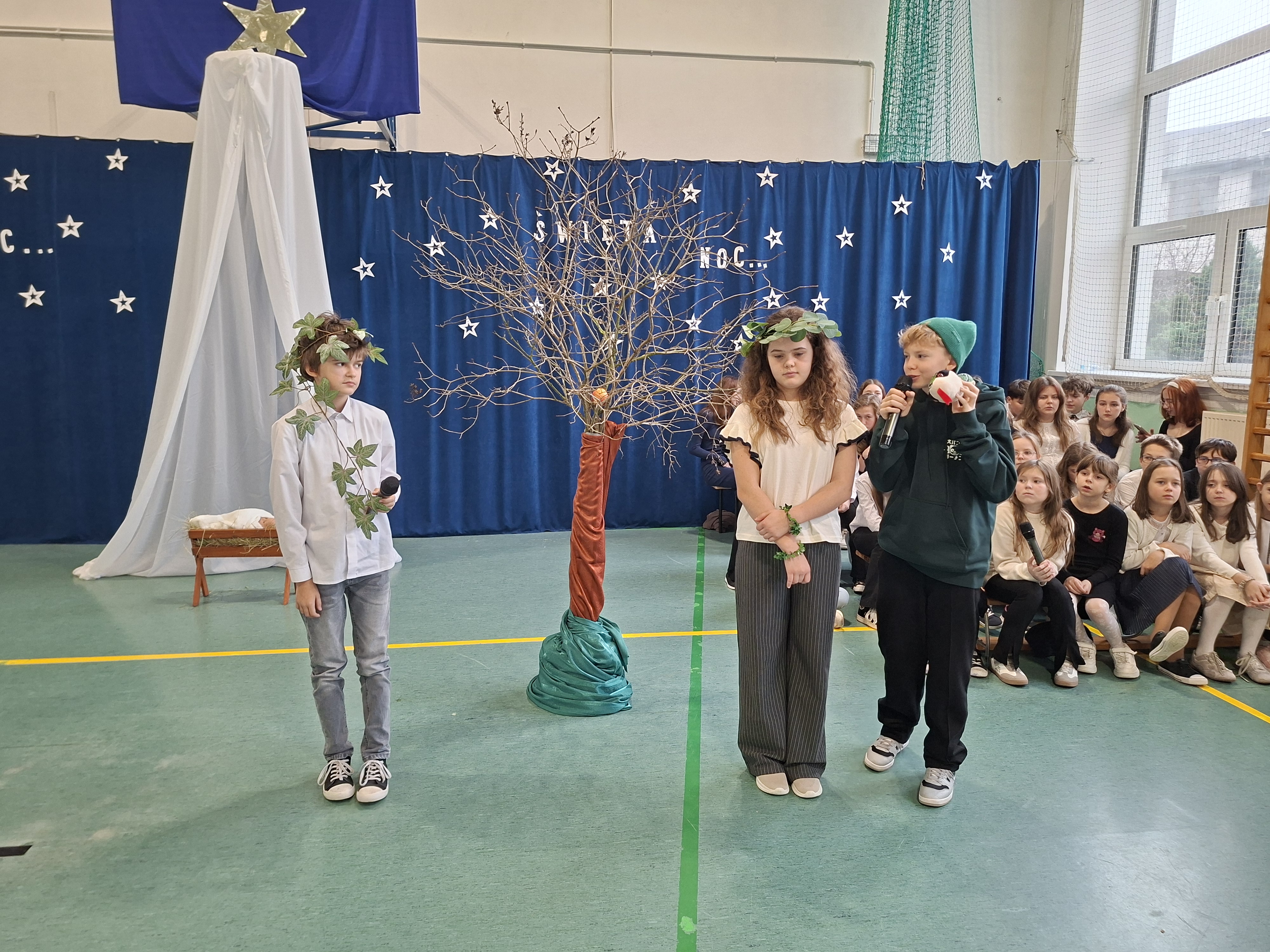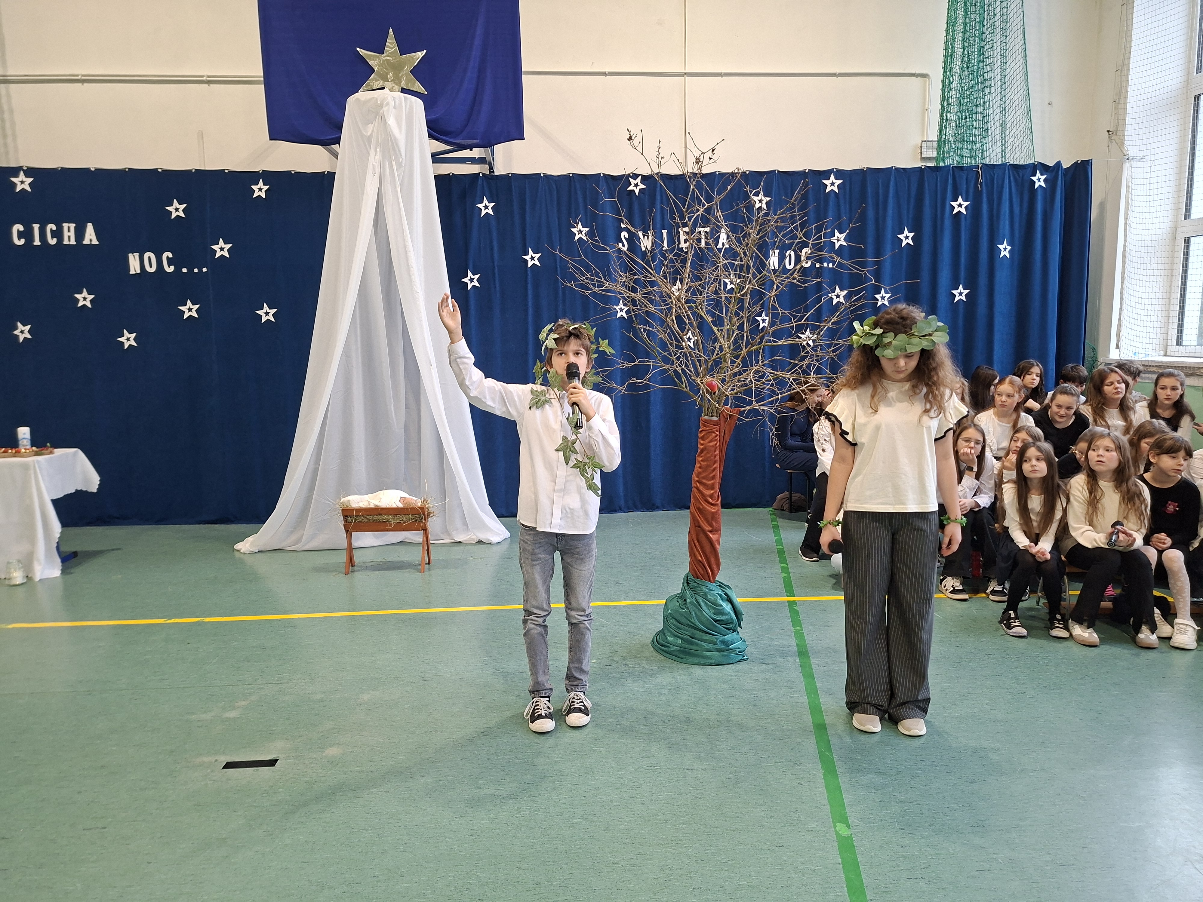 18 grudnia 2025 r. cała społeczność szkolna zebrała się na sali gimnastycznej, by uczestniczyć w szkolnych jasełkach. Czas Bożego Narodzenia to chwila, kiedy wszyscy stają się dla siebie bardziej życzliwi, milsi i odkładają na bok wszelkie spory i waśnie. Uczniowie klas szóstych w specjalnie przygotowanych strojach oraz pięknej scenografii, przedstawili sceny narodzin Chrystusa oraz towarzyszące temu wydarzenia. Jasełka wprowadziły wszystkich w świąteczny nastrój, a młodzi aktorzy swym pięknym występem podbili serca publiczności. Śpiew kolęd w wykonaniu szkolnego chóru pod kierunkiem pana Kamila Kołatka przypomniał o tym, że Święta Bożego Narodzenia są już bardzo blisko. Na koniec świąteczne życzenia złożyła Pani Dyrektor Aleksandra Fornalik oraz zaproszeni goście: Pan Konrad Koc-Wójt Gminy Bełchatów, ks. Krzysztof Petruk i Pani Małgorzata Dobrowolska-Urbaniak, Przewodnicząca Rady Rodziców.