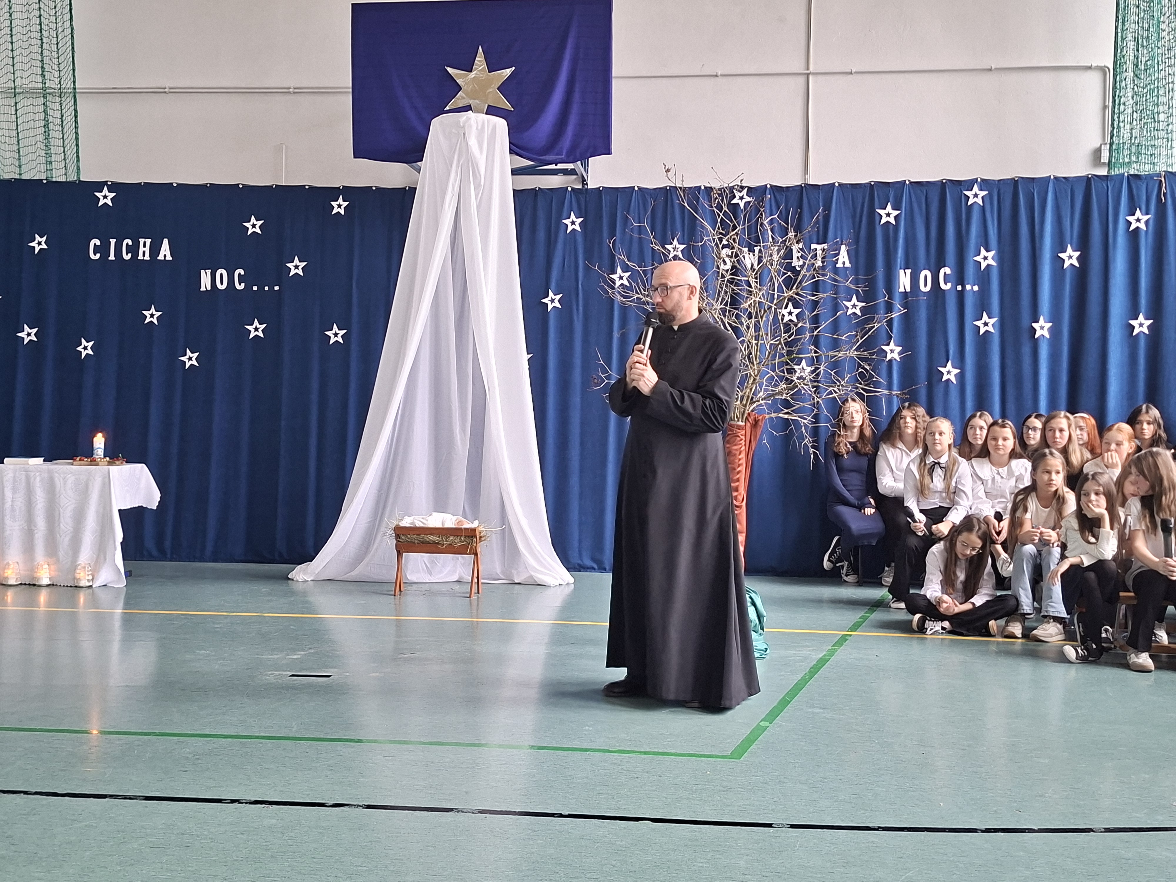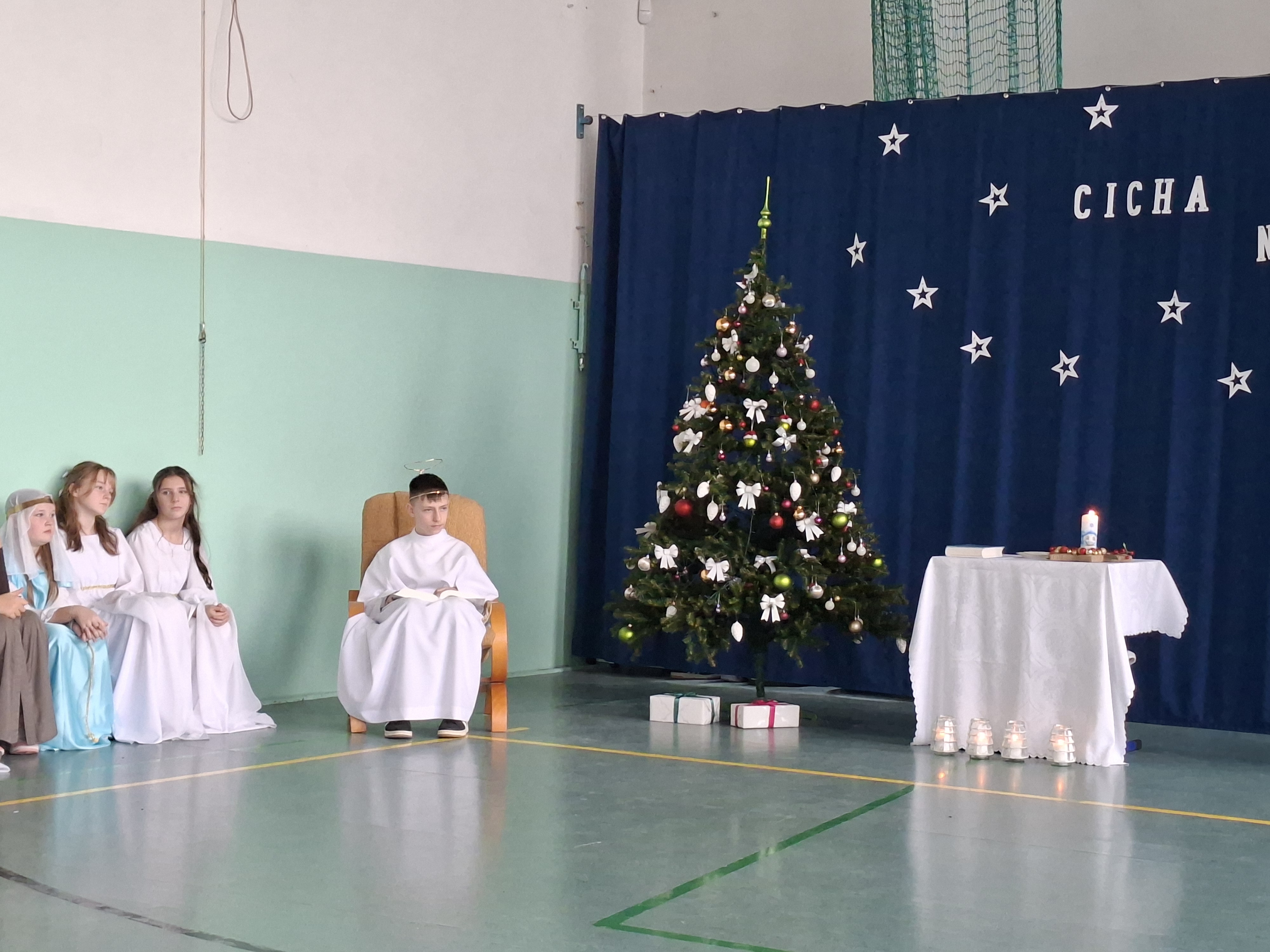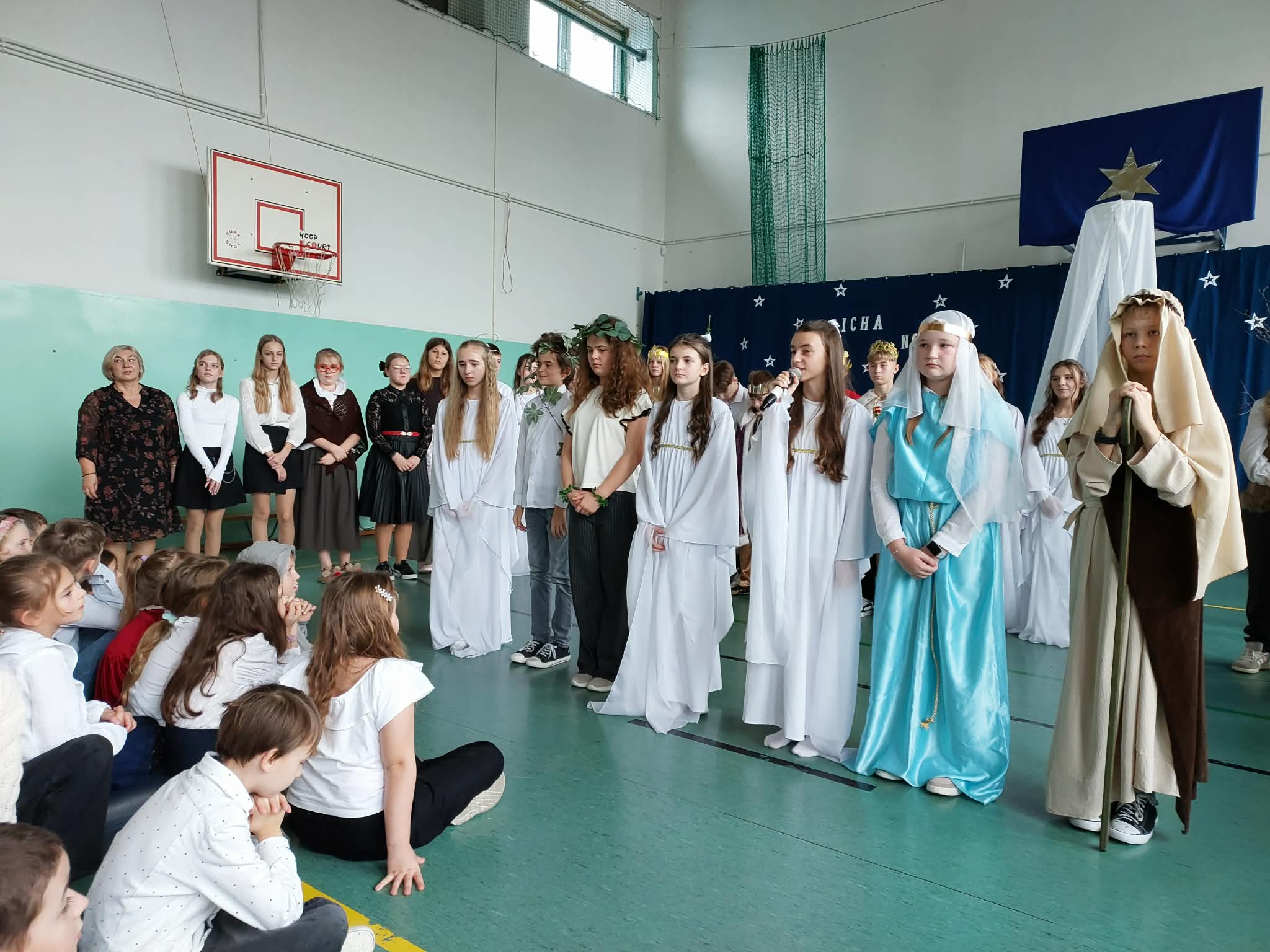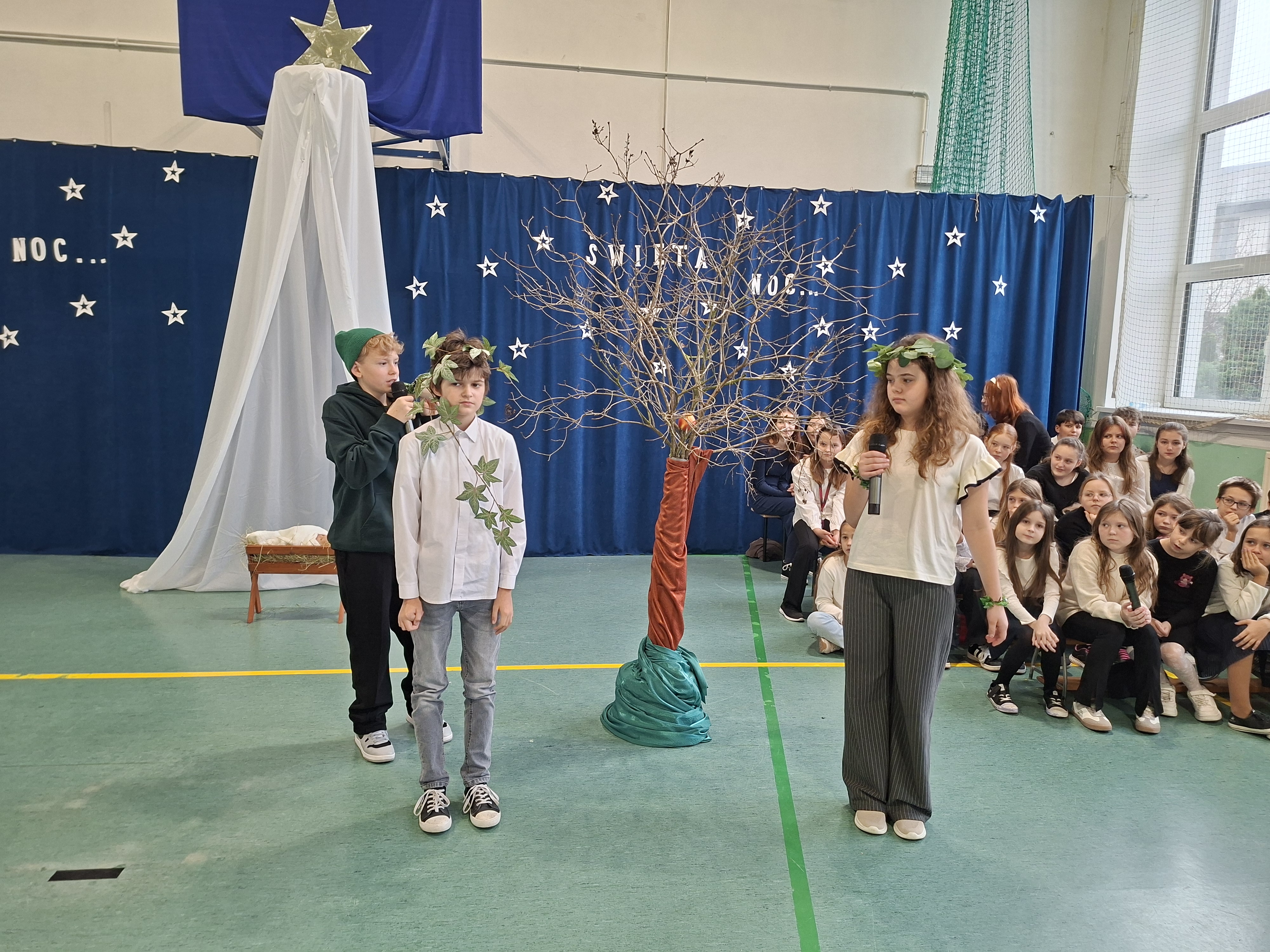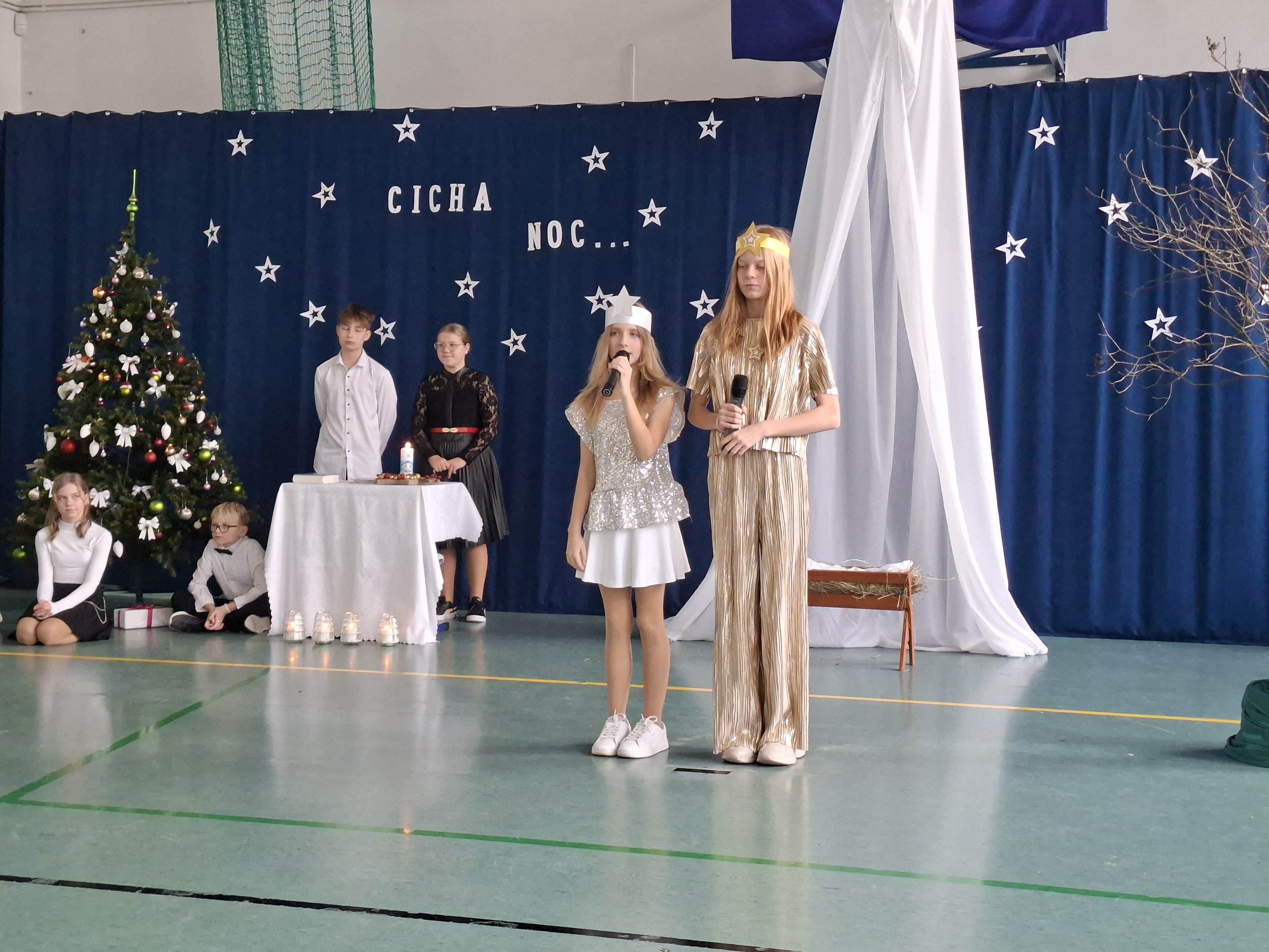 18 grudnia 2025 r. cała społeczność szkolna zebrała się na sali gimnastycznej, by uczestniczyć w szkolnych jasełkach. Czas Bożego Narodzenia to chwila, kiedy wszyscy stają się dla siebie bardziej życzliwi, milsi i odkładają na bok wszelkie spory i waśnie. Uczniowie klas szóstych w specjalnie przygotowanych strojach oraz pięknej scenografii, przedstawili sceny narodzin Chrystusa oraz towarzyszące temu wydarzenia. Jasełka wprowadziły wszystkich w świąteczny nastrój, a młodzi aktorzy swym pięknym występem podbili serca publiczności. Śpiew kolęd w wykonaniu szkolnego chóru pod kierunkiem pana Kamila Kołatka przypomniał o tym, że Święta Bożego Narodzenia są już bardzo blisko. Na koniec świąteczne życzenia złożyła Pani Dyrektor Aleksandra Fornalik oraz zaproszeni goście: Pan Konrad Koc-Wójt Gminy Bełchatów, ks. Krzysztof Petruk i Pani Małgorzata Dobrowolska-Urbaniak, Przewodnicząca Rady Rodziców.