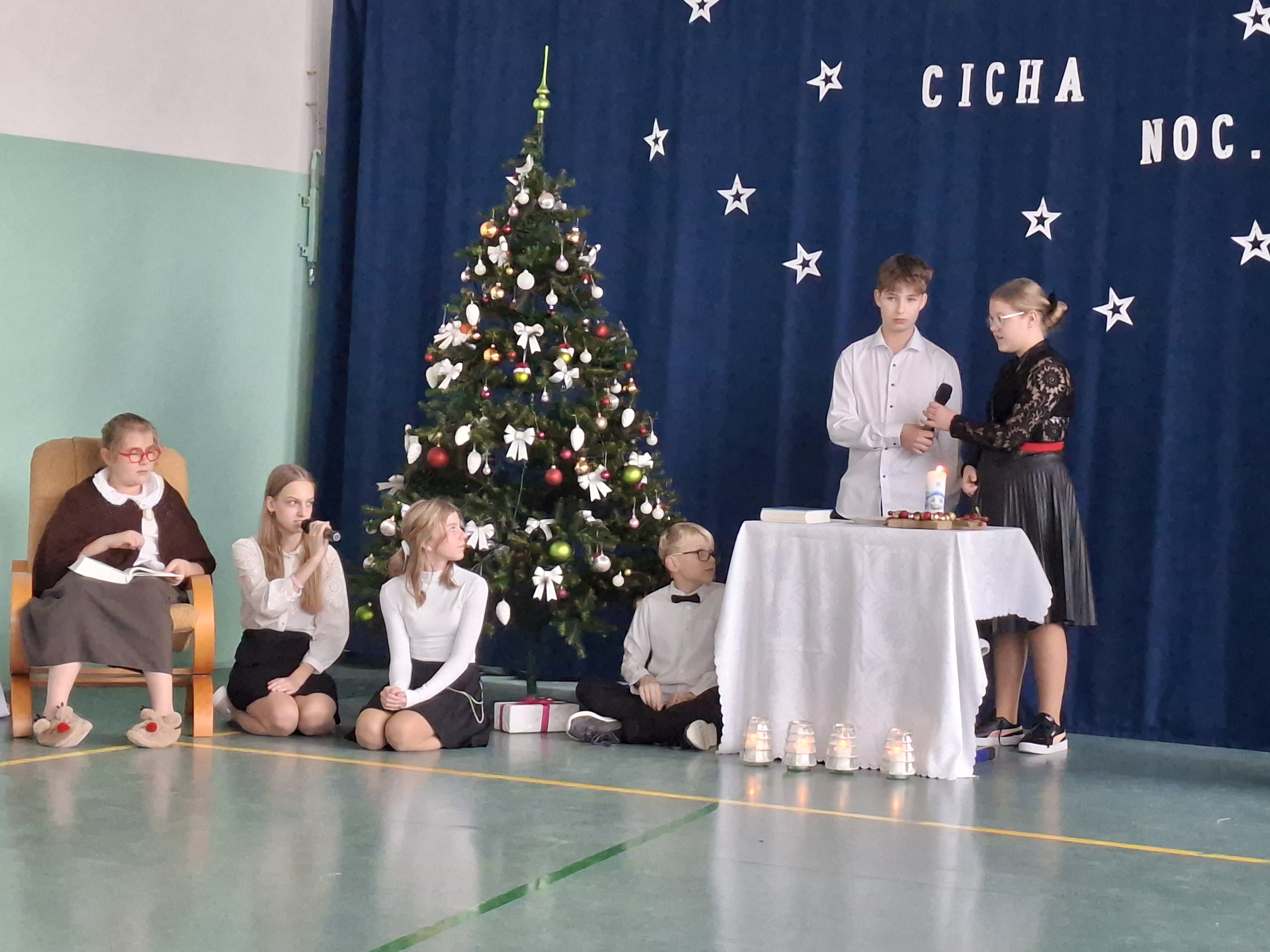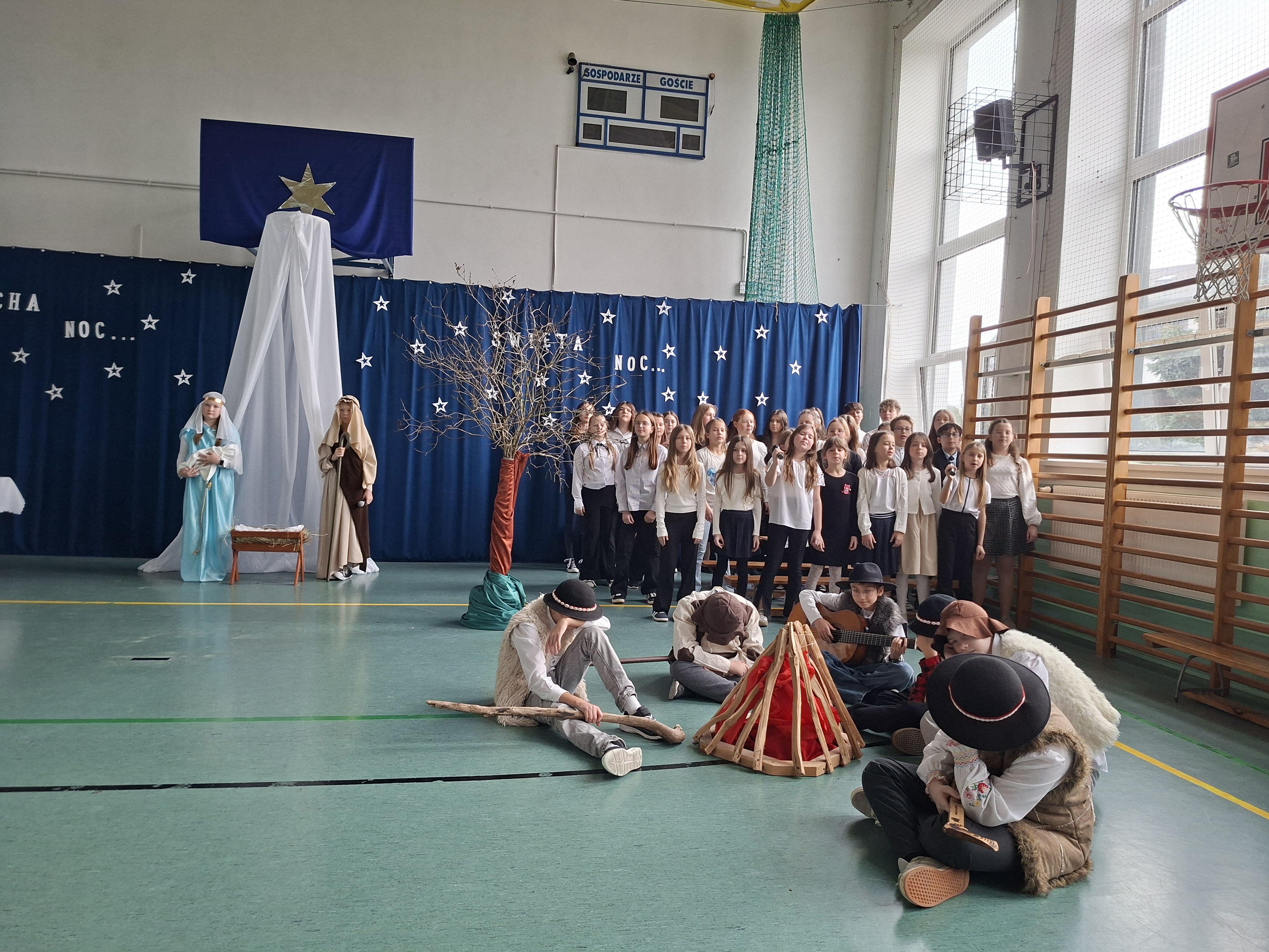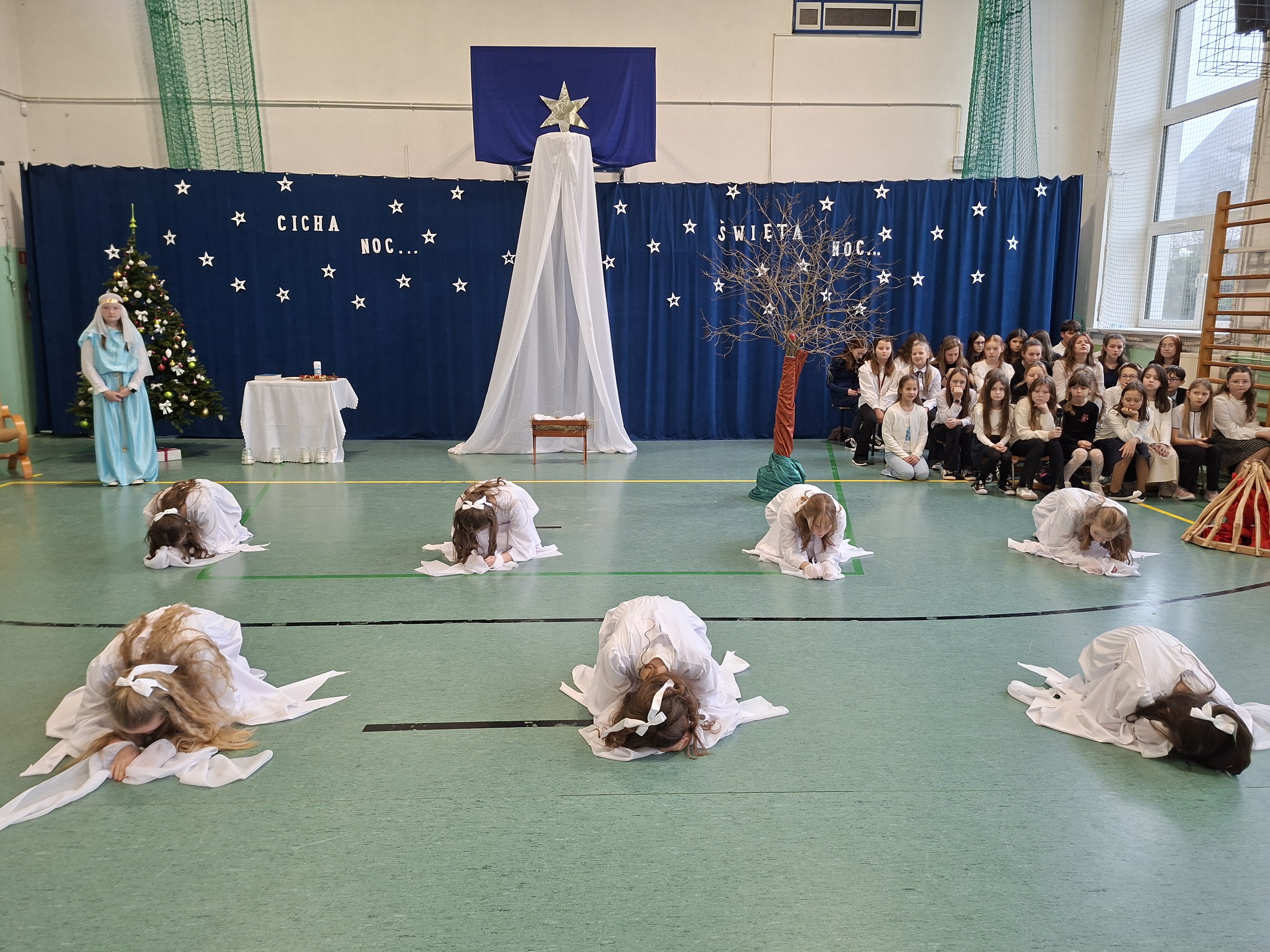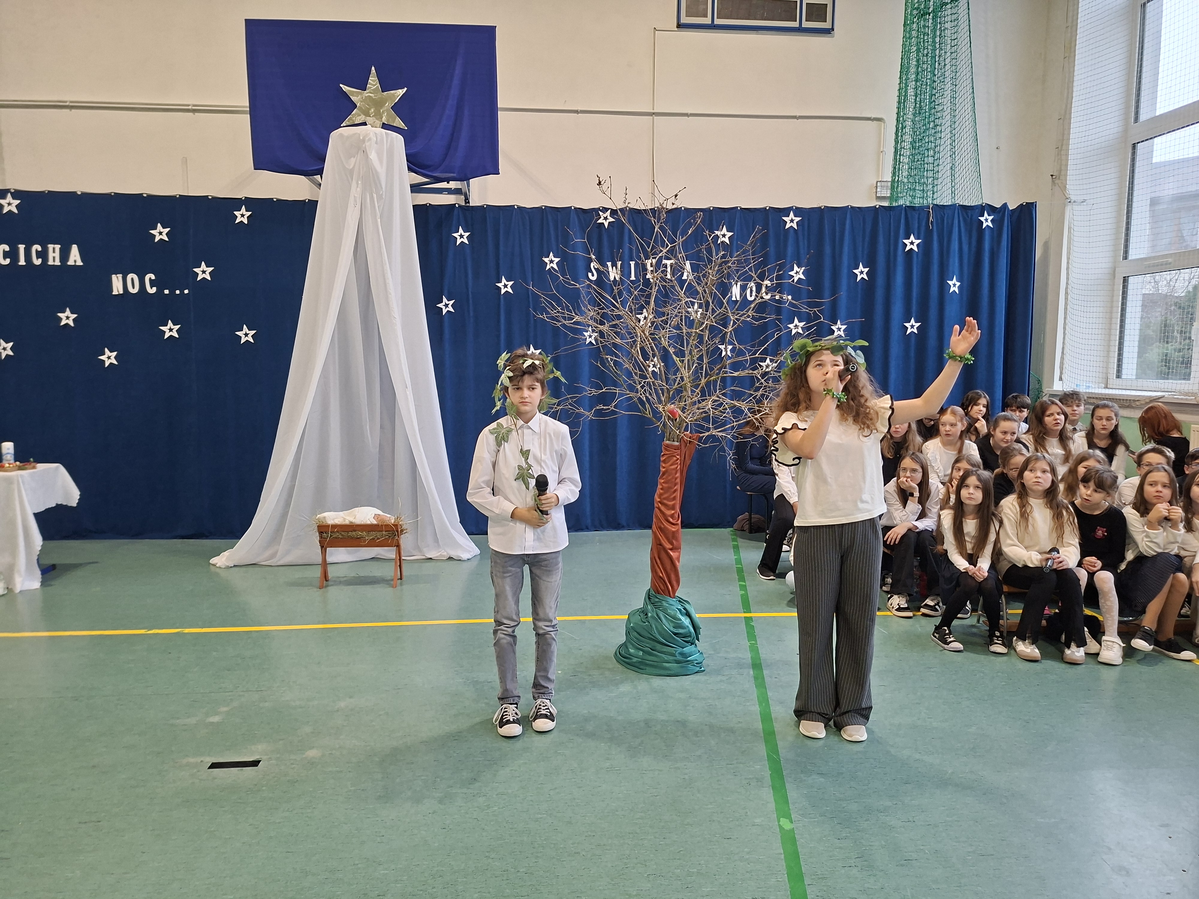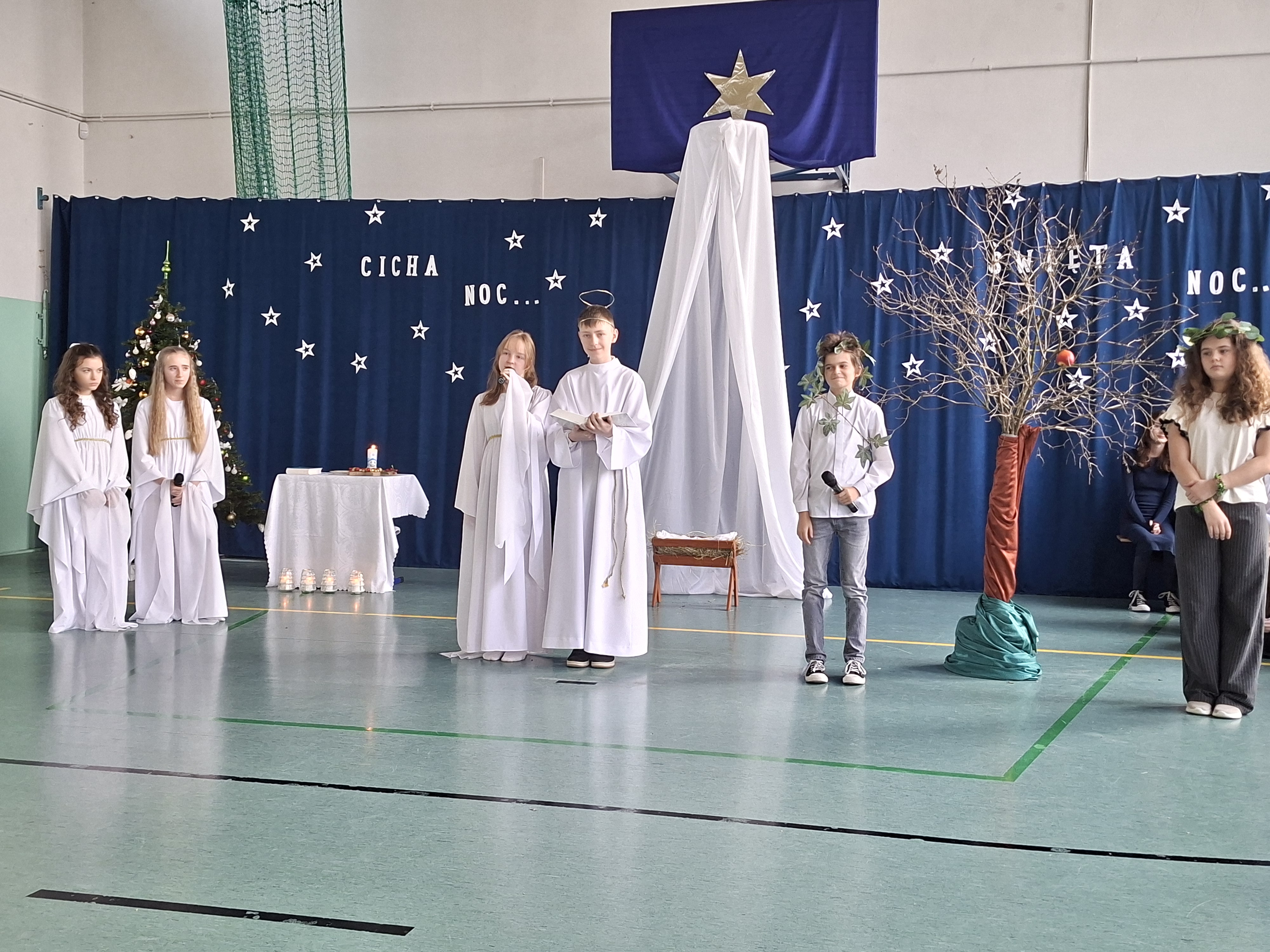 18 grudnia 2025 r. cała społeczność szkolna zebrała się na sali gimnastycznej, by uczestniczyć w szkolnych jasełkach. Czas Bożego Narodzenia to chwila, kiedy wszyscy stają się dla siebie bardziej życzliwi, milsi i odkładają na bok wszelkie spory i waśnie. Uczniowie klas szóstych w specjalnie przygotowanych strojach oraz pięknej scenografii, przedstawili sceny narodzin Chrystusa oraz towarzyszące temu wydarzenia. Jasełka wprowadziły wszystkich w świąteczny nastrój, a młodzi aktorzy swym pięknym występem podbili serca publiczności. Śpiew kolęd w wykonaniu szkolnego chóru pod kierunkiem pana Kamila Kołatka przypomniał o tym, że Święta Bożego Narodzenia są już bardzo blisko. Na koniec świąteczne życzenia złożyła Pani Dyrektor Aleksandra Fornalik oraz zaproszeni goście: Pan Konrad Koc-Wójt Gminy Bełchatów, ks. Krzysztof Petruk i Pani Małgorzata Dobrowolska-Urbaniak, Przewodnicząca Rady Rodziców.