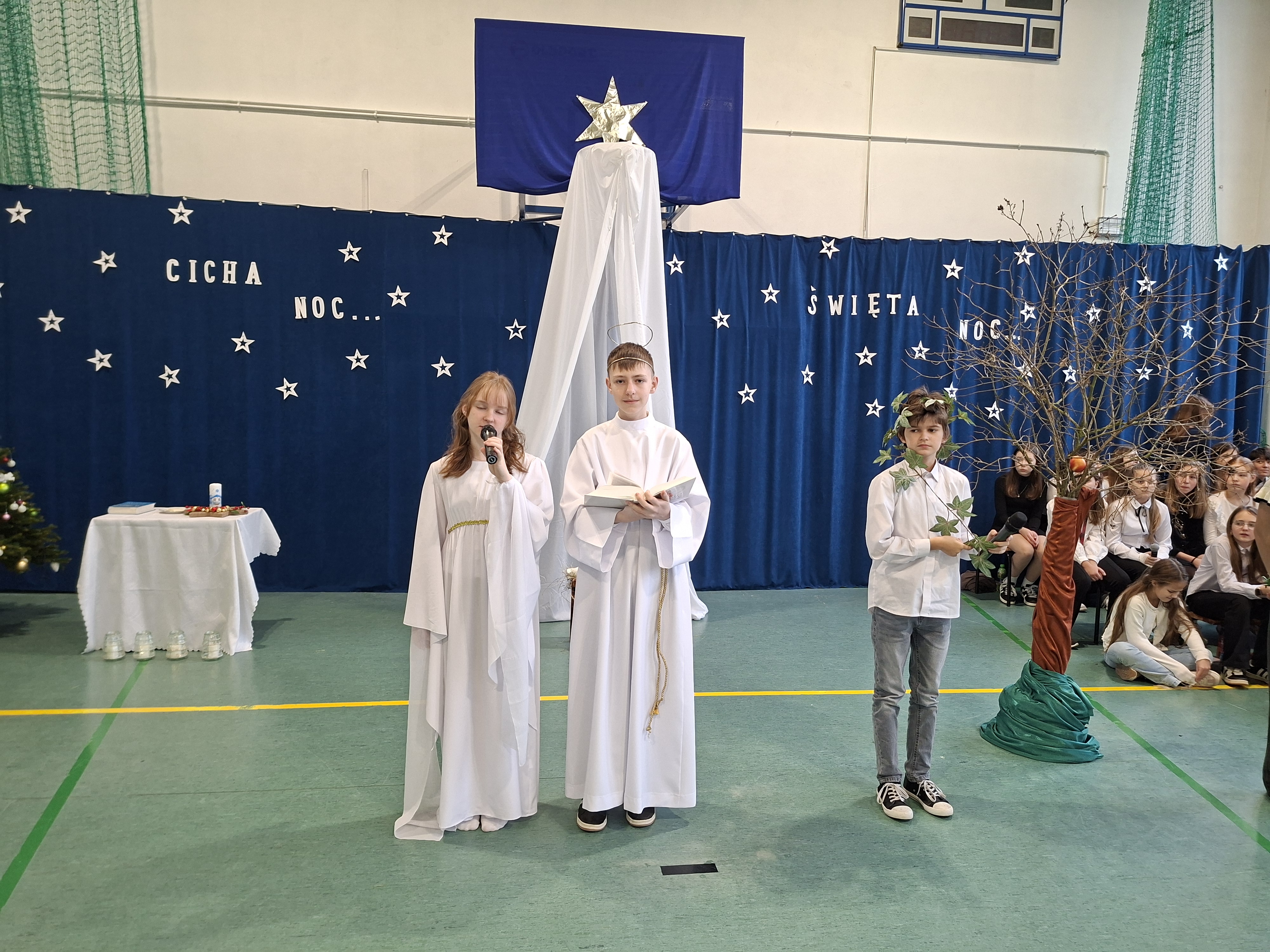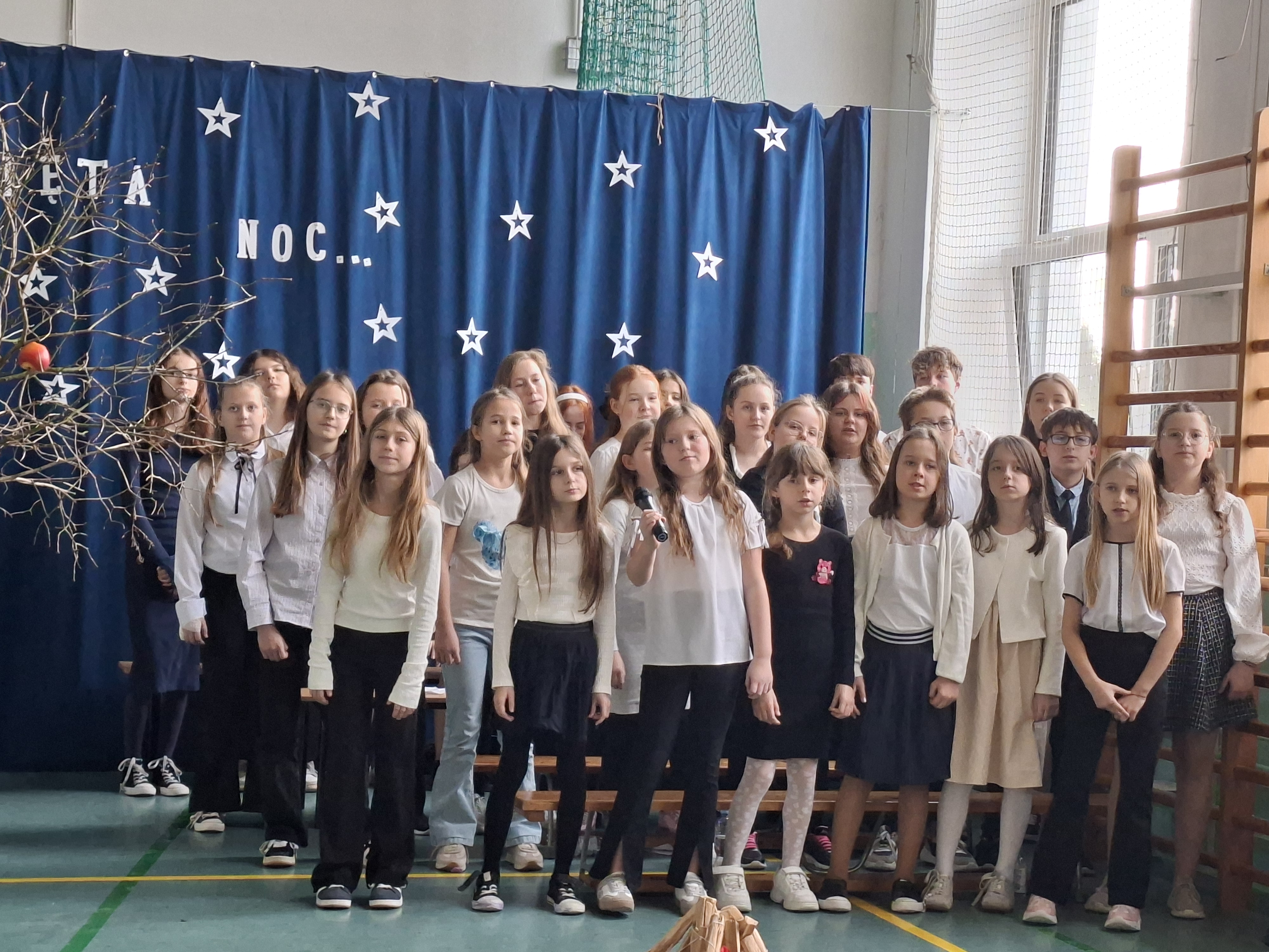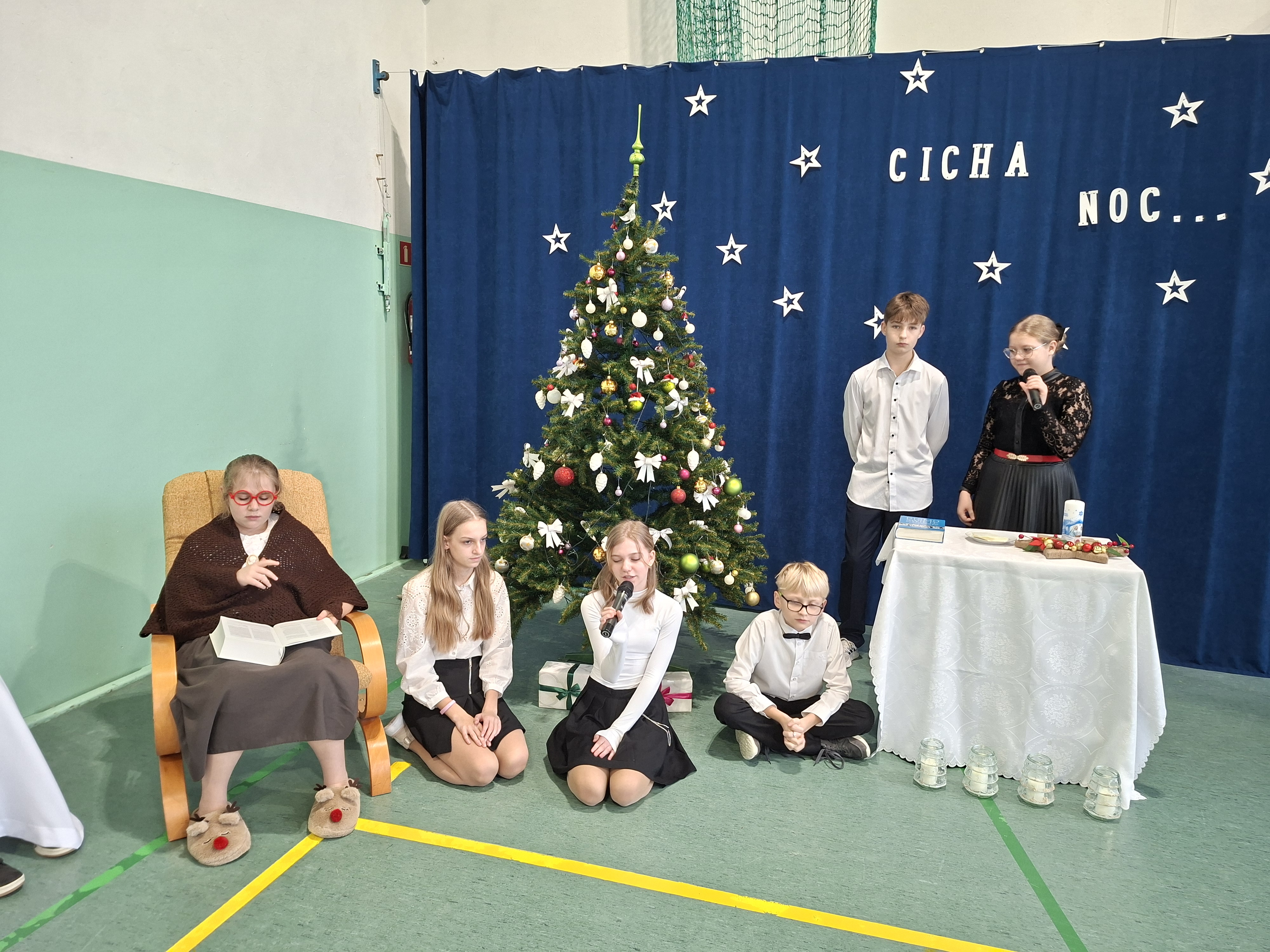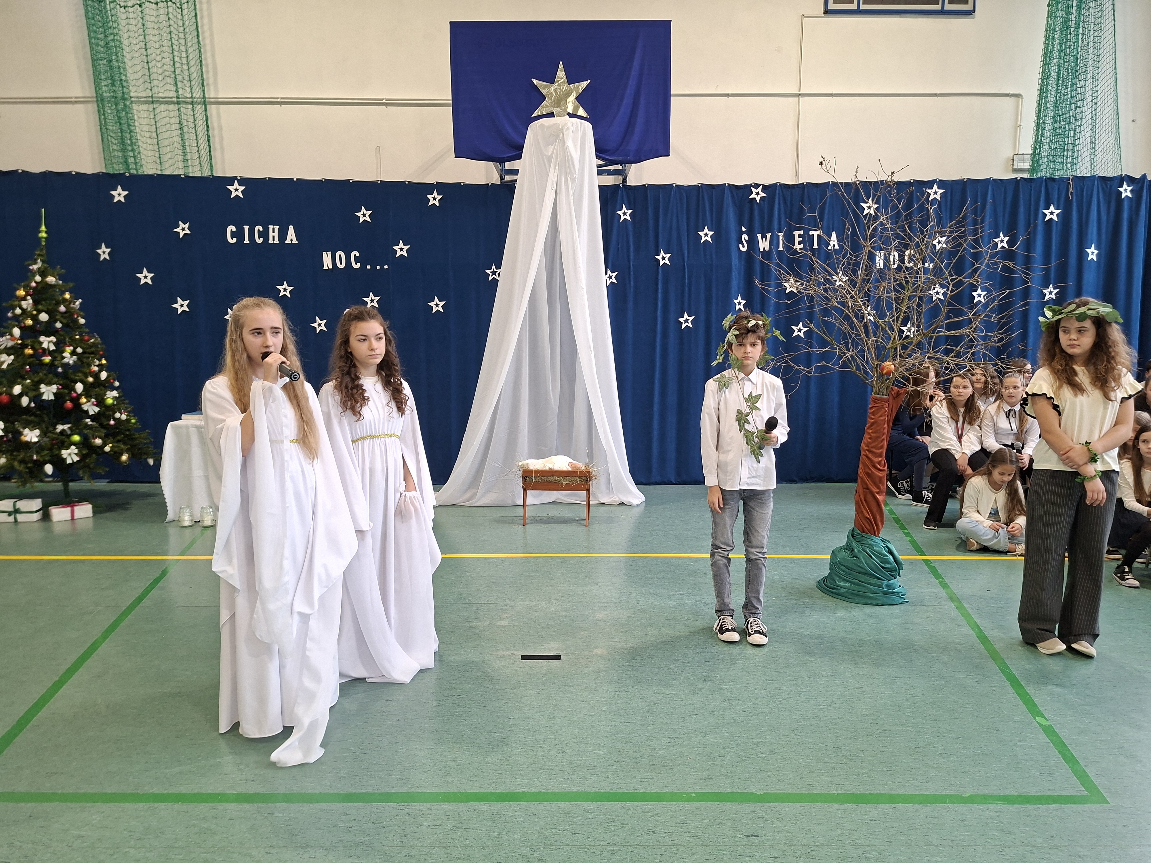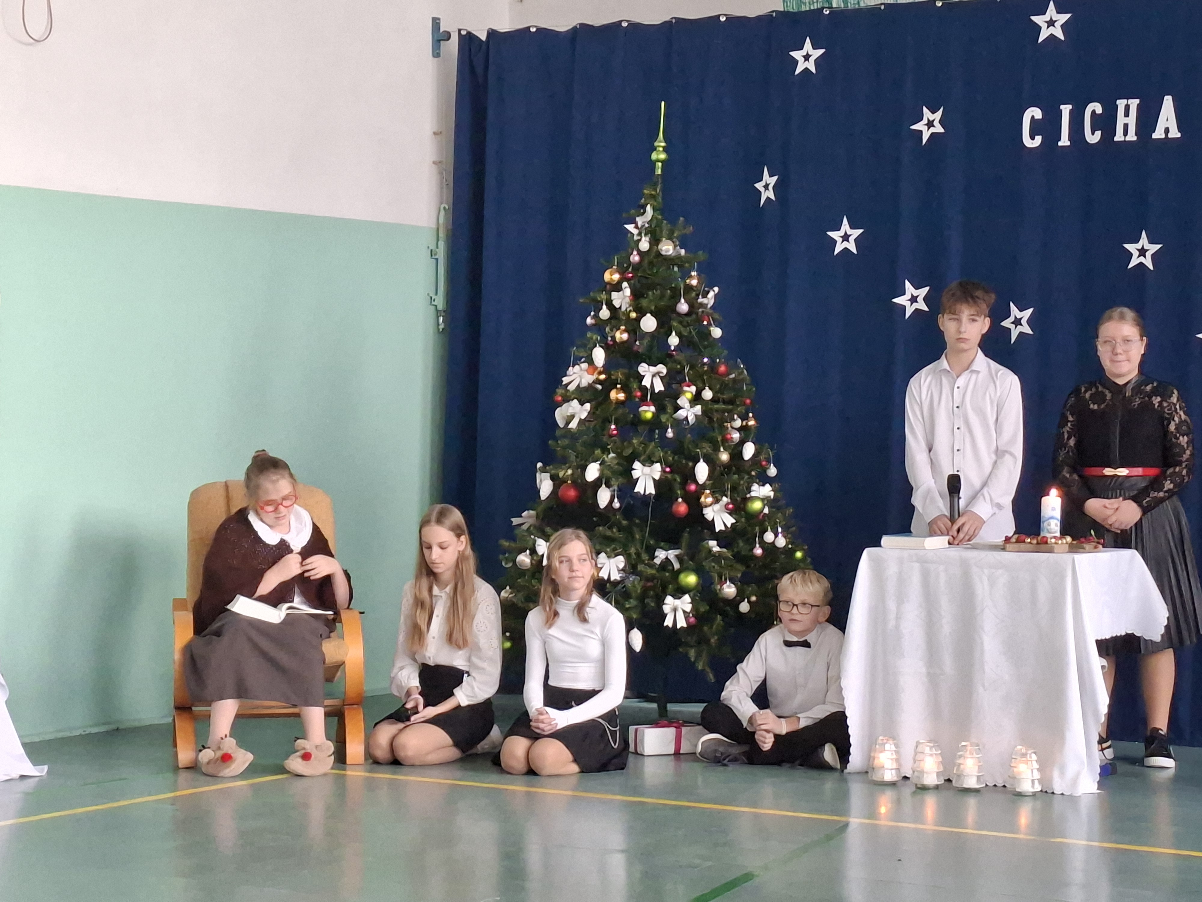 18 grudnia 2025 r. cała społeczność szkolna zebrała się na sali gimnastycznej, by uczestniczyć w szkolnych jasełkach. Czas Bożego Narodzenia to chwila, kiedy wszyscy stają się dla siebie bardziej życzliwi, milsi i odkładają na bok wszelkie spory i waśnie. Uczniowie klas szóstych w specjalnie przygotowanych strojach oraz pięknej scenografii, przedstawili sceny narodzin Chrystusa oraz towarzyszące temu wydarzenia. Jasełka wprowadziły wszystkich w świąteczny nastrój, a młodzi aktorzy swym pięknym występem podbili serca publiczności. Śpiew kolęd w wykonaniu szkolnego chóru pod kierunkiem pana Kamila Kołatka przypomniał o tym, że Święta Bożego Narodzenia są już bardzo blisko. Na koniec świąteczne życzenia złożyła Pani Dyrektor Aleksandra Fornalik oraz zaproszeni goście: Pan Konrad Koc-Wójt Gminy Bełchatów, ks. Krzysztof Petruk i Pani Małgorzata Dobrowolska-Urbaniak, Przewodnicząca Rady Rodziców.