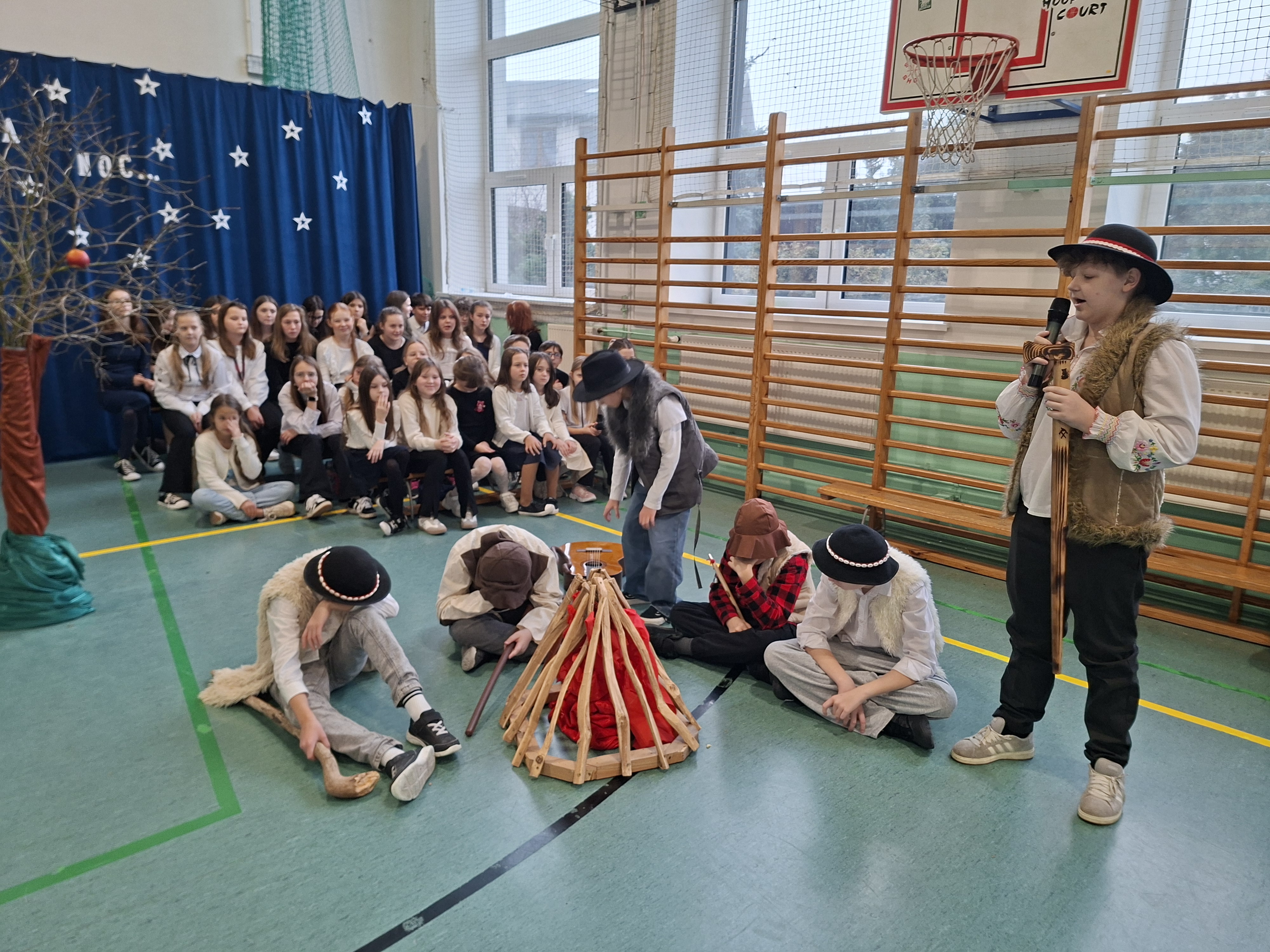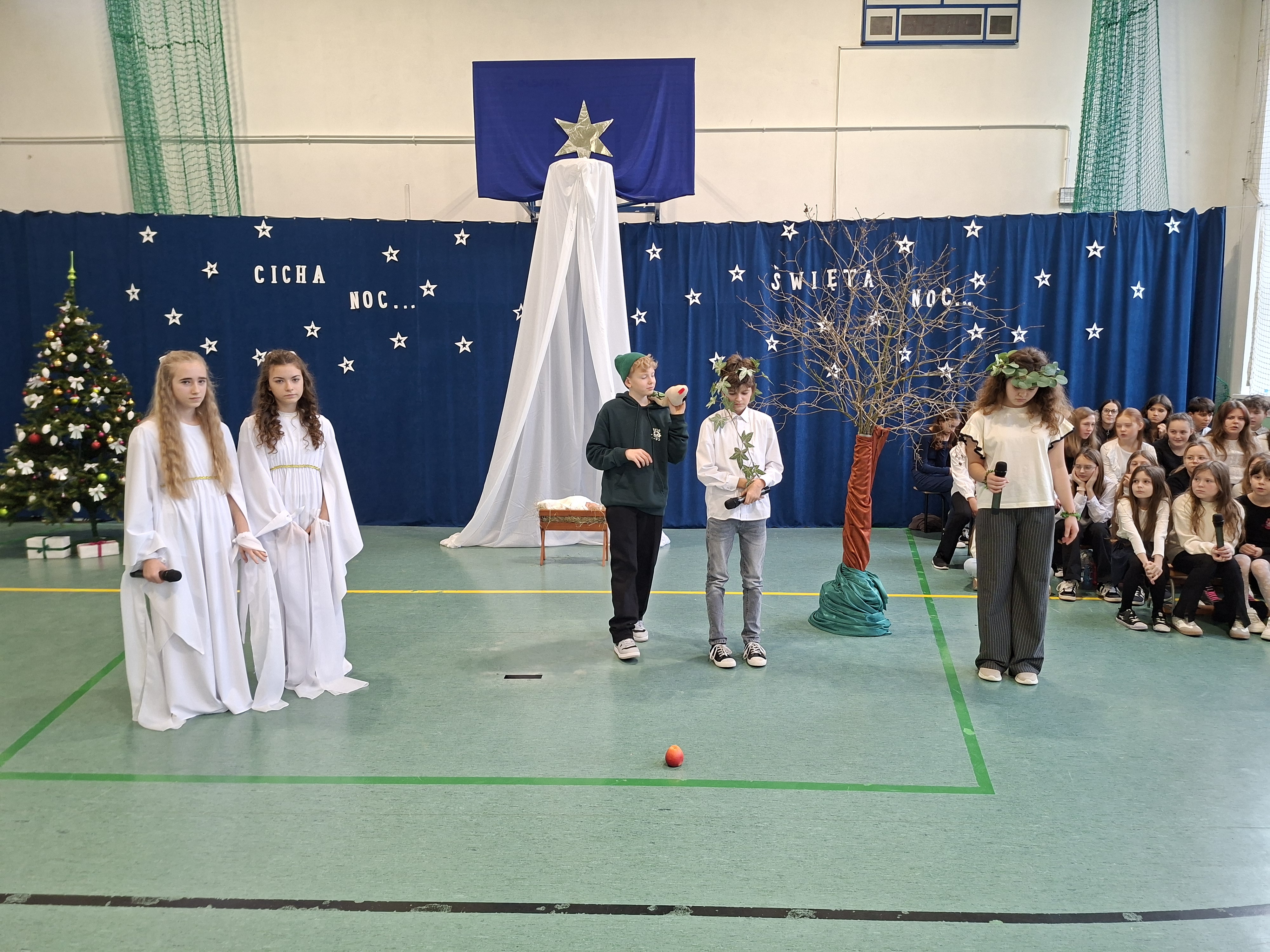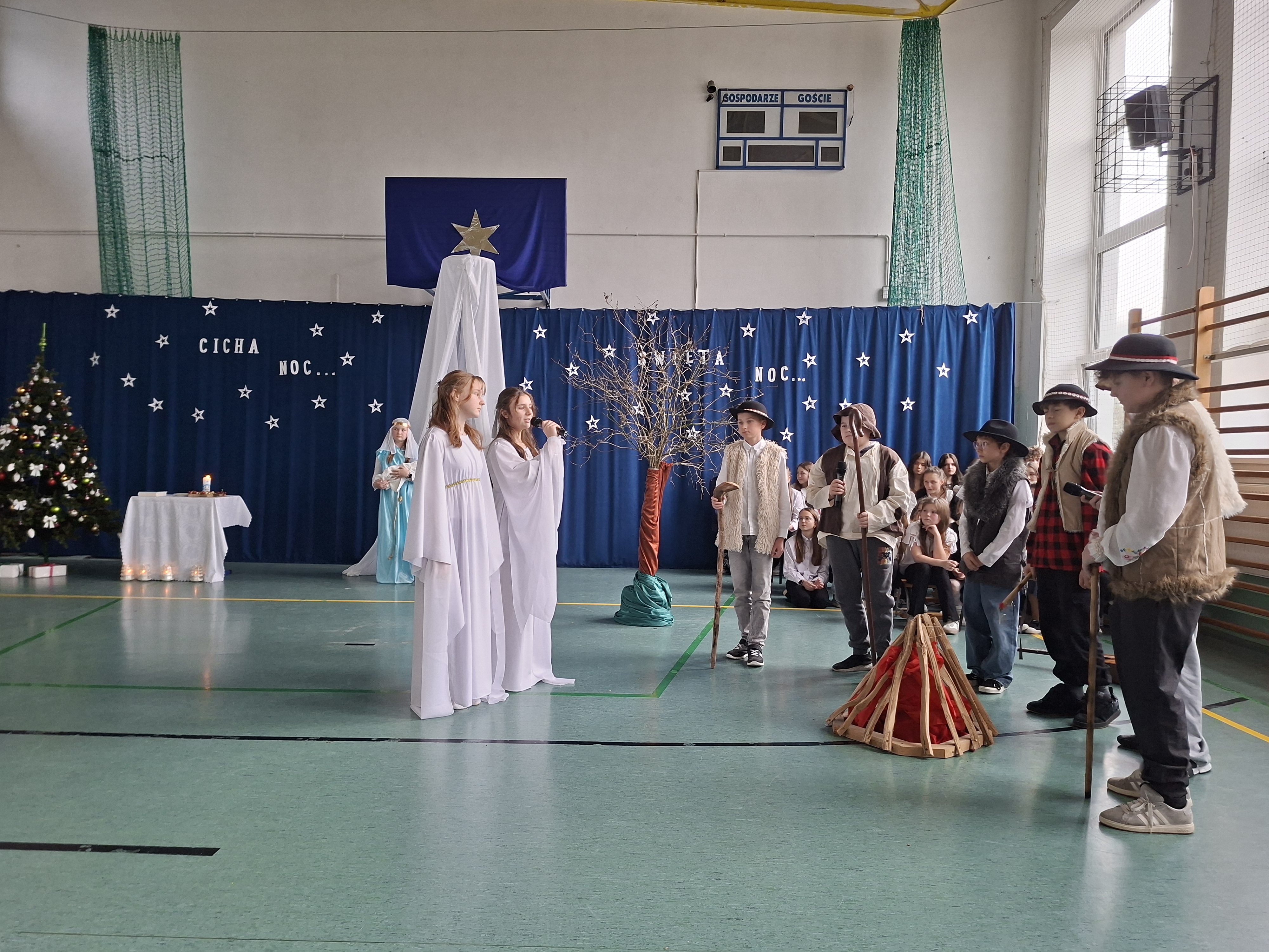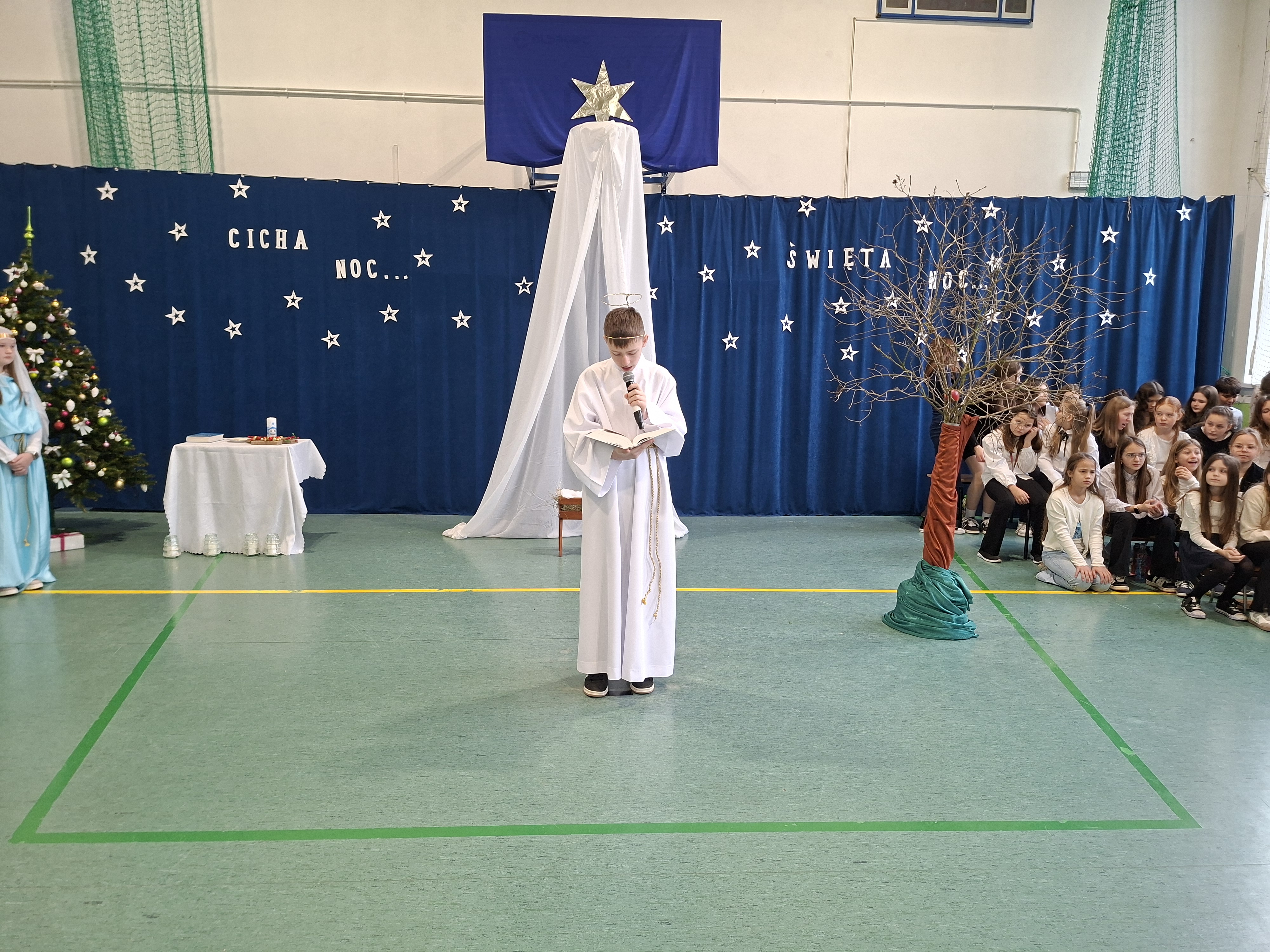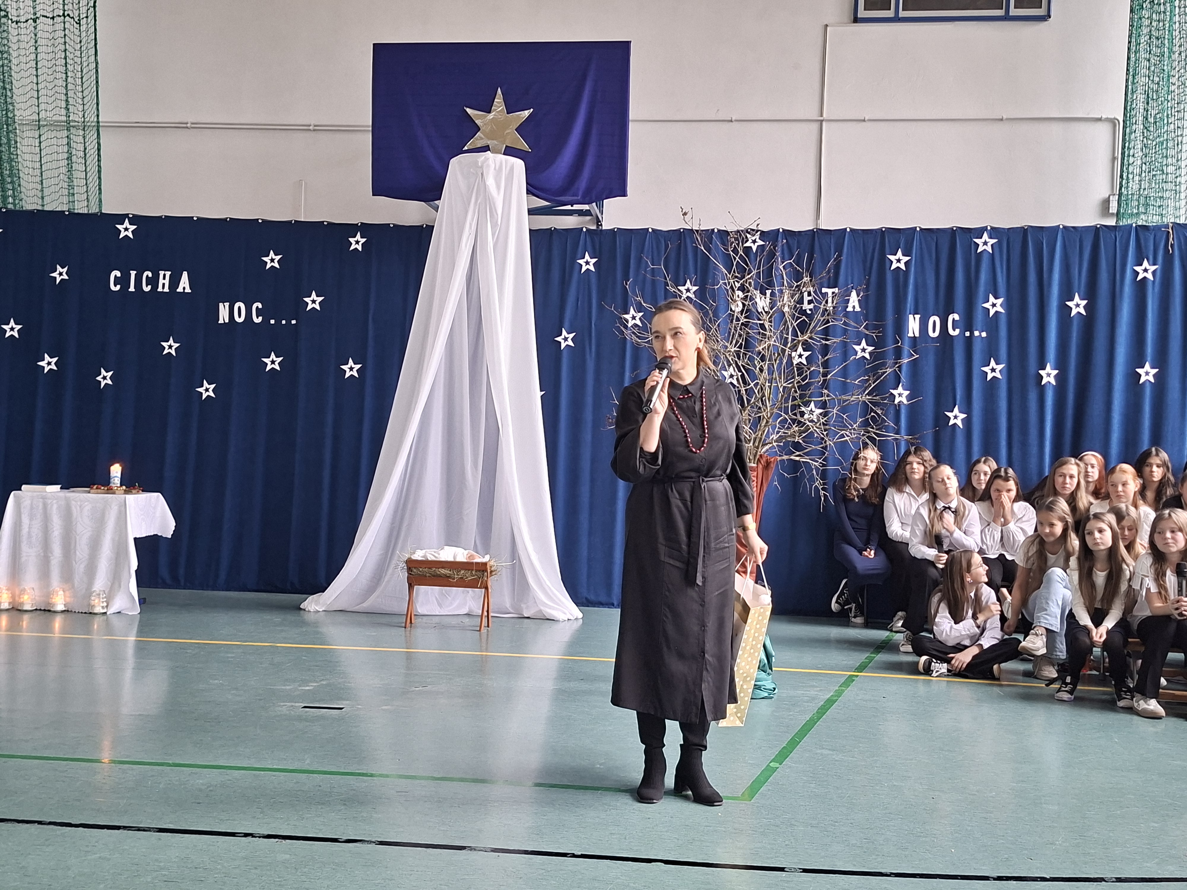 18 grudnia 2025 r. cała społeczność szkolna zebrała się na sali gimnastycznej, by uczestniczyć w szkolnych jasełkach. Czas Bożego Narodzenia to chwila, kiedy wszyscy stają się dla siebie bardziej życzliwi, milsi i odkładają na bok wszelkie spory i waśnie. Uczniowie klas szóstych w specjalnie przygotowanych strojach oraz pięknej scenografii, przedstawili sceny narodzin Chrystusa oraz towarzyszące temu wydarzenia. Jasełka wprowadziły wszystkich w świąteczny nastrój, a młodzi aktorzy swym pięknym występem podbili serca publiczności. Śpiew kolęd w wykonaniu szkolnego chóru pod kierunkiem pana Kamila Kołatka przypomniał o tym, że Święta Bożego Narodzenia są już bardzo blisko. Na koniec świąteczne życzenia złożyła Pani Dyrektor Aleksandra Fornalik oraz zaproszeni goście: Pan Konrad Koc-Wójt Gminy Bełchatów, ks. Krzysztof Petruk i Pani Małgorzata Dobrowolska-Urbaniak, Przewodnicząca Rady Rodziców.