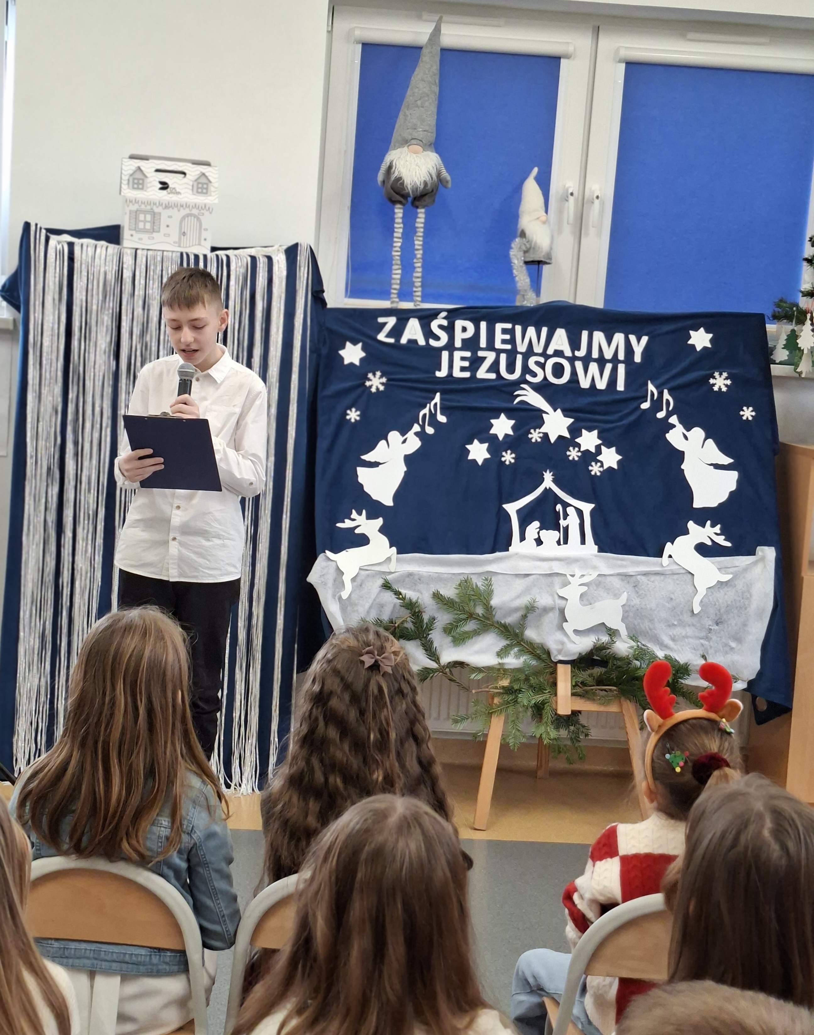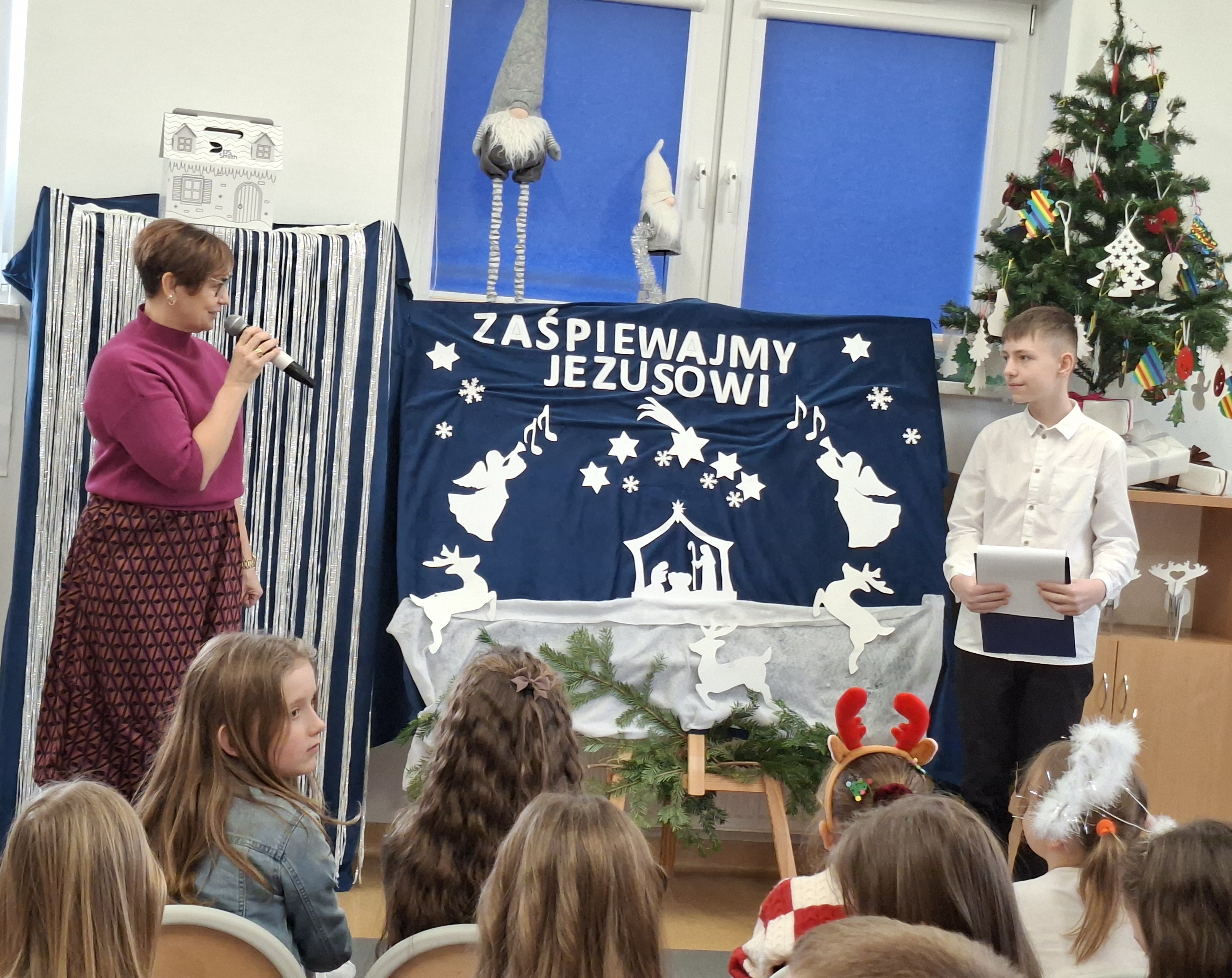 W dniu 16 grudnia 2025 r. odbył się Konkurs Kolęd i Pastorałek ,,Zaśpiewajmy kolędę Jezusowi". W konkursie wzięło udział 22 uczniów. Jury miało bardzo trudne zadanie, aby wyłonić zwycięzców. Poziom był wysoki, a uczniowie w swoje pokazy włożyli cale serce . Występy były oceniane pod kątem ogólnego wrażenia oraz pomysłowości . Atmosfera wprawiła wszystkich w świąteczny nastrój . Ogłoszenie wyników konkursu odbędzie się w czwartek, podczas jasełek szkolnych. Wszystkim uczestnikom bardzo dziękujemy za udział.