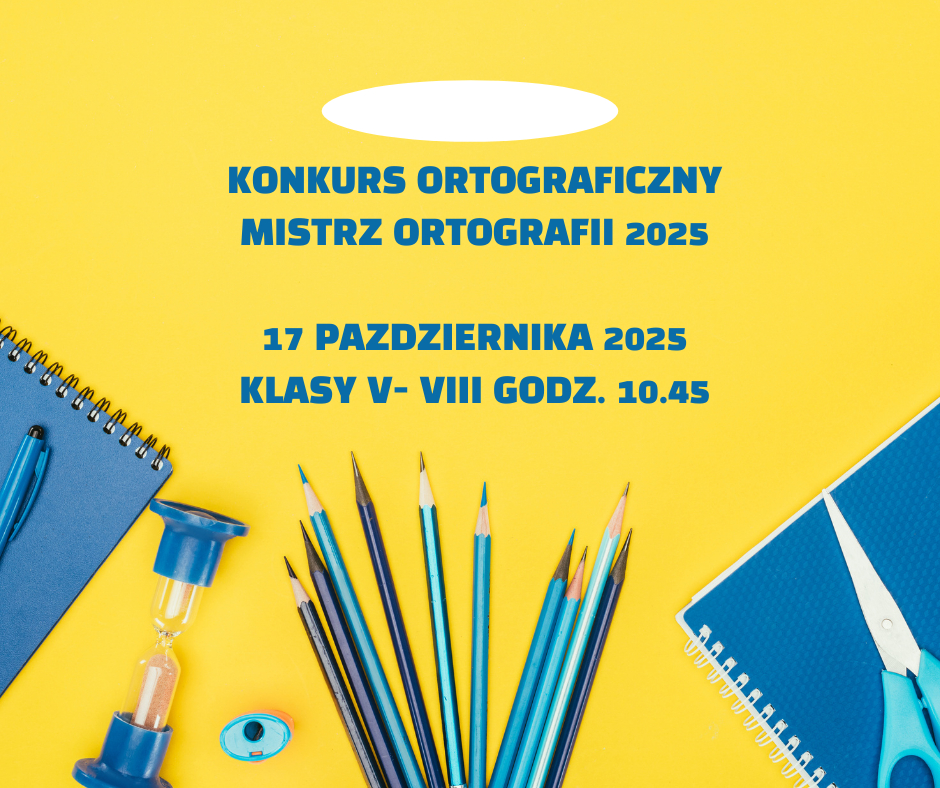 Serdecznie zapraszamy uczniów klas V-VIII do udziału w konkursie (kategoria klas V-VI i klas VII-VIII). Uczniowie otrzymają do rozwiązania test ortograficzny zgodny z podstawą programową języka polskiego. Konkurs odbędzie się 17 października 2025 r. (piątek) o godz. 10.45 w szkolnej świetlicy.