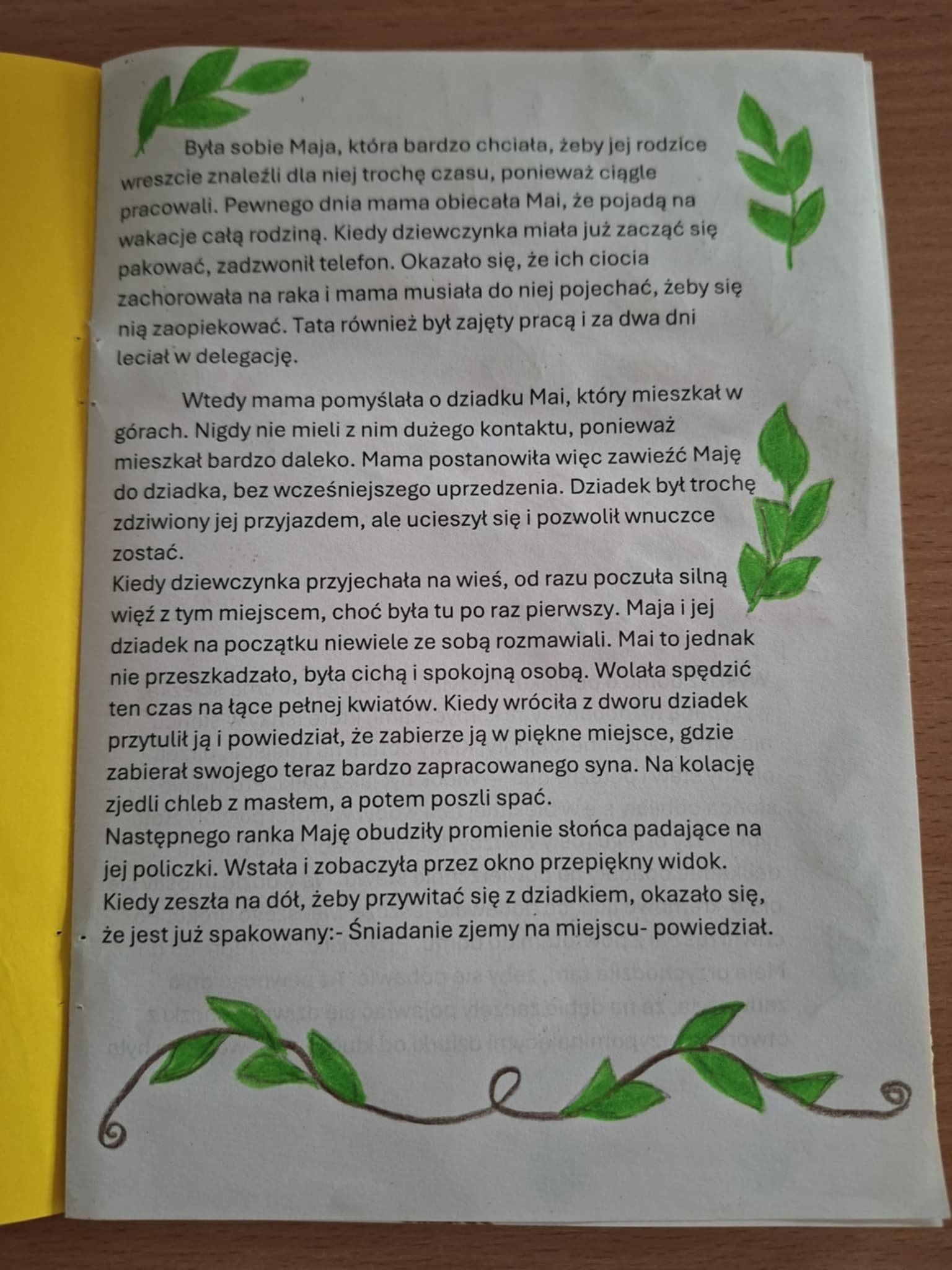 Miło nam zaprezentować pracę uczennicy klasy VIA, Aleksandry Lewandowskiej, przygotowaną na Powiatowy Konkurs Literacki ,,Bajka dla siostrzyczki i braciszka" organizowany przez bibliotekę w Bełchatowie. Ola napisała baśń pt.: ,, Tajemnicze drzewo Mai". Utwór powstał pod kierunkiem polonistki-pani Anetty Sobieszek. Życzymy powodzenia!