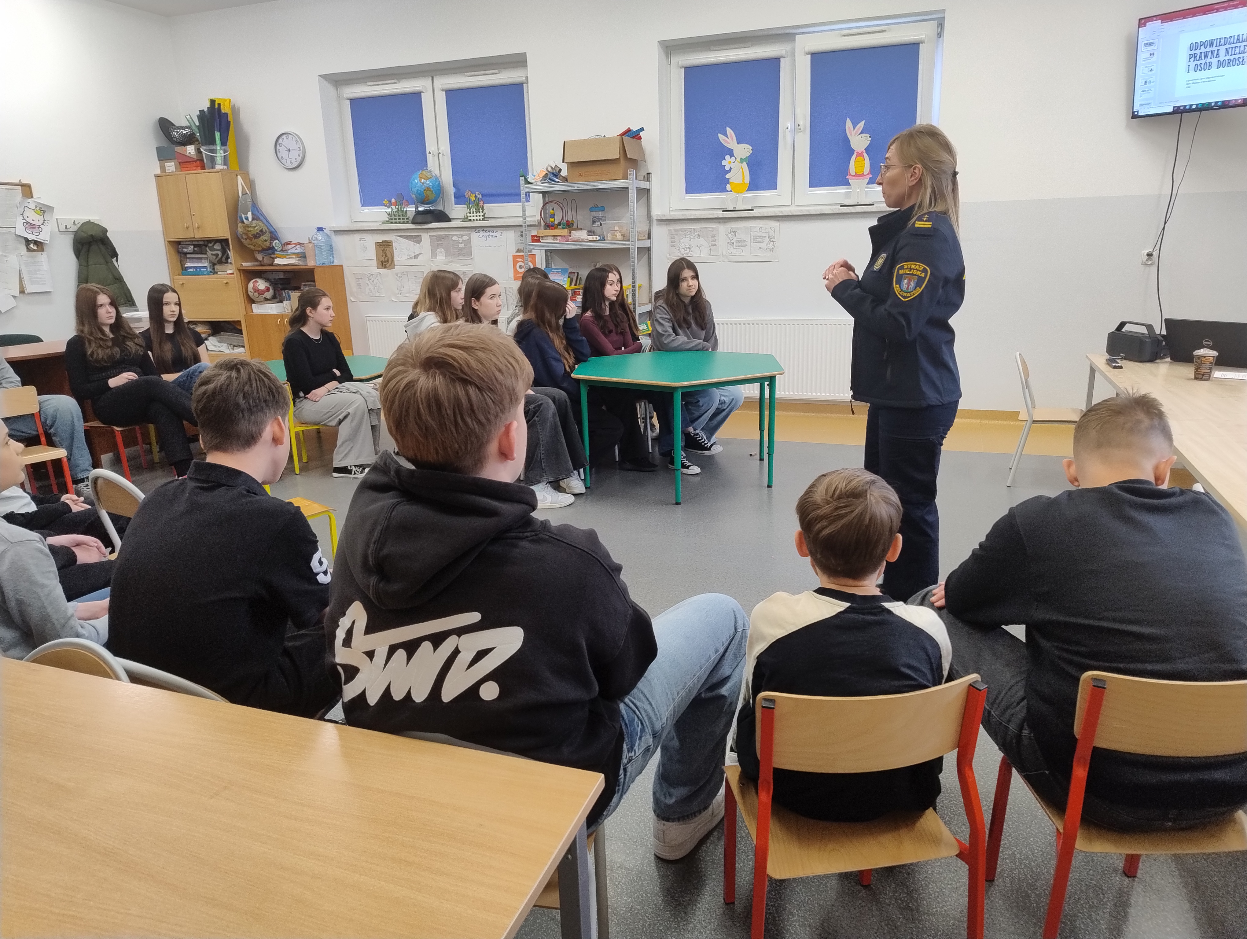 W dniu 9 kwietnia 2026 w naszej szkole odbyło się spotkanie uczniów ze Strażą Miejską. Celem wizyty było zwiększenie świadomości dzieci i młodzieży w zakresie bezpieczeństwa, odpowiedzialności oraz właściwych postaw społecznych.