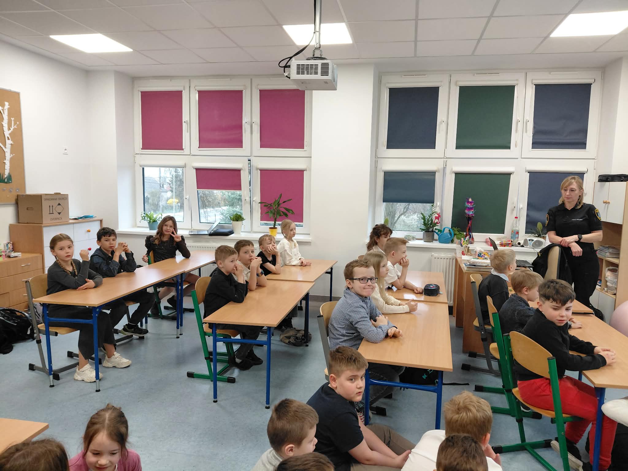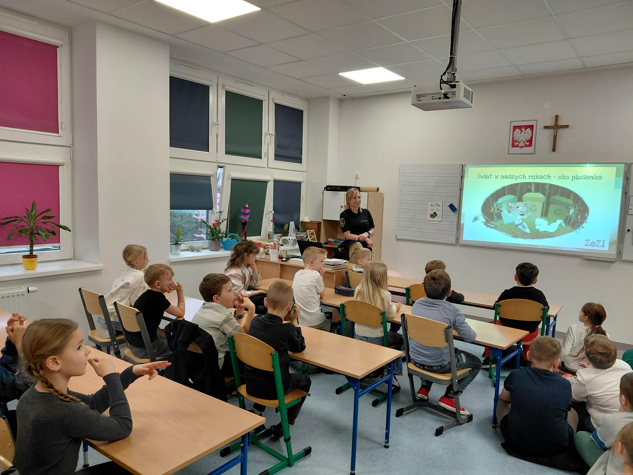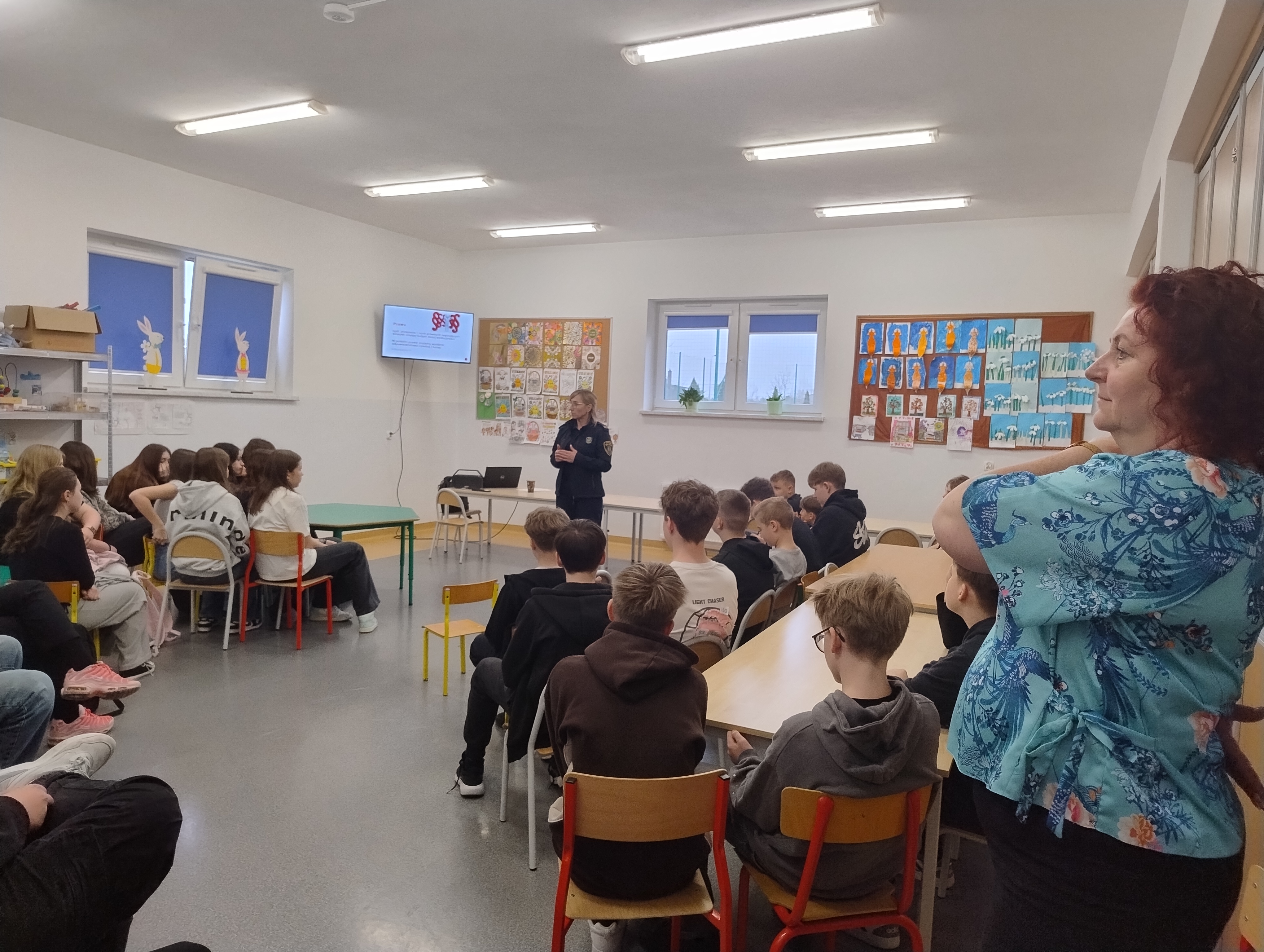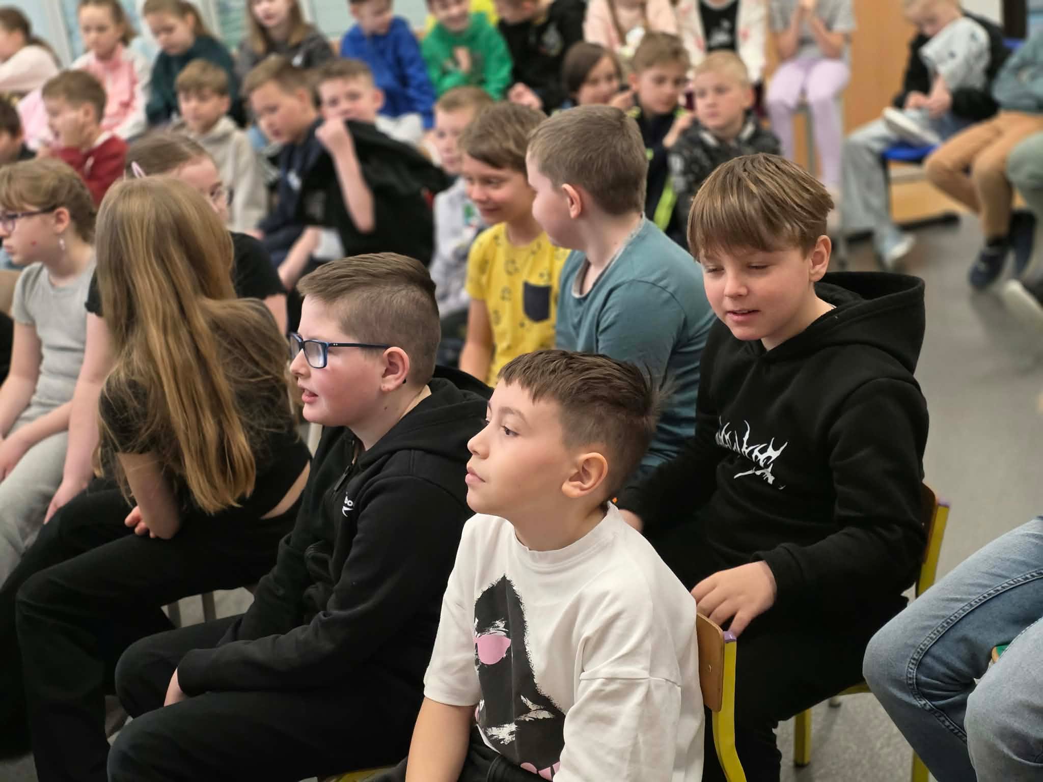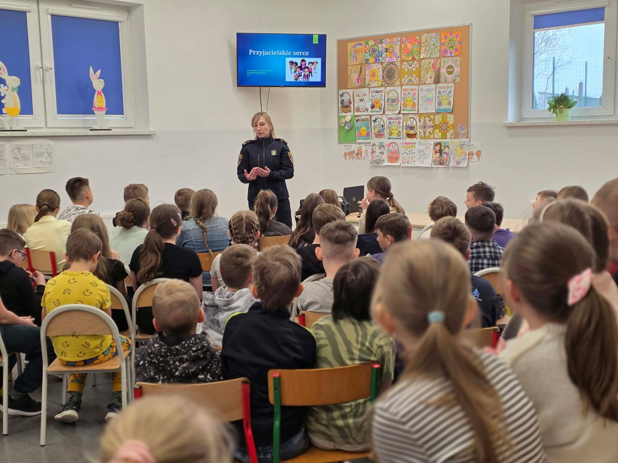 Dzieci dowiedziały się, jak zachowywać ostrożność wobec nieznajomych oraz jak bezpiecznie reagować w kontaktach ze zwierzętami. Klasy 1a, 1b - „Grzeczne dzieci segregują i wykorzystują śmieci”. Uczniowie poznali zasady segregacji odpadów oraz znaczenie dbania o środowisko naturalne. Klasy 2a, 2b, 3a, 3b - „Przyjacielskie serce - jak budować tolerancję i zrozumienie w grupie”. Podczas zajęć poruszono temat wzajemnego szacunku, empatii i współpracy w grupie rówieśniczej. Uczniowie rozwijali umiejętności komunikacyjne oraz uczyli się rozwiązywania konfliktów w sposób pokojowy. Klasy