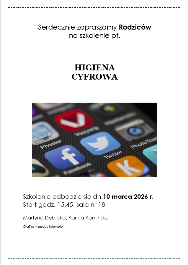 Serdecznie zapraszamy Rodziców na szkolenie ,,Higiena cyfrowa"- 10 marca 2026 r. o godz. 15.45