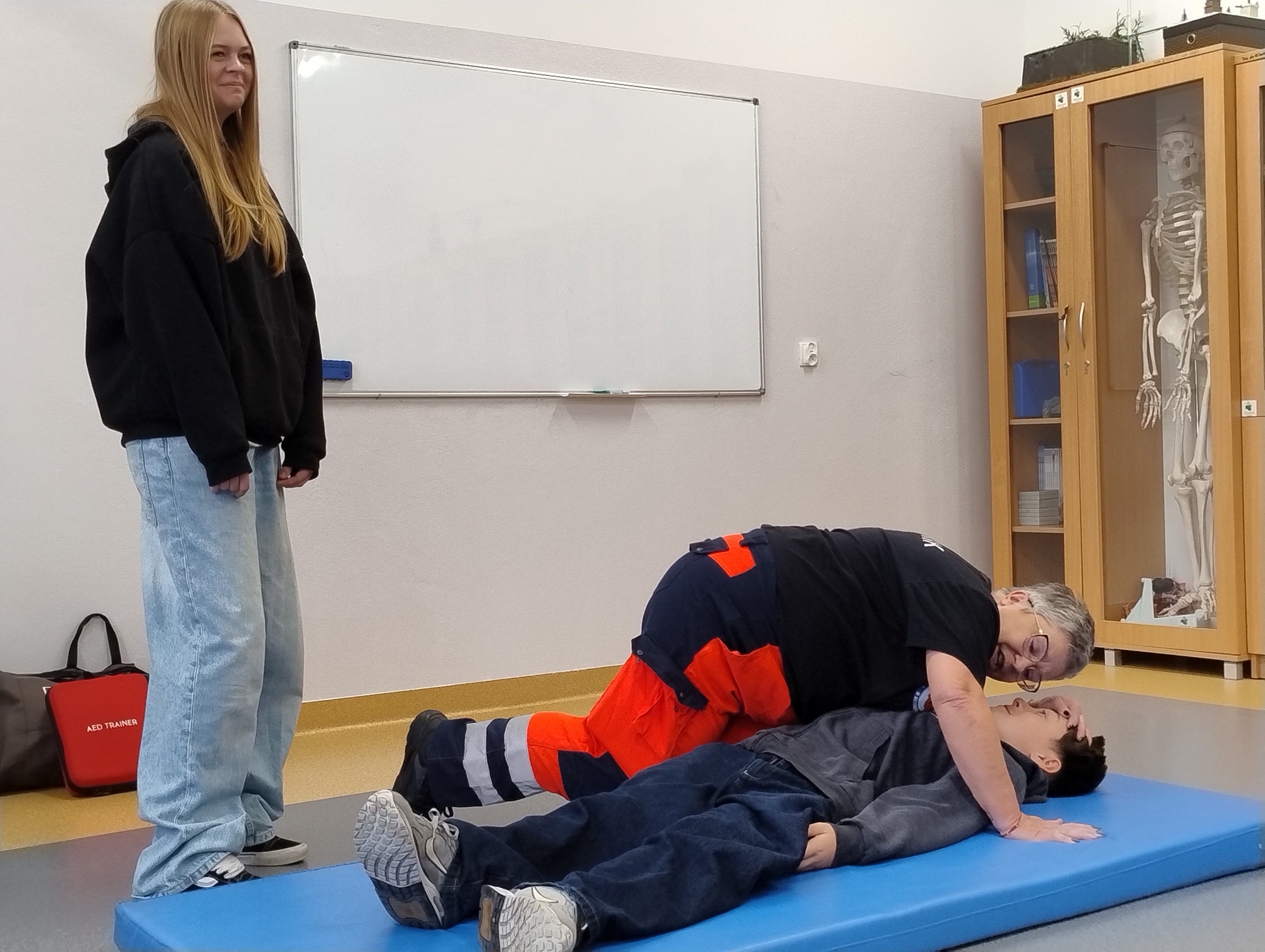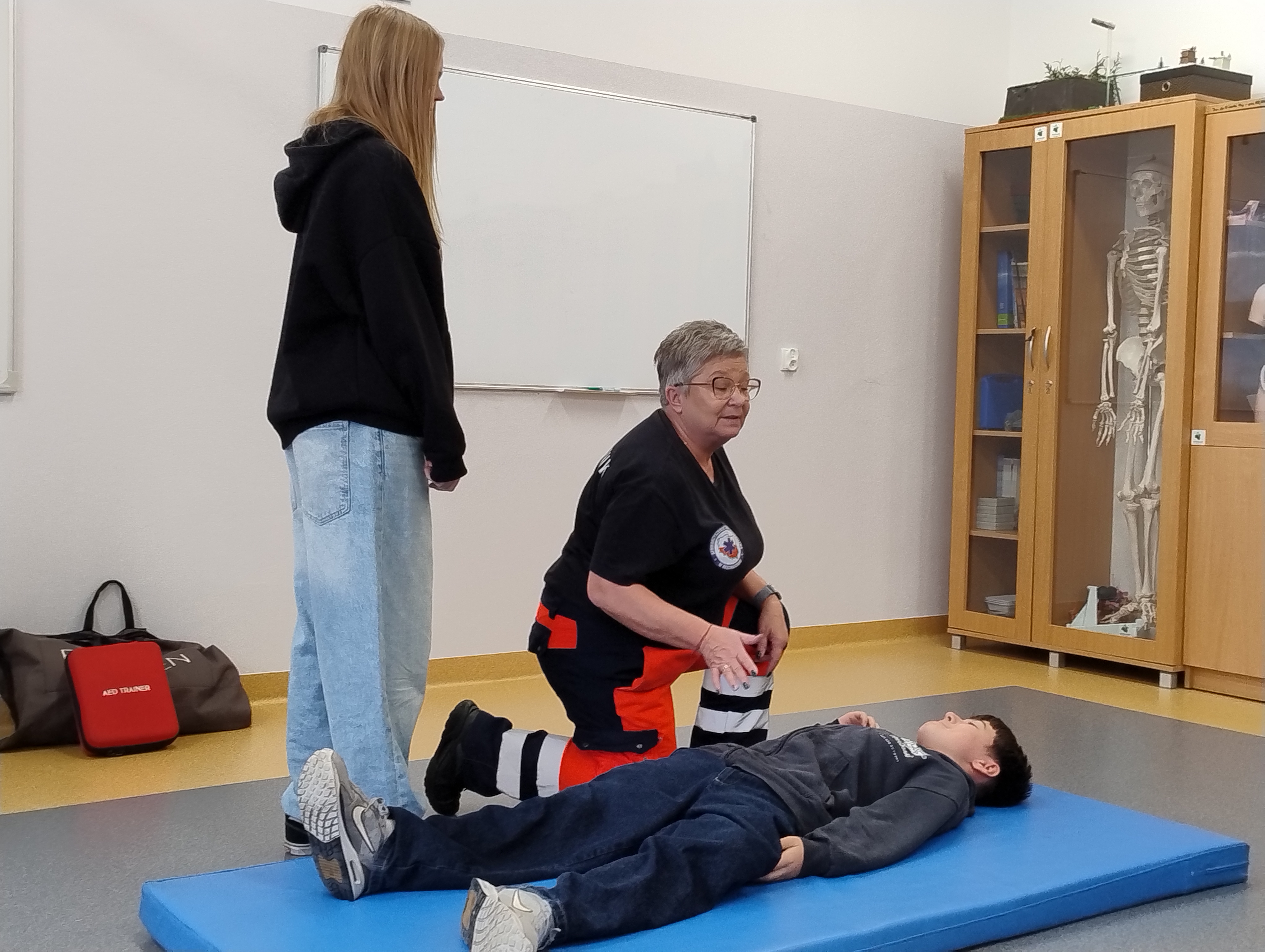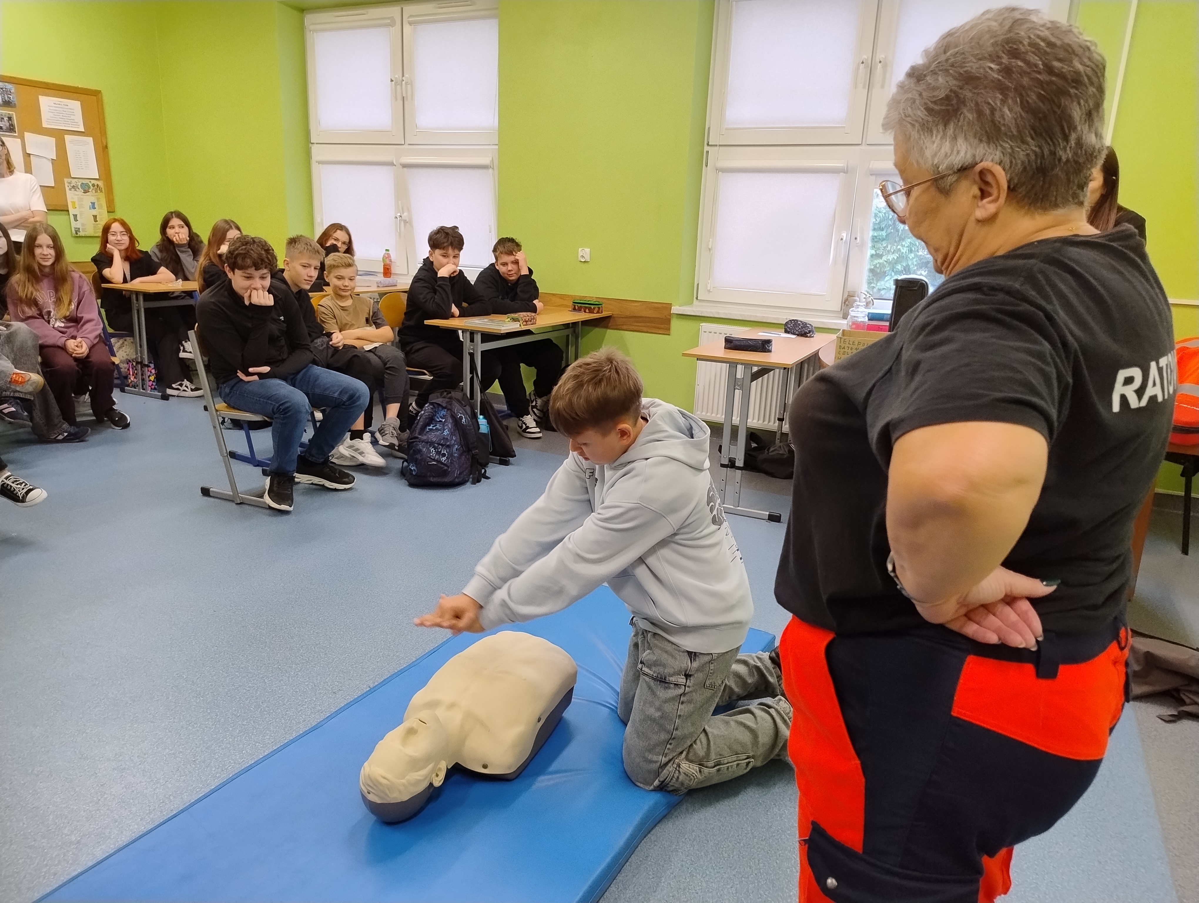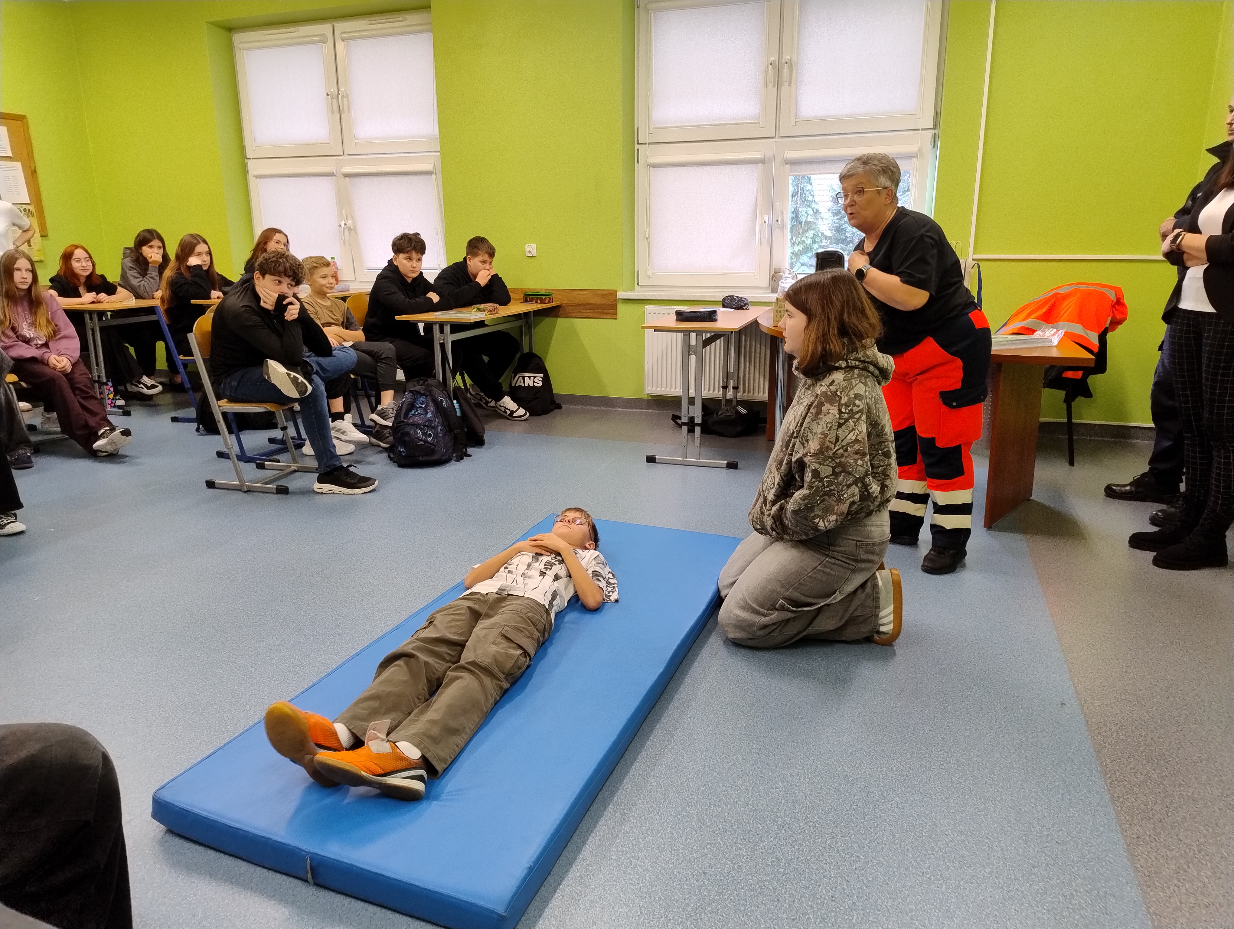 w Bełchatowie oraz ratownikiem medycznym ze Stowarzyszenia „Sztabu Ratownictwa”. Zajęcia poprowadziły p. Małgorzata Ratajczyk oraz p. Izabela Stasiak. Spotkanie z uczniami naszej szkoły miało charakter warsztatowy. Uczniowie uczyli się praktycznych umiejętności ratowania życia w nagłych wypadkach, obejmujących m.in. ocenę sytuacji, wezwanie pomocy, resuscytację krążeniowo-oddechową, jak również omówione zostały skutki uzależnienia od alkoholu, jego negatywny wpływ na organizm, w tym ryzyka zaburzeń rozwojowych u młodych ludzi. Na zakończenie zajęć, uczniowie otrzymali od asp. Marcina Agata opaski odblaskowe.