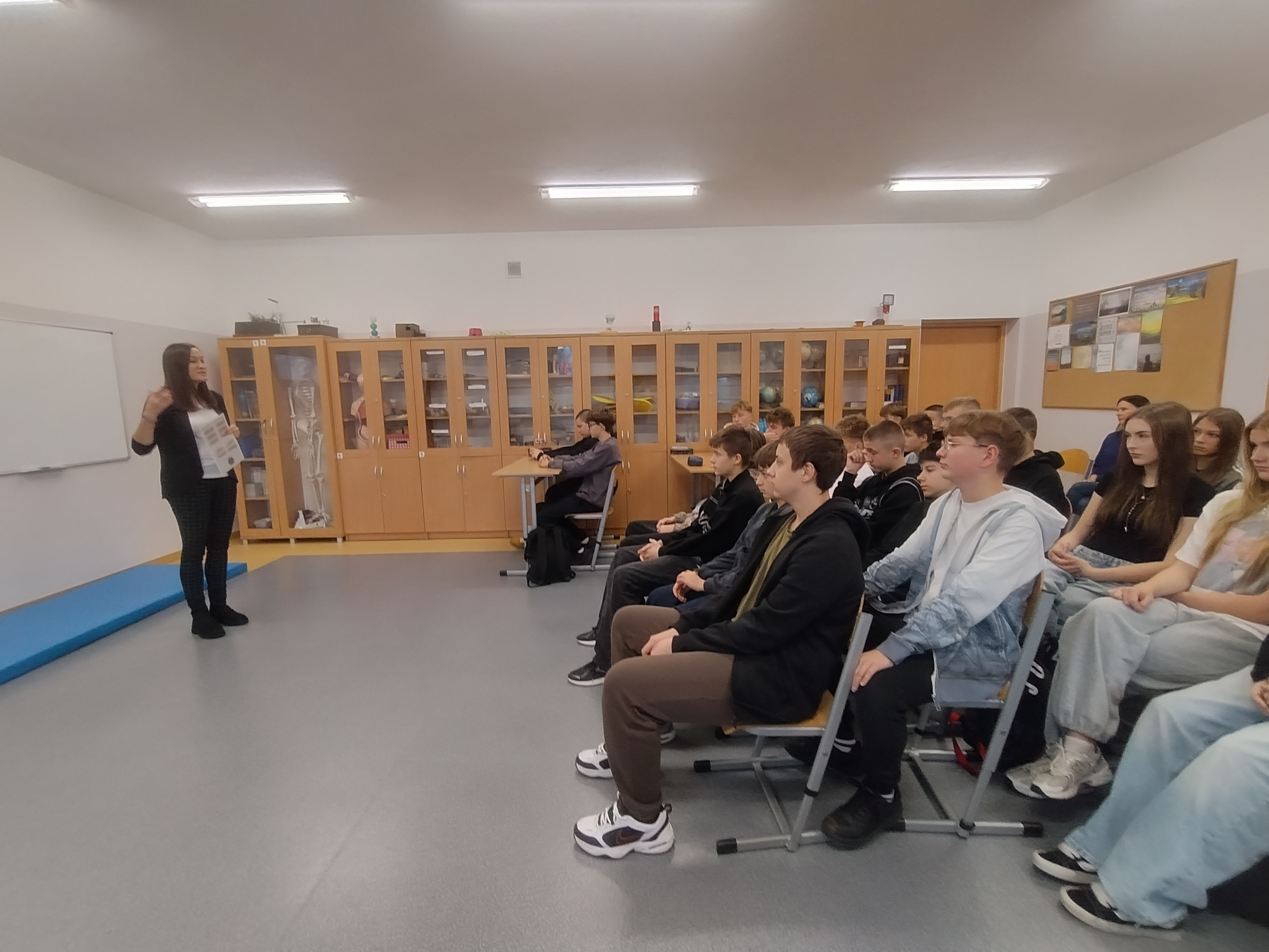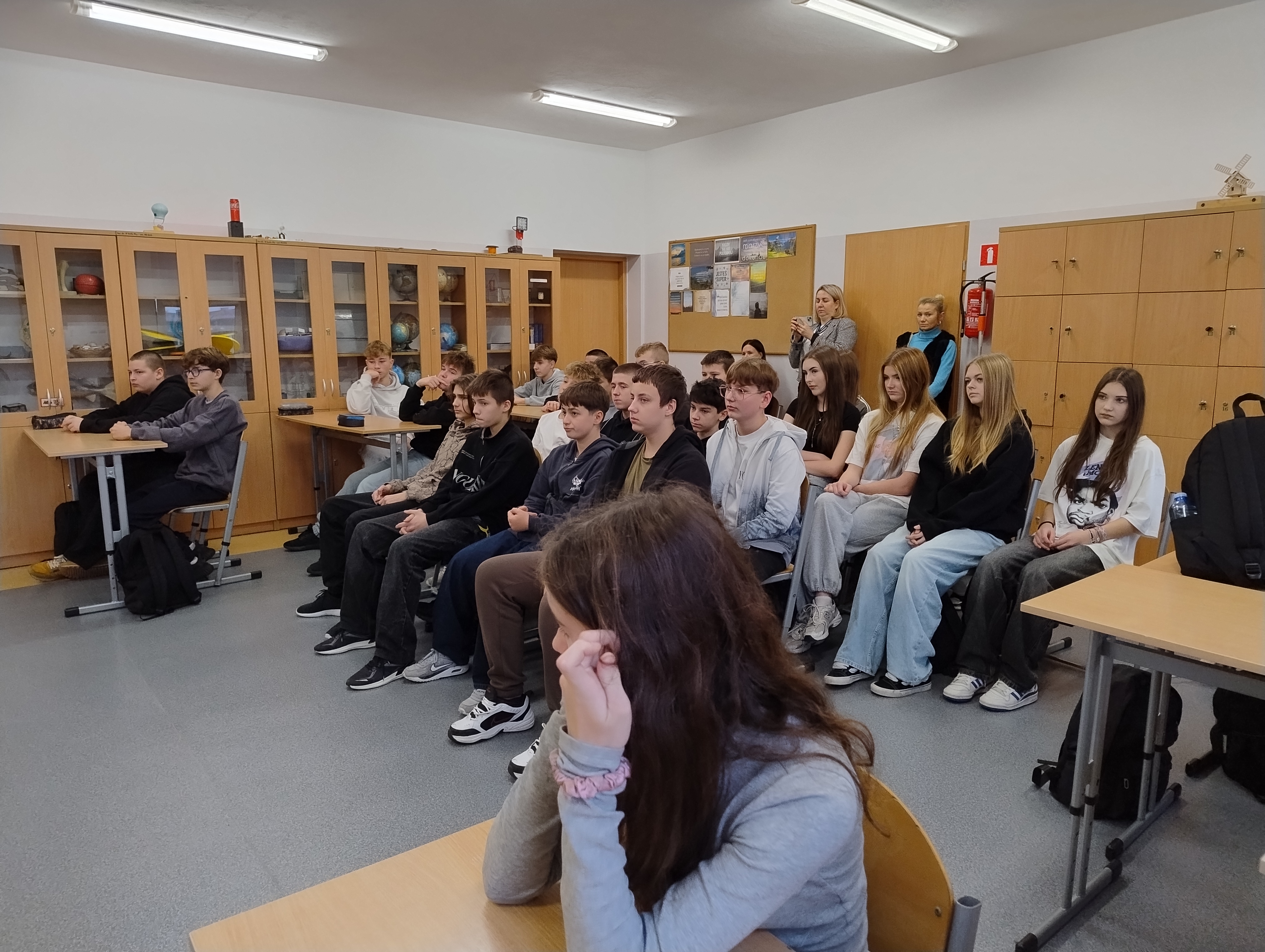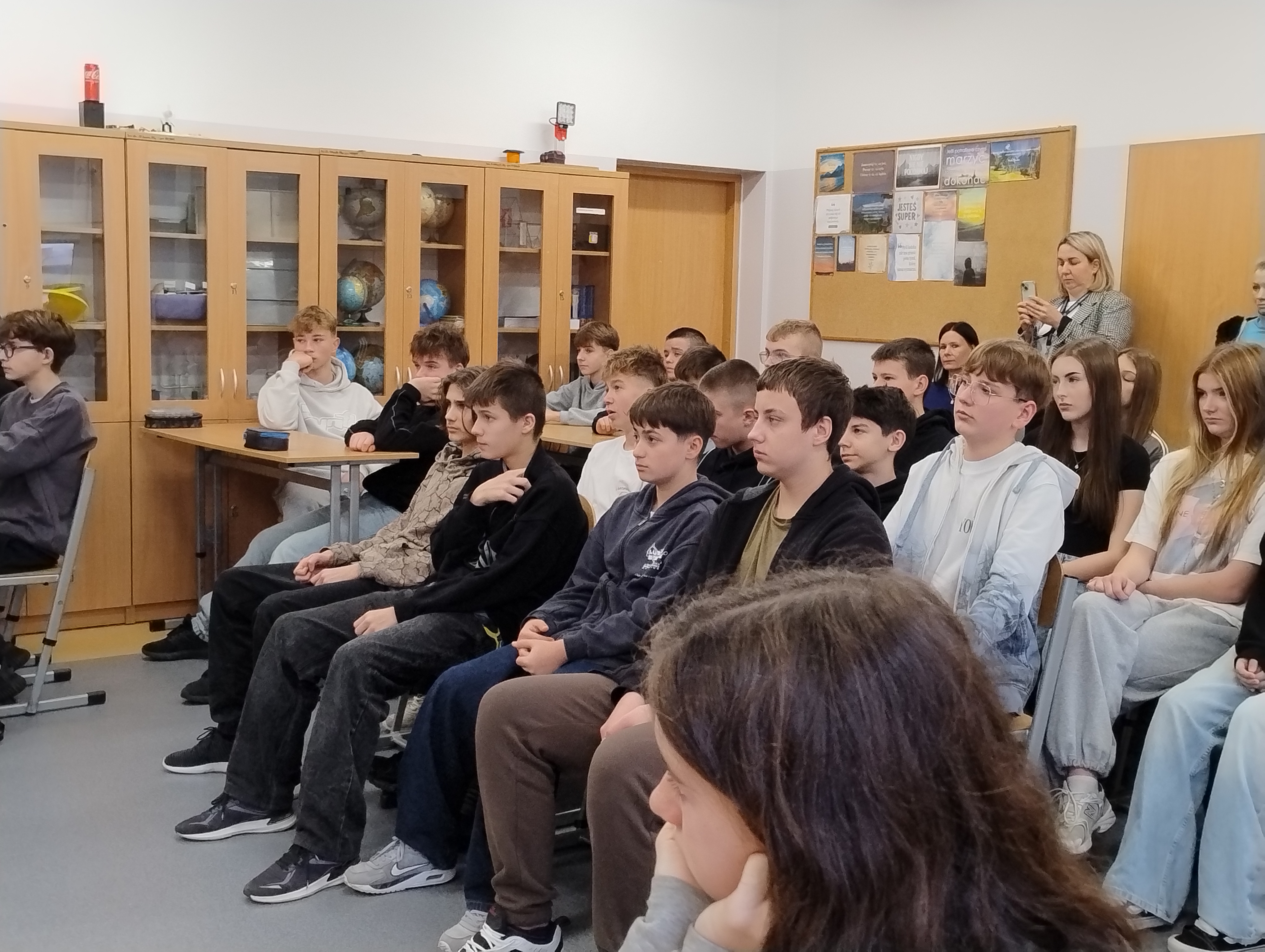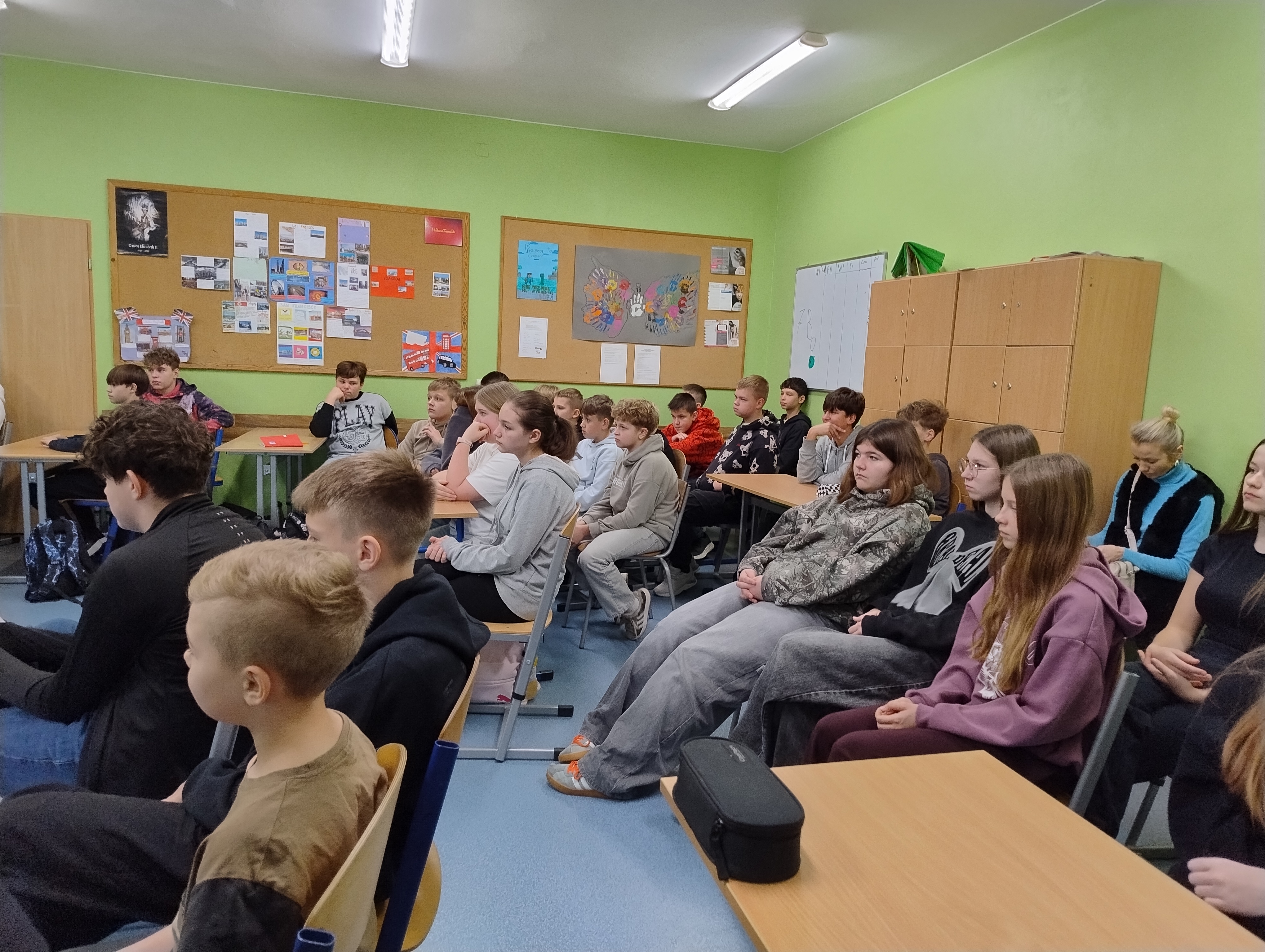 W dniu 12 listopada 2025 uczniowie klas 7 i 8 uczestniczyli w spotkaniu z pracownikami Zespołu ds. Profilaktyki Społecznej i Patologii Wydziału Prewencji Komendy Powiatowej