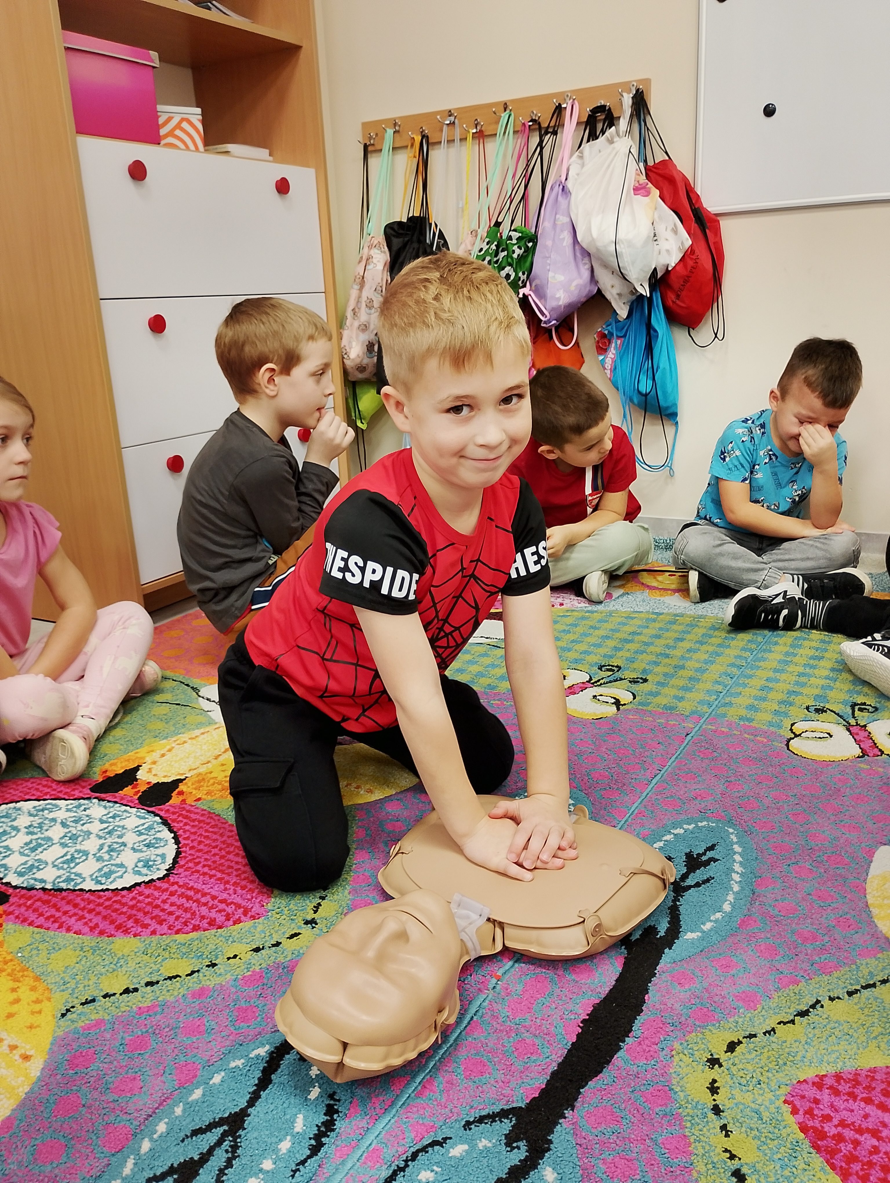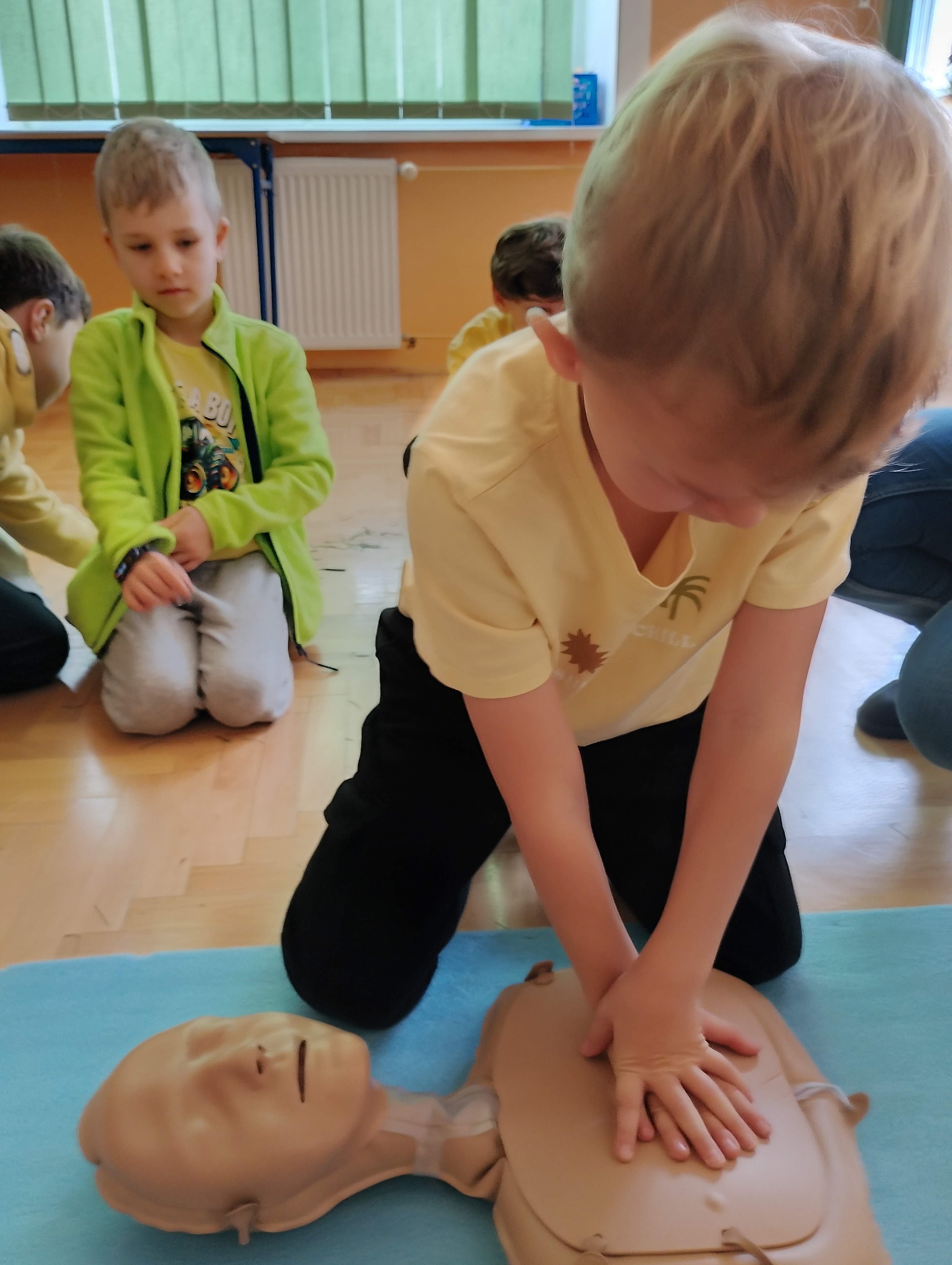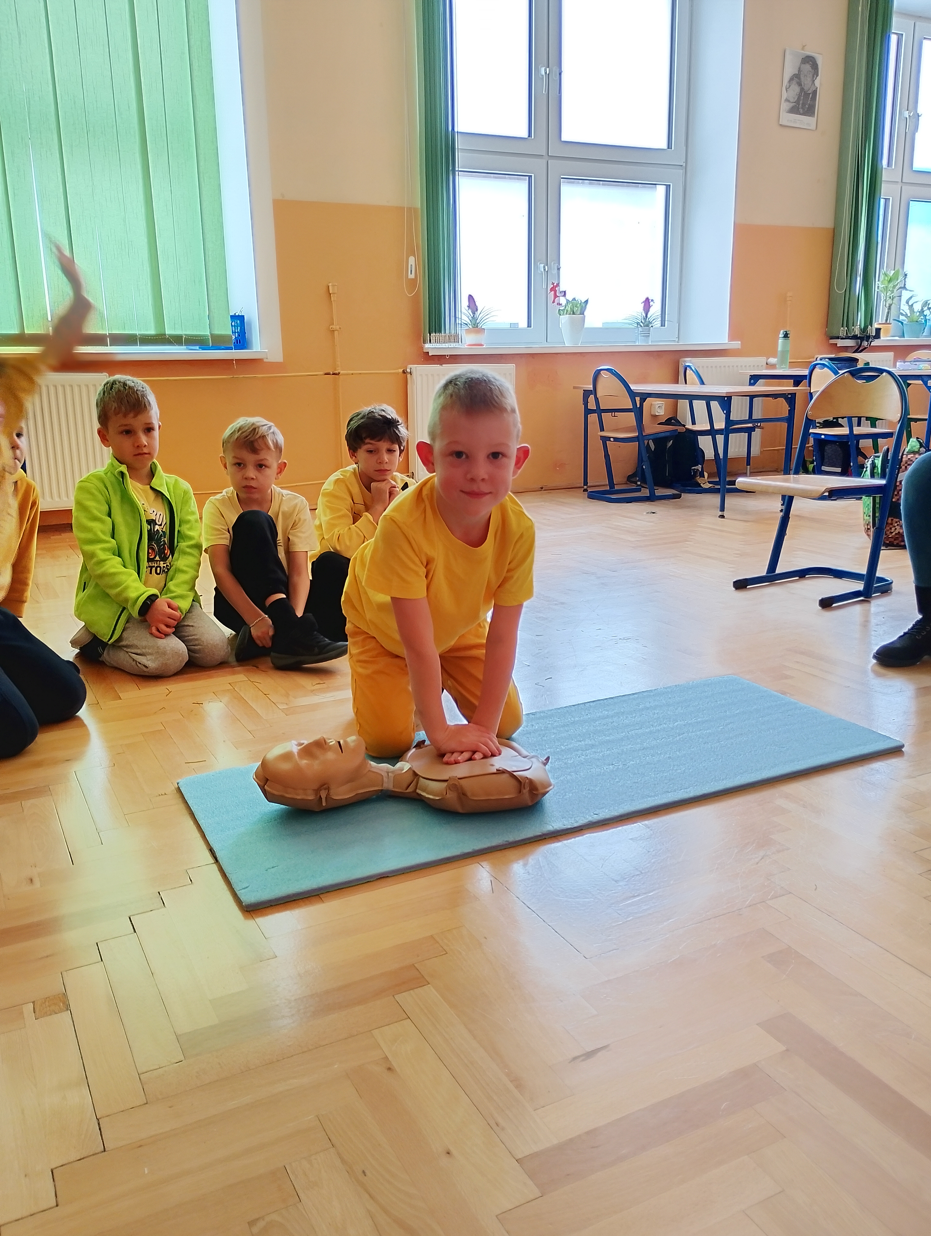 Z okazji „Tygodnia Życzliwości" w naszej szkole najmłodsi uczniowie wzięli udział w zajęciach poświęconych udzielaniu pierwszej pomocy. Dzieci dowiedziały się, jak reagować, gdy ktoś straci przytomność, kogo powiadomić i jakie kroki podjąć, aby zadbać o bezpieczeństwo swoje i innych. Brawo dla naszych małych ratowników! ❤️?