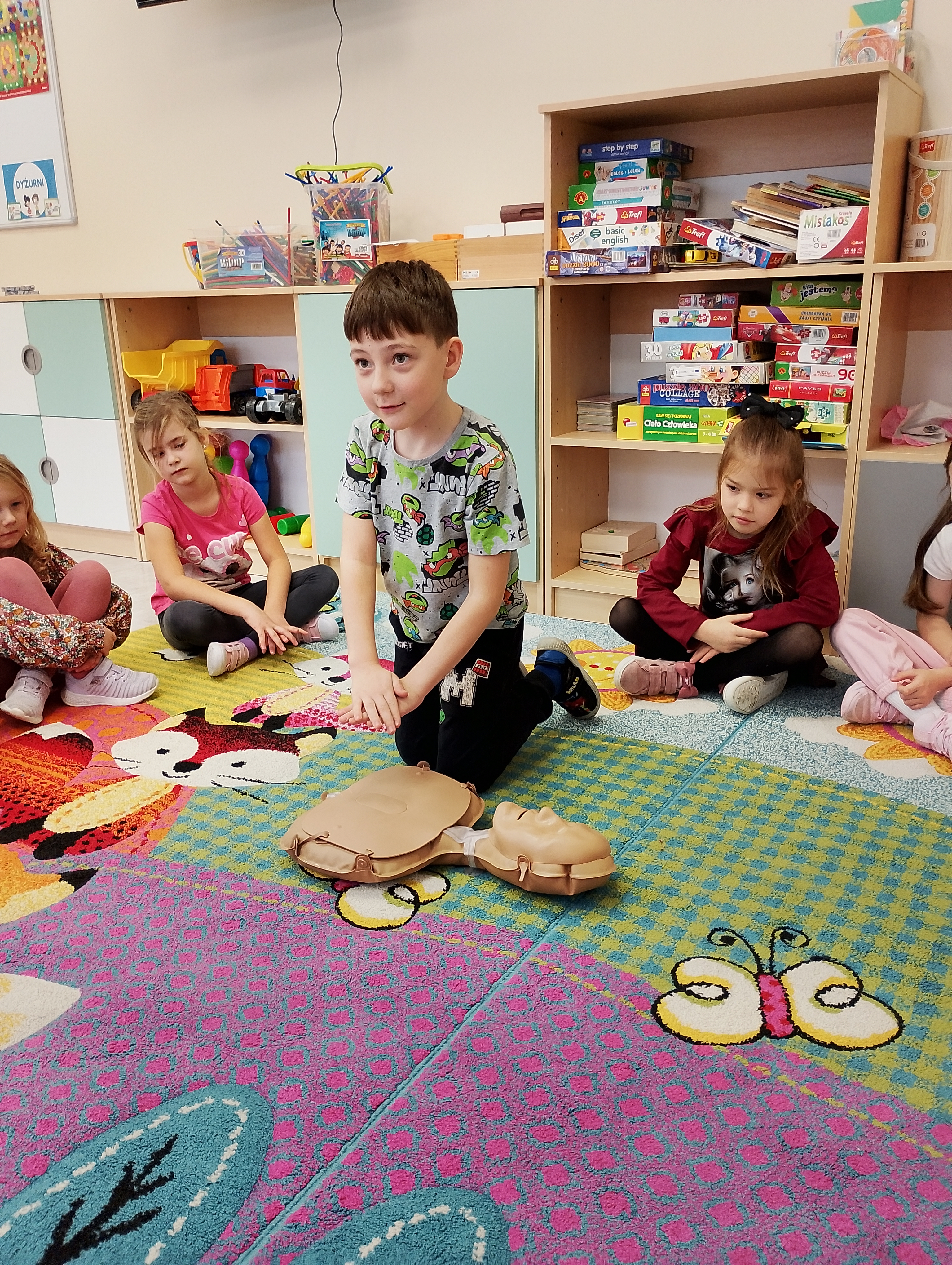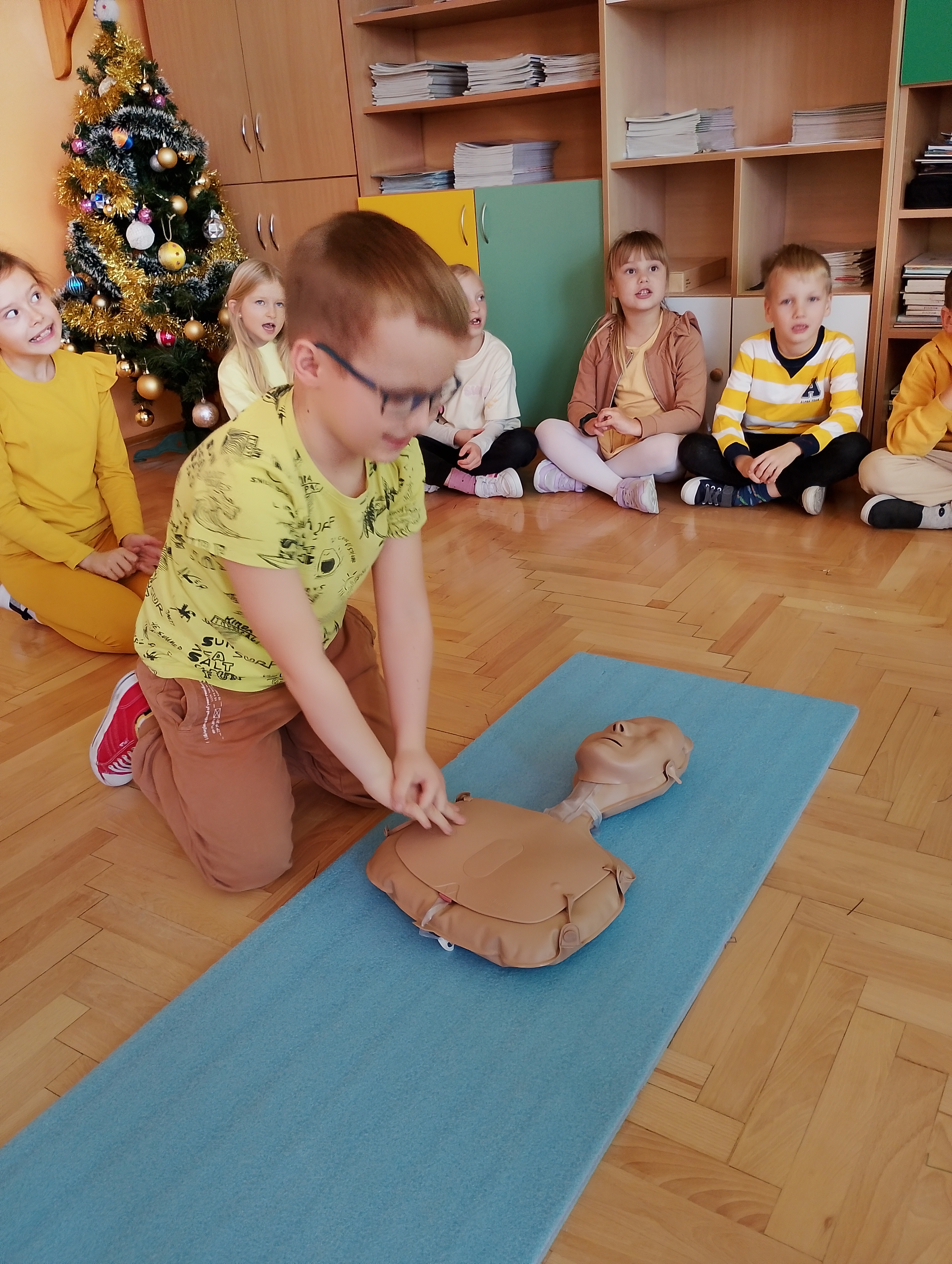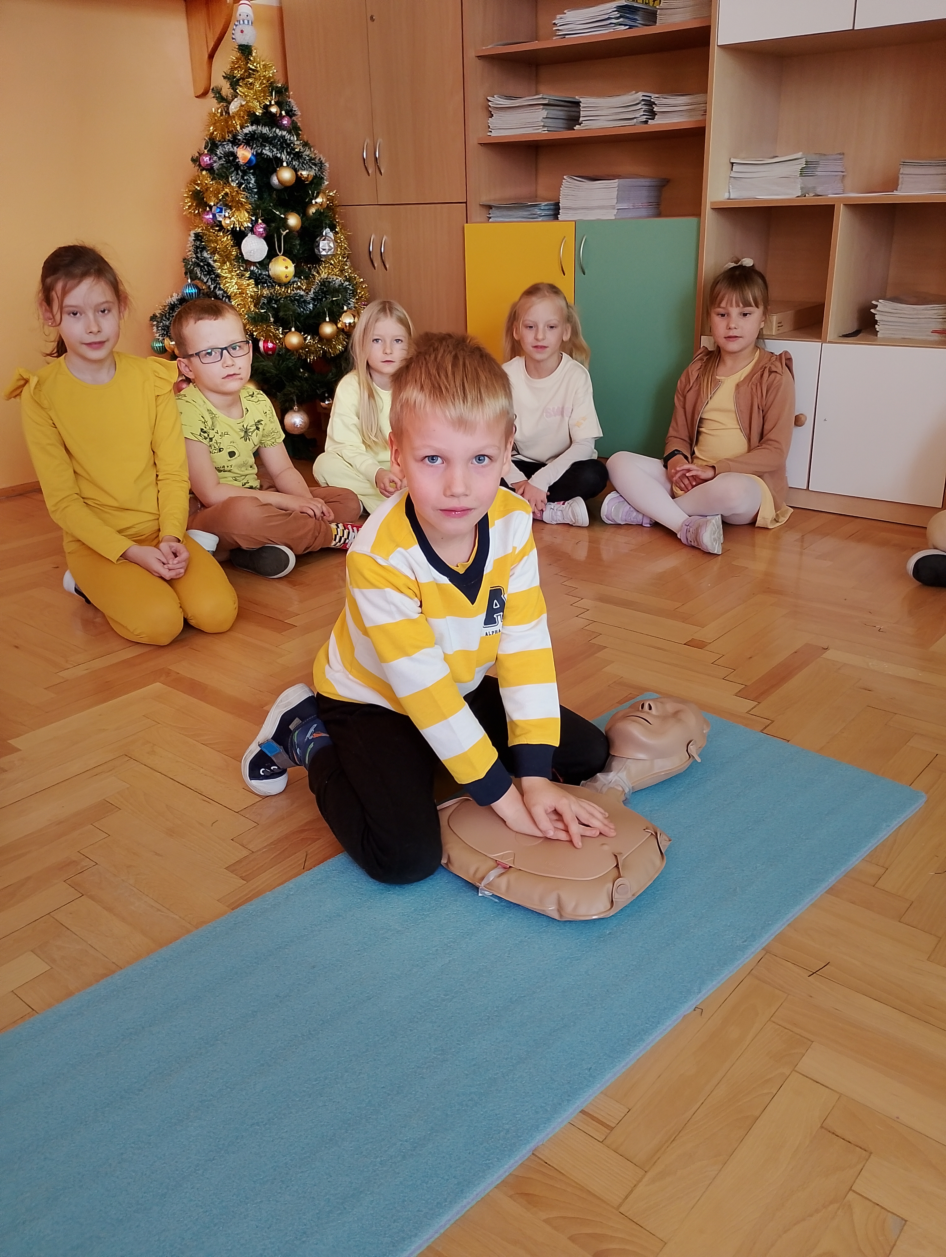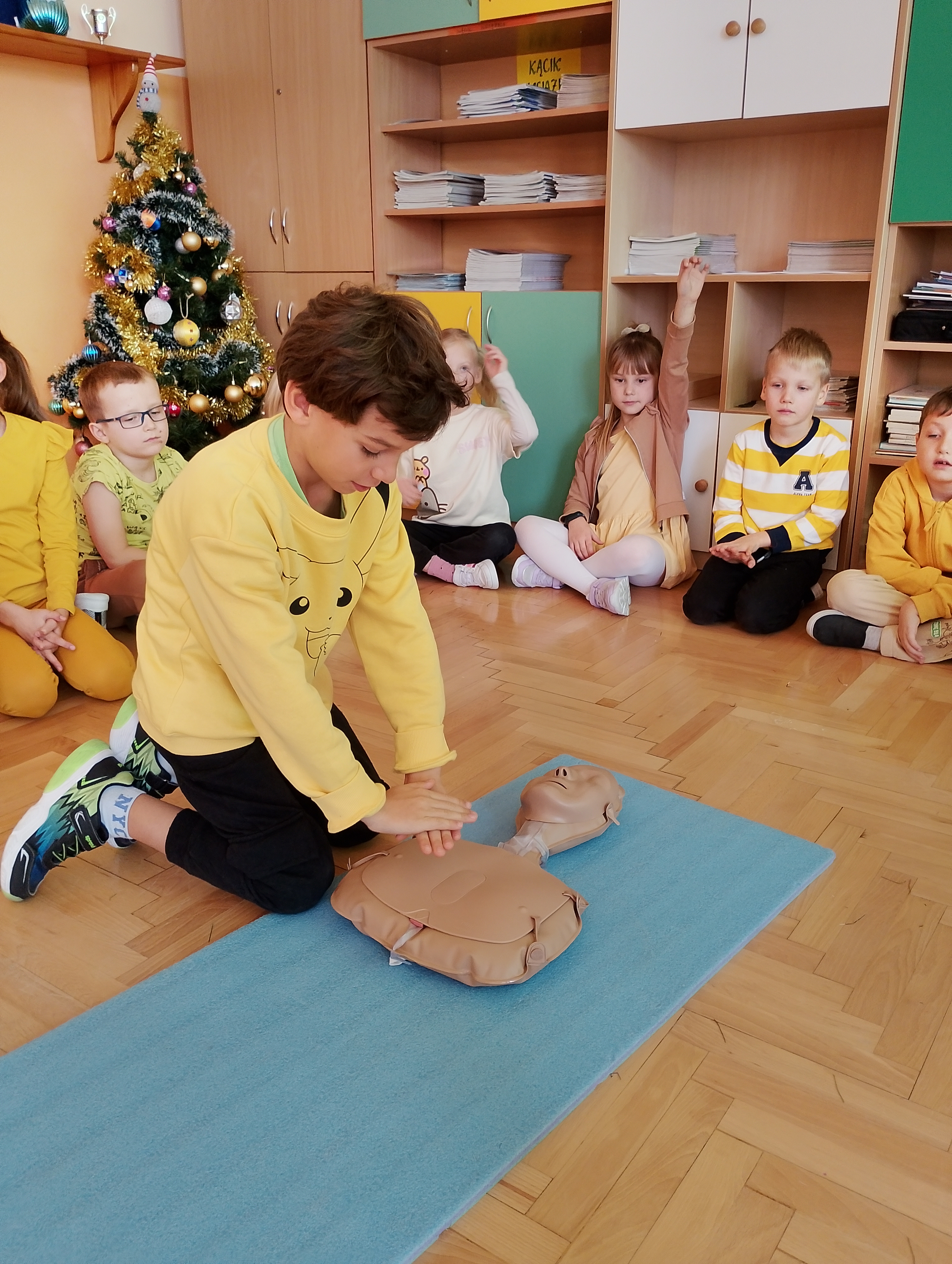 Z okazji „Tygodnia Życzliwości" w naszej szkole najmłodsi uczniowie wzięli udział w zajęciach poświęconych udzielaniu pierwszej pomocy. Dzieci dowiedziały się, jak reagować, gdy ktoś straci przytomność, kogo powiadomić i jakie kroki podjąć, aby zadbać o bezpieczeństwo swoje i innych. Brawo dla naszych małych ratowników! ❤️?