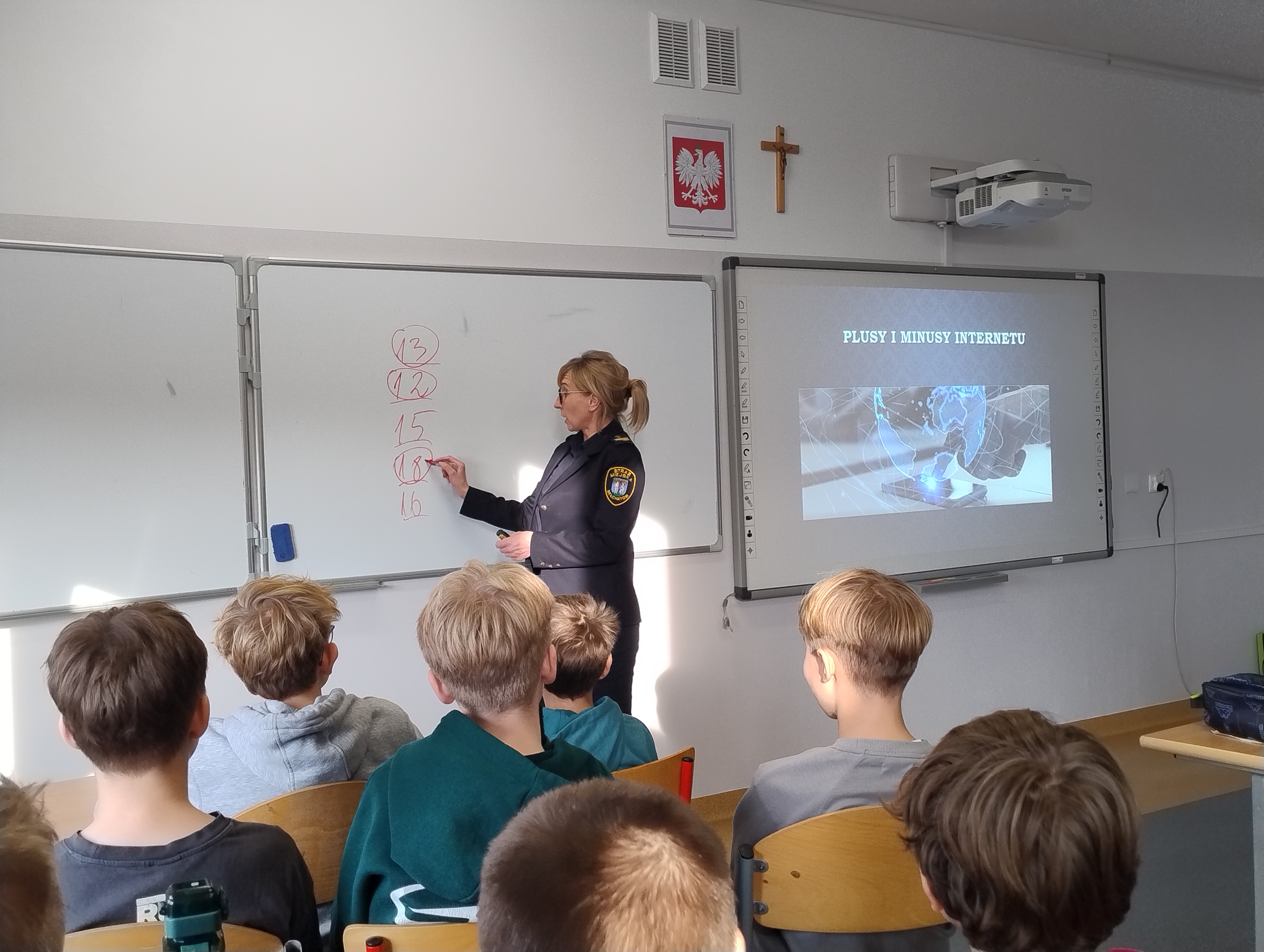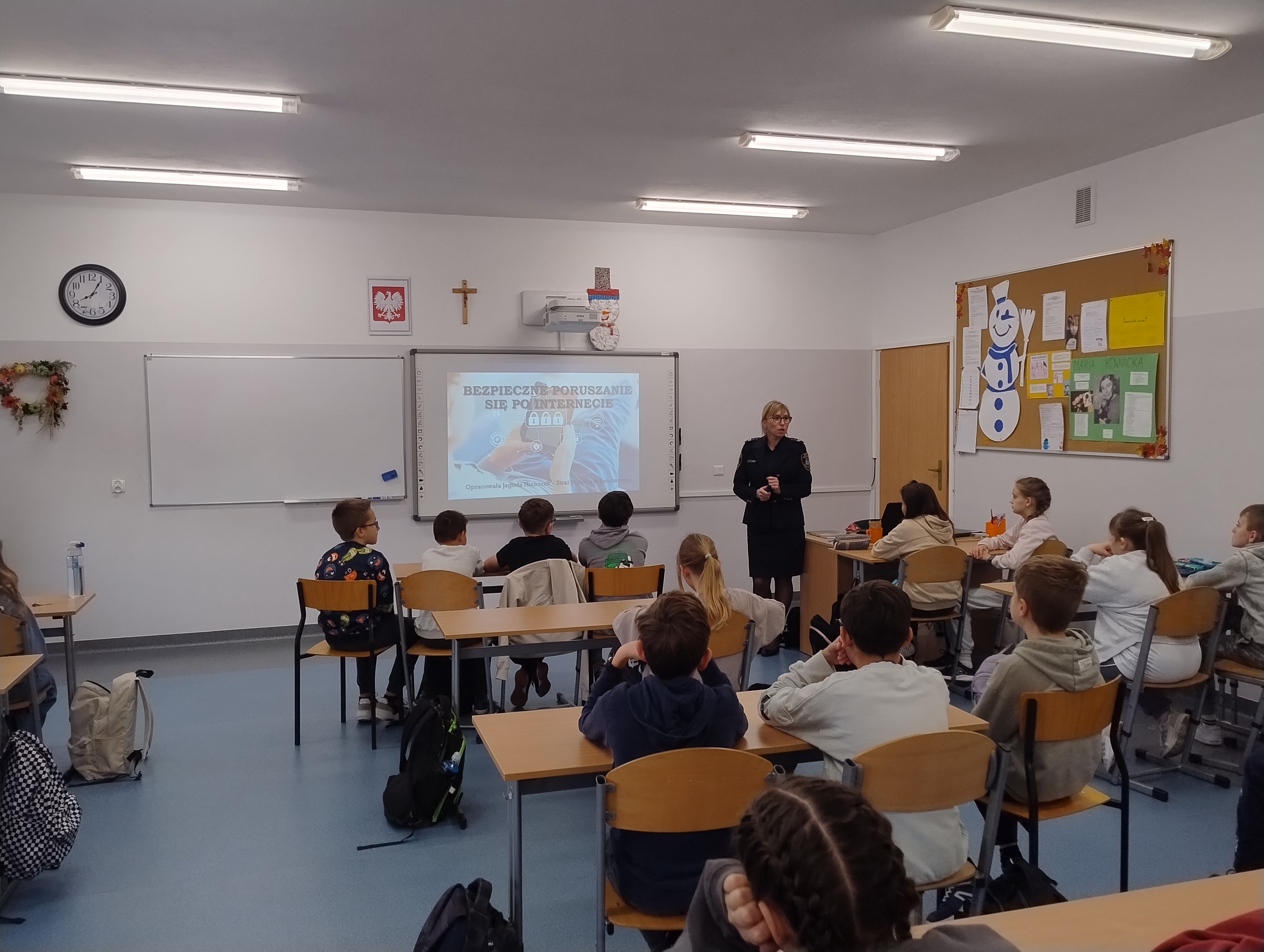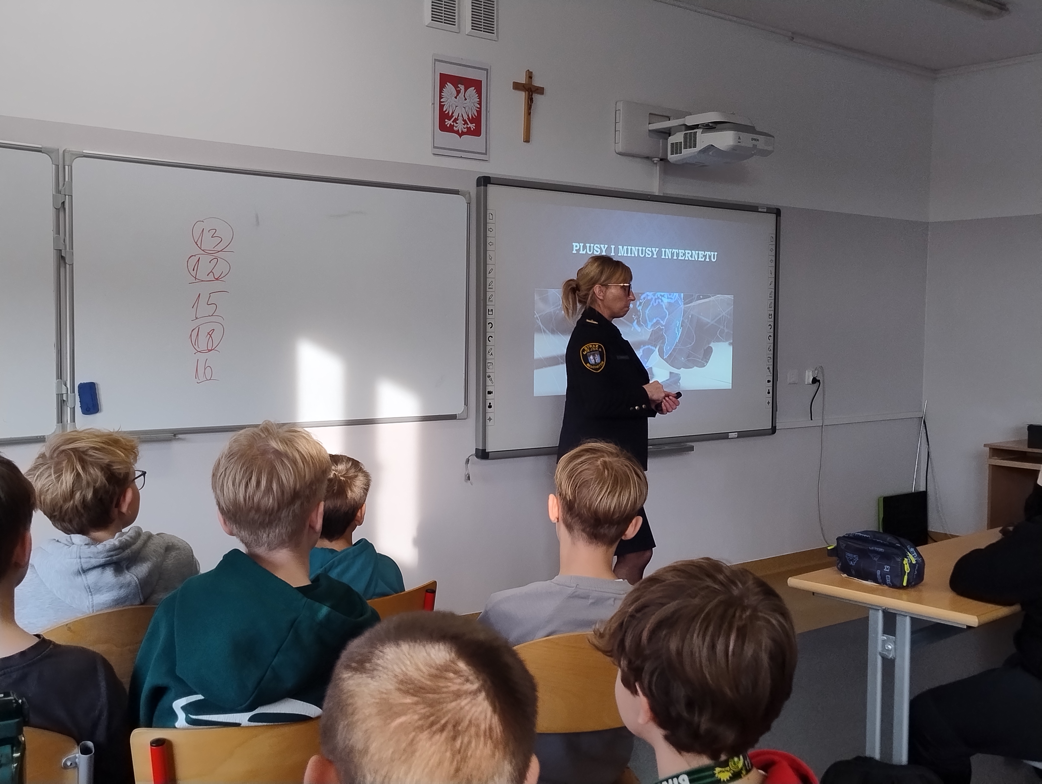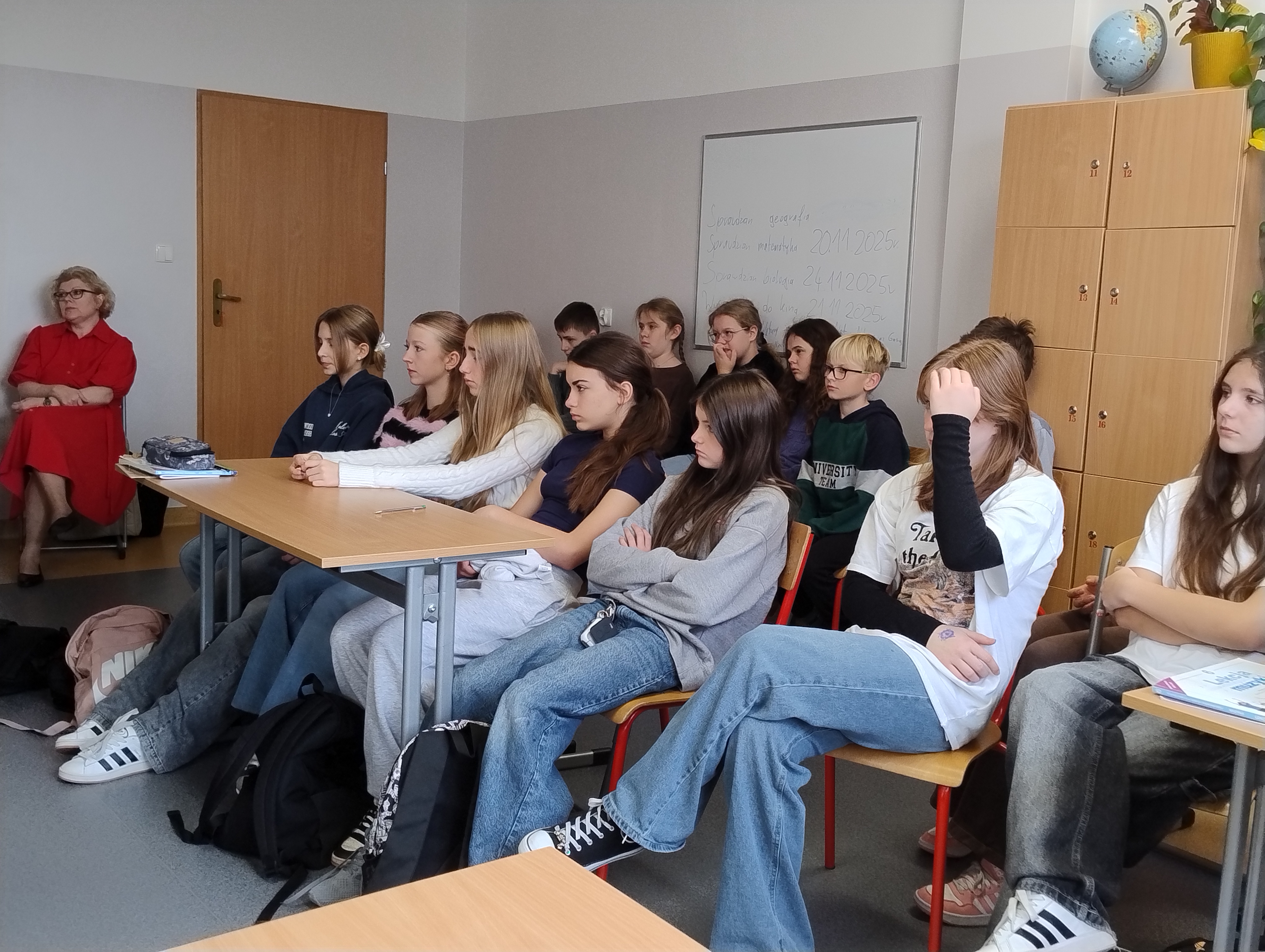 W dniu 20.11.2025 r. uczniowie klas 5 i 6 uczestniczyli w zajęciach z inspektorem, p. Jagodą Nieborak, Koordynatorem Zespołu ds. nieletnich i profilaktyki szkolnej.