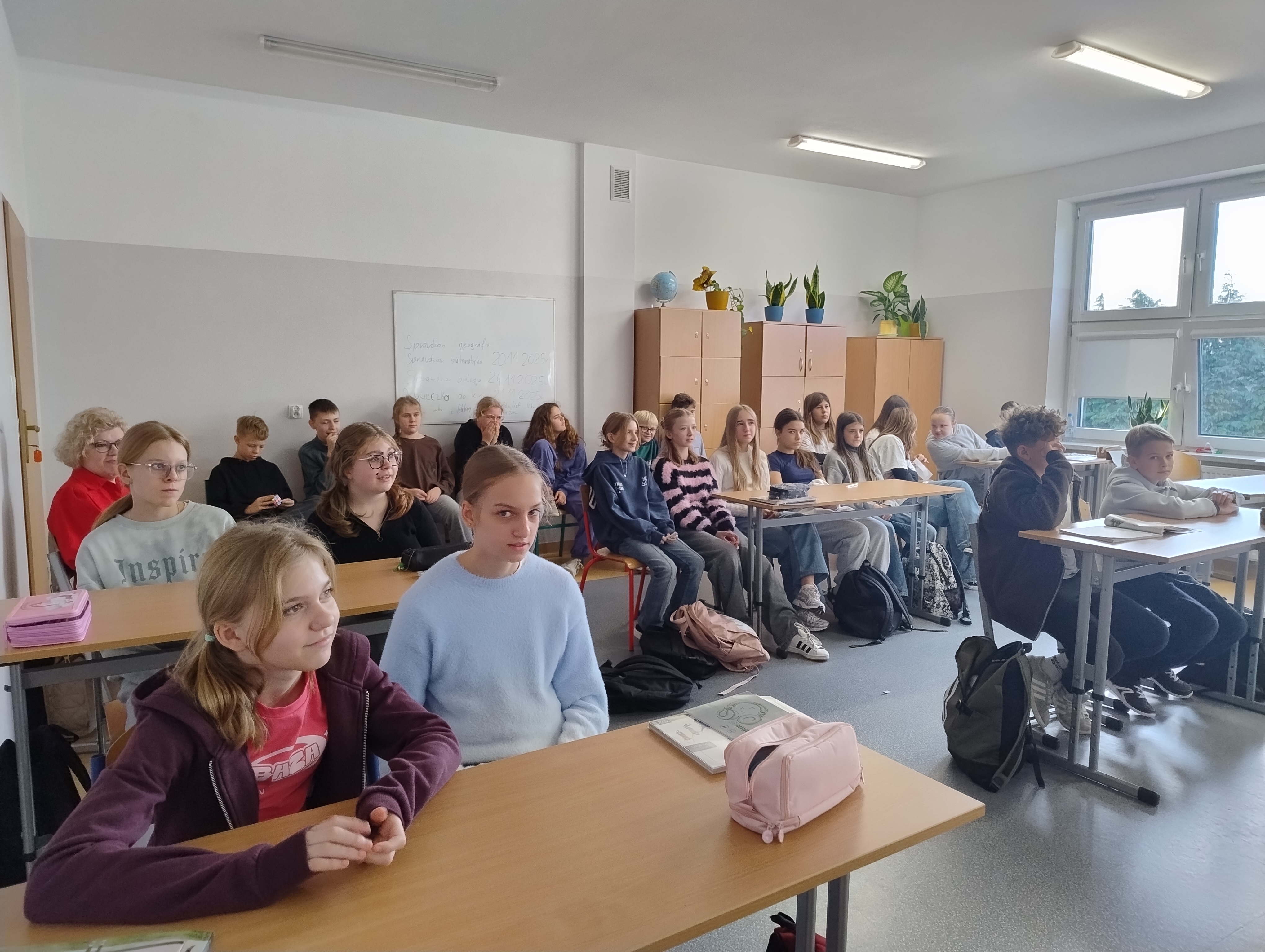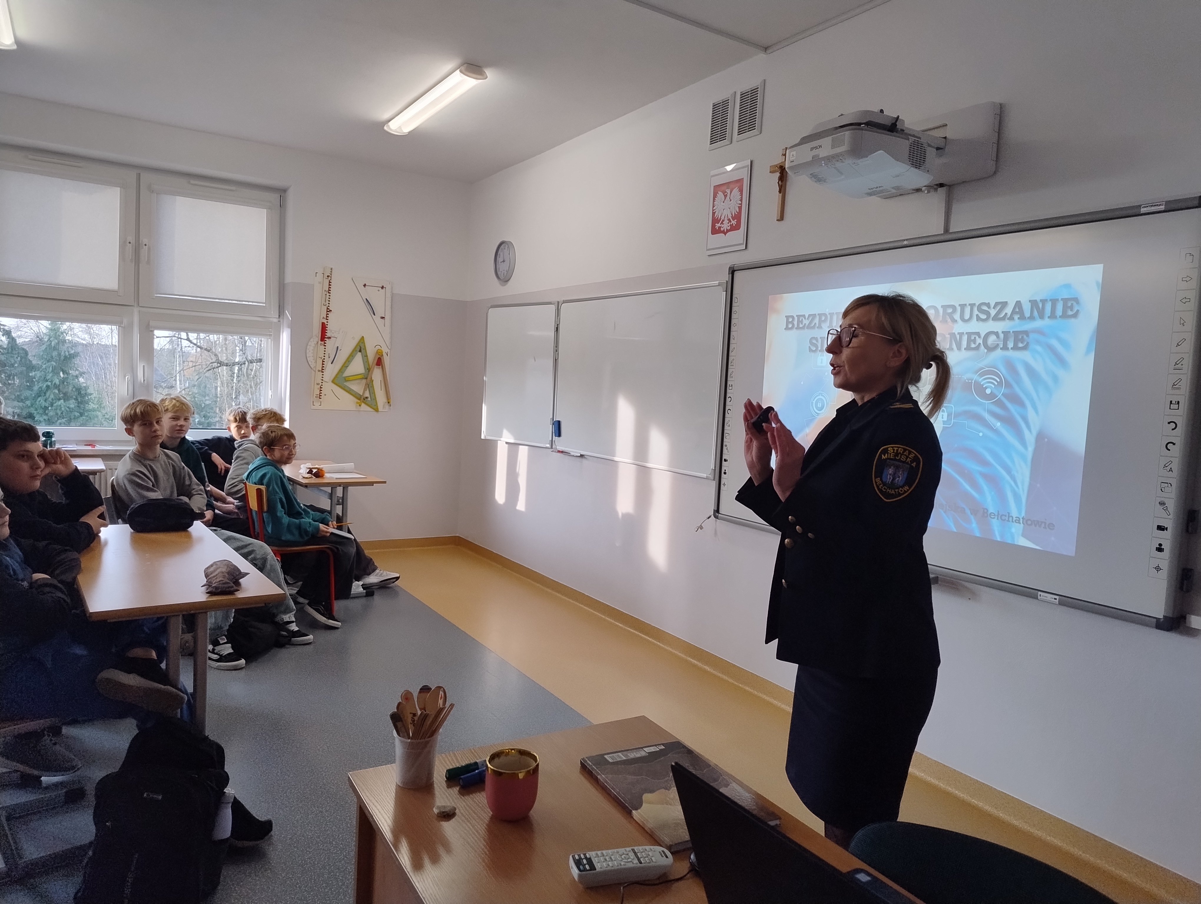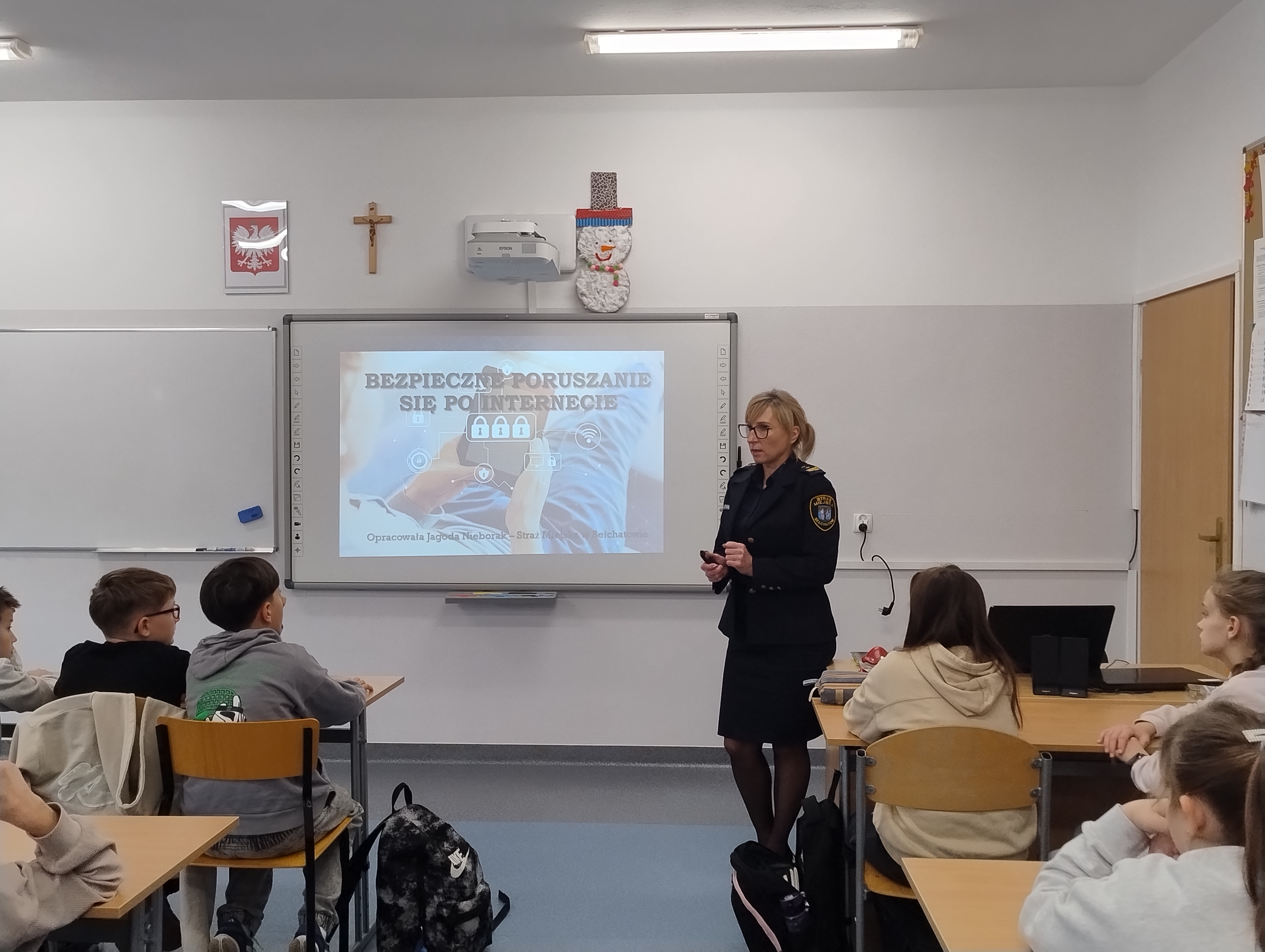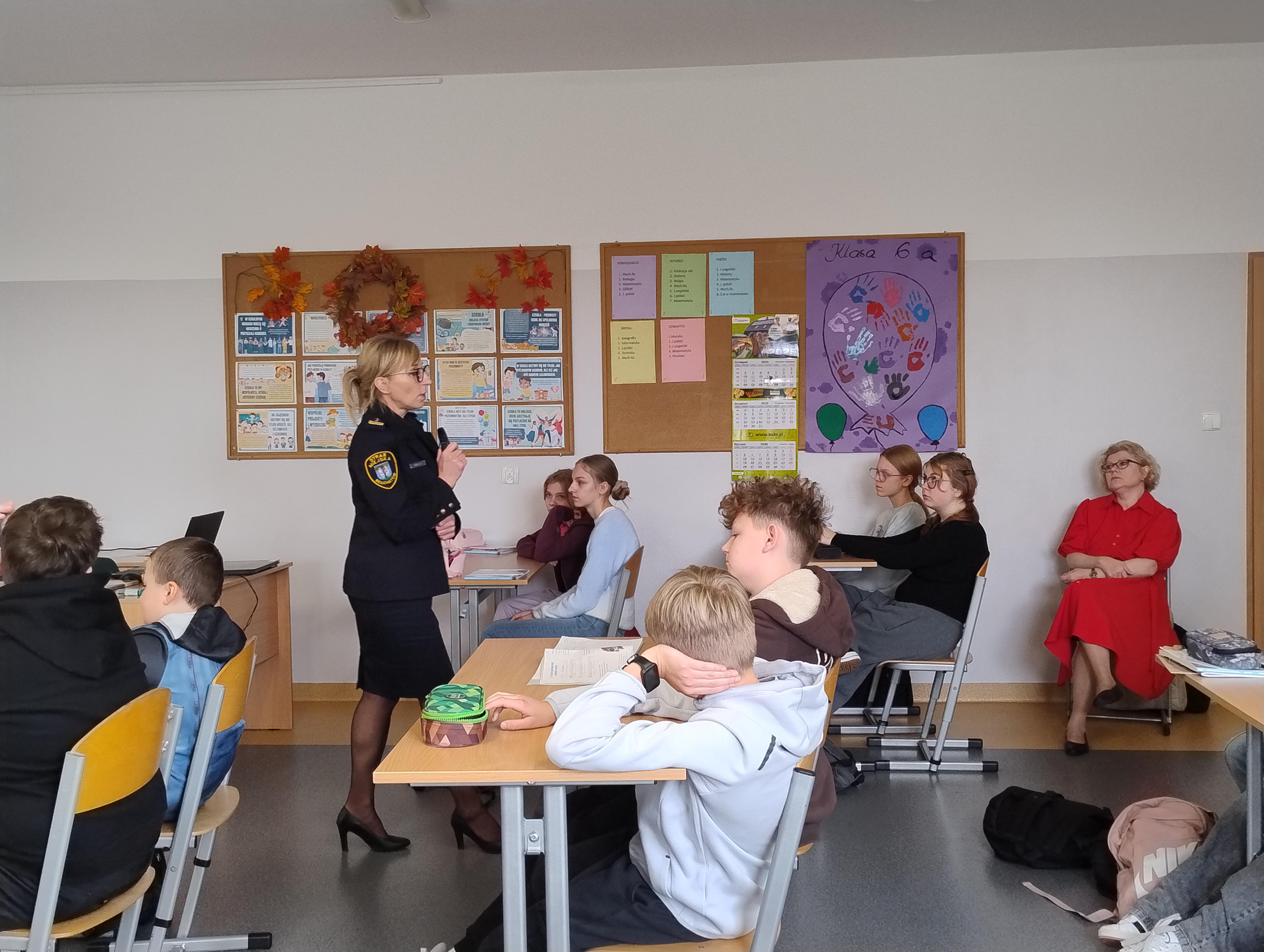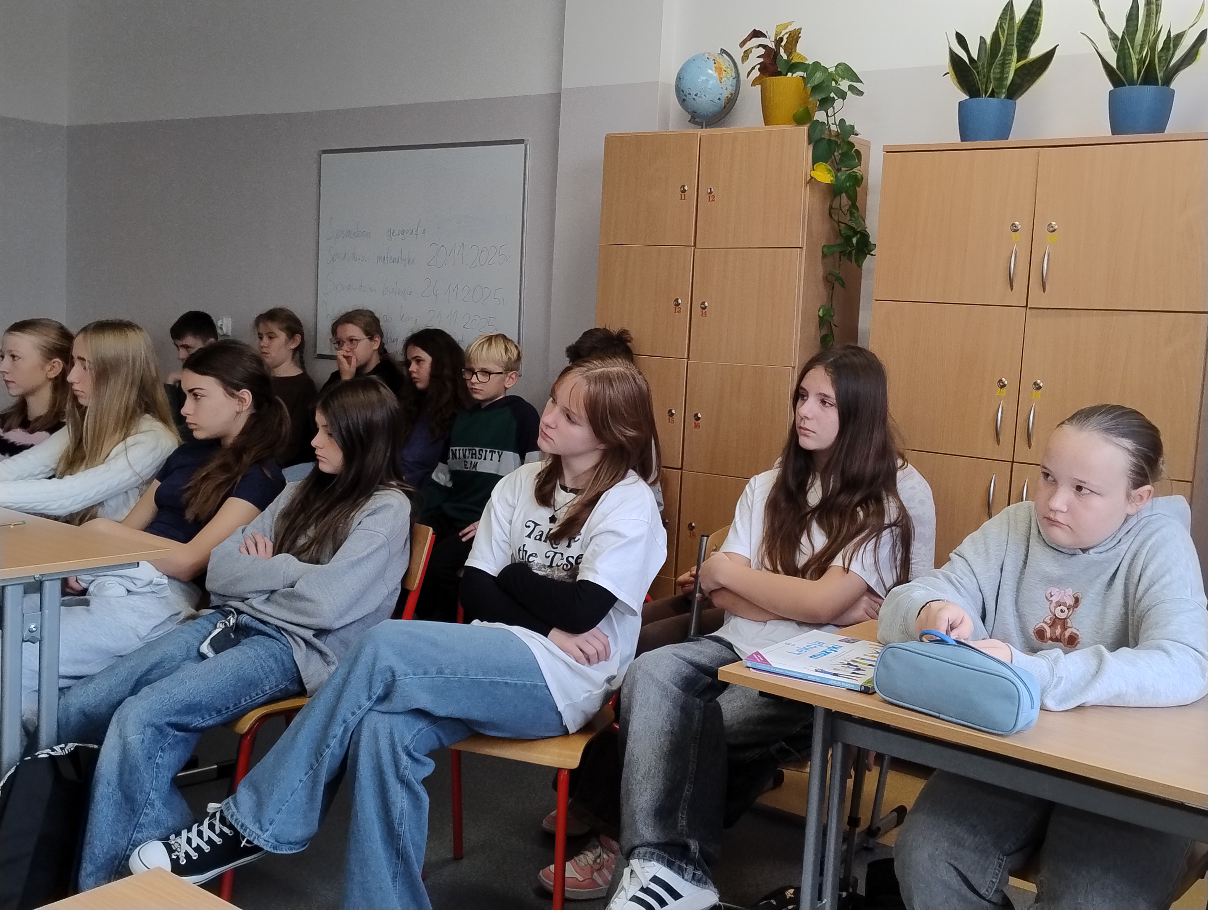 W dniu 20.11.2025 r. uczniowie klas 5 i 6 uczestniczyli w zajęciach z inspektorem, p. Jagodą Nieborak, Koordynatorem Zespołu ds. nieletnich i profilaktyki szkolnej.