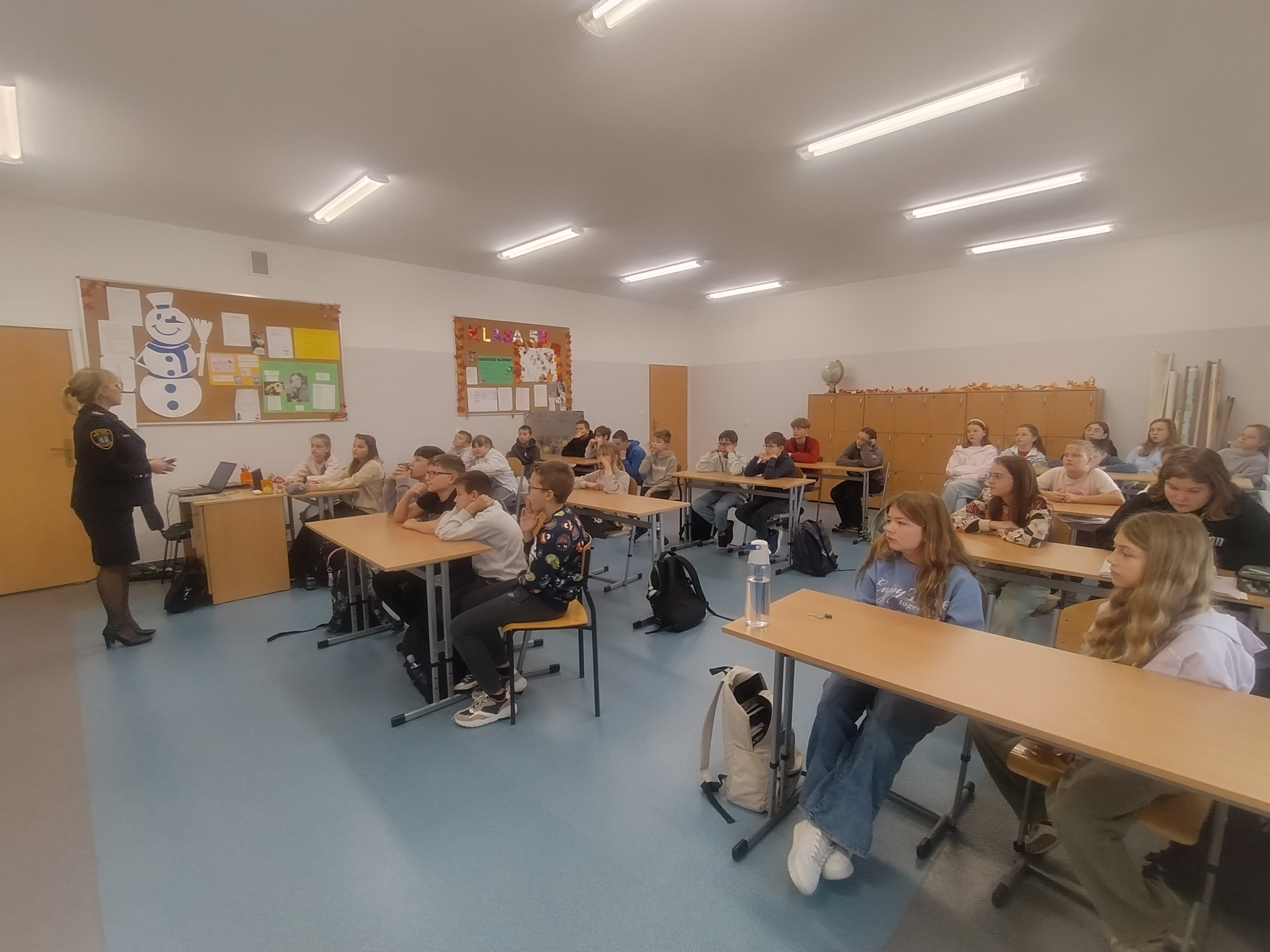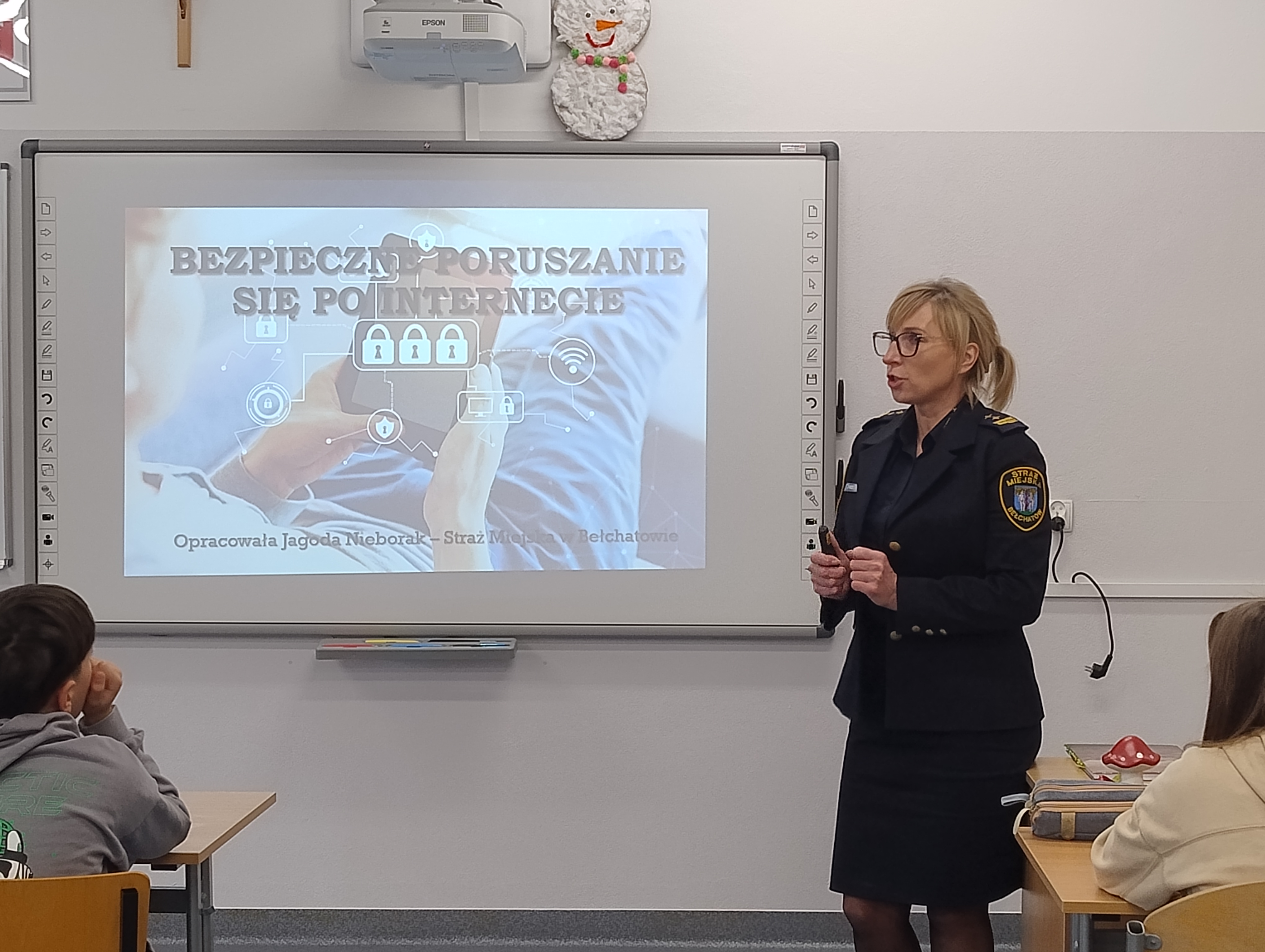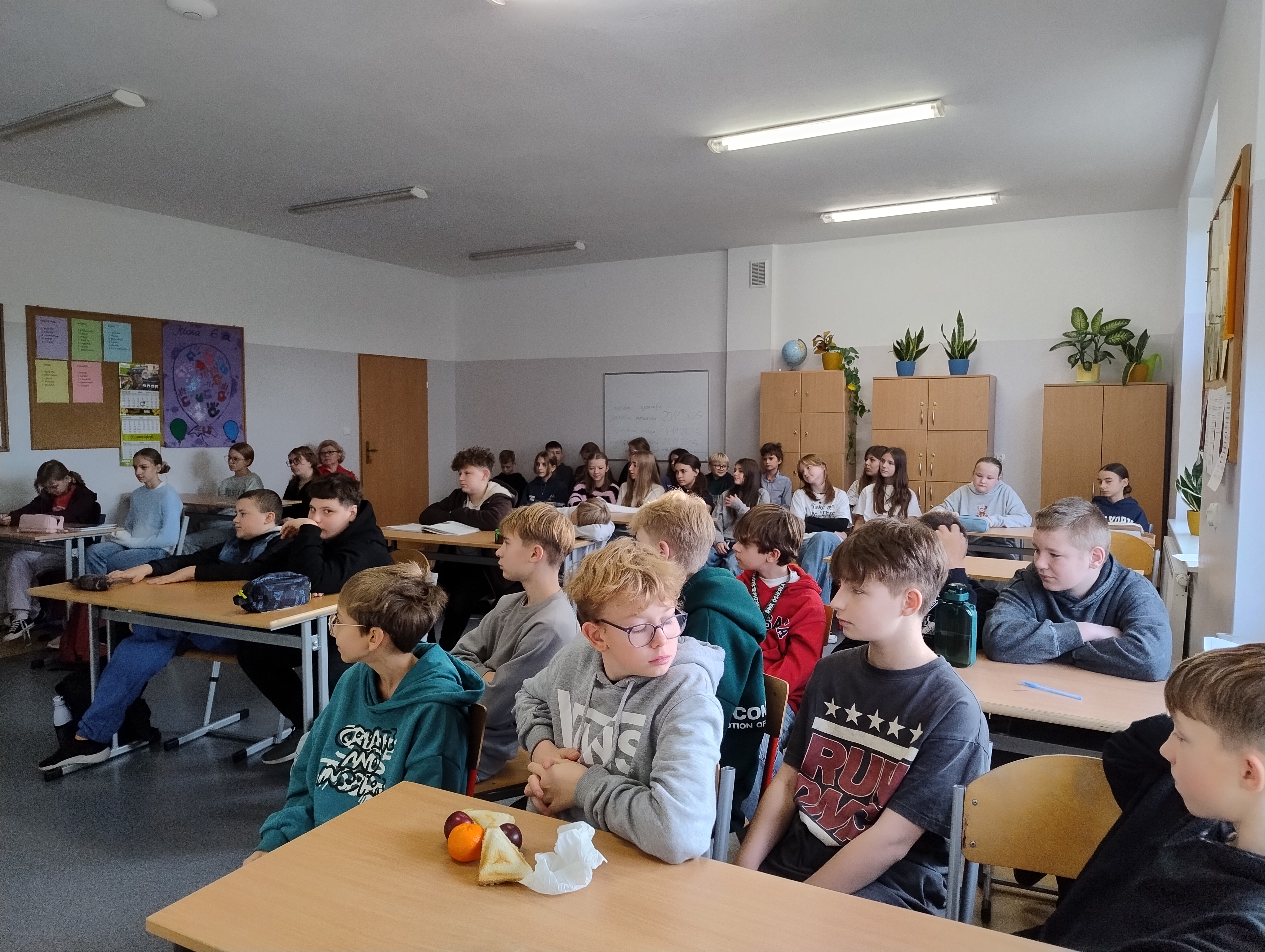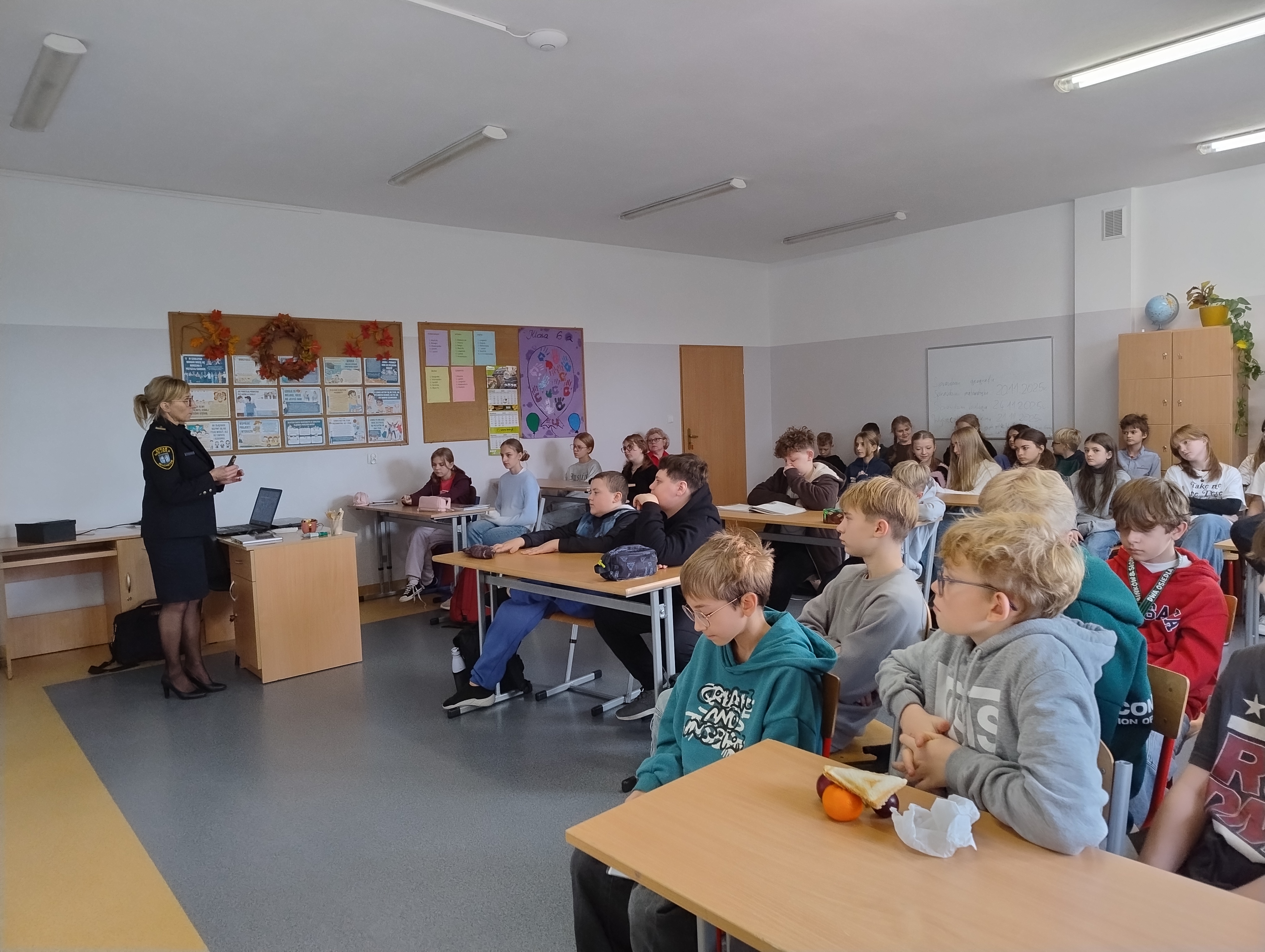 W dniu 20.11.2025 r. uczniowie klas 5 i 6 uczestniczyli w zajęciach z inspektorem, p. Jagodą Nieborak, Koordynatorem Zespołu ds. nieletnich i profilaktyki szkolnej.