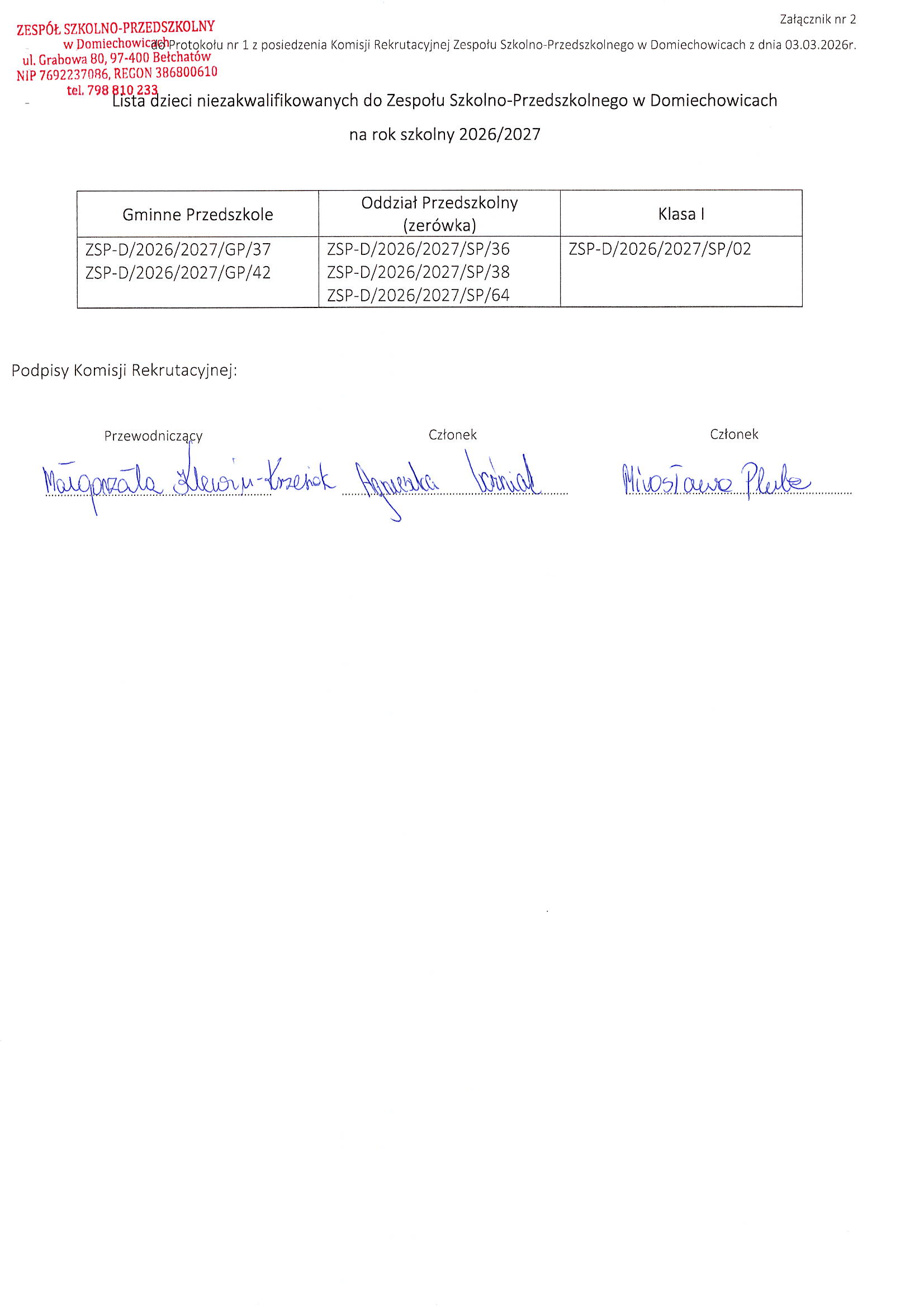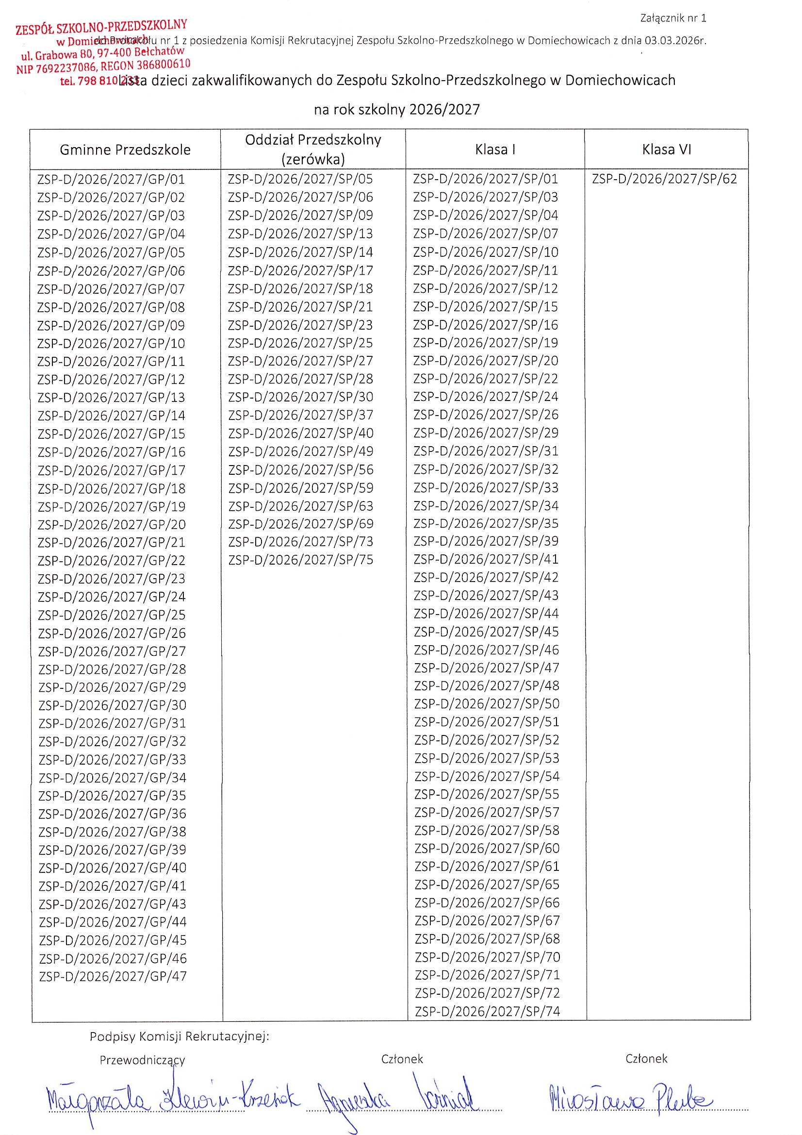 Poniżej lista dzieci zakwalifikowanych i niezakwalifikowanych