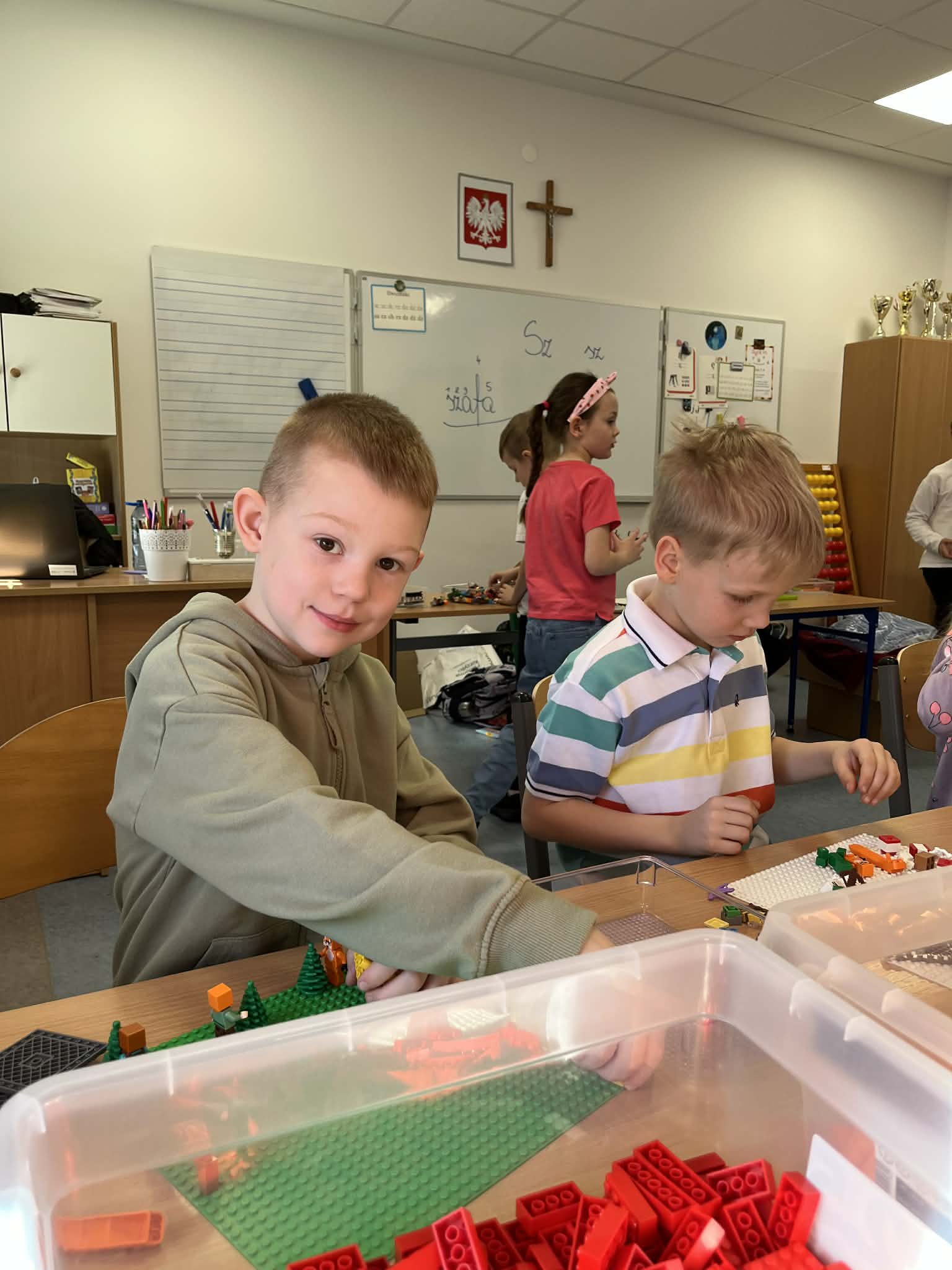 W dniach 6 i 9 marca uczniowie klas pierwszych uczestniczyli w kreatywnych zajęciach budowania z klocków LEGO prowadzonych przez p. Miłosza Skarbieża – uczestnika czwartej polskiej edycji programu "Lego Masters". Dzieci miały okazję nie tylko rozwijać swoją kreatywność i zdolności manualne, ale także poznać prawdziwego pasjonata klocków, który chętnie dzielił się swoją wiedzą i inspirującymi pomysłami. Pierwszoklasiści stworzyli unikalne, własne modele i budowle wykraczające poza instrukcje. To była fantastyczna przygoda pełna radości, wyobraźni i kolorowych konstukcji ! Dziękujemy za wspaniałe zajęcia i niezapomniane spotkanie!