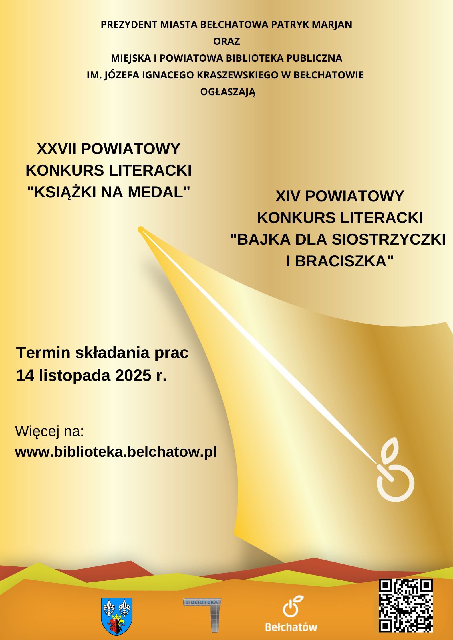 Tradycyjnie już zapraszamy do udziału w konkursach organizowanych przez bibliotekę publiczną w Bełchatowie. Uczniowie klas IV-VI zainteresowani konkursem ,,Bajka dla siostrzyczki i braciszka" zgłaszają się do swoich polonistek- p. Aleksandry Fornalik i p. Anetty Sobieszek. Natomiast uczniowie klas VII-VIII zainteresowani konkursem ,,Książka na medal" do p. Doroty Pukacz.